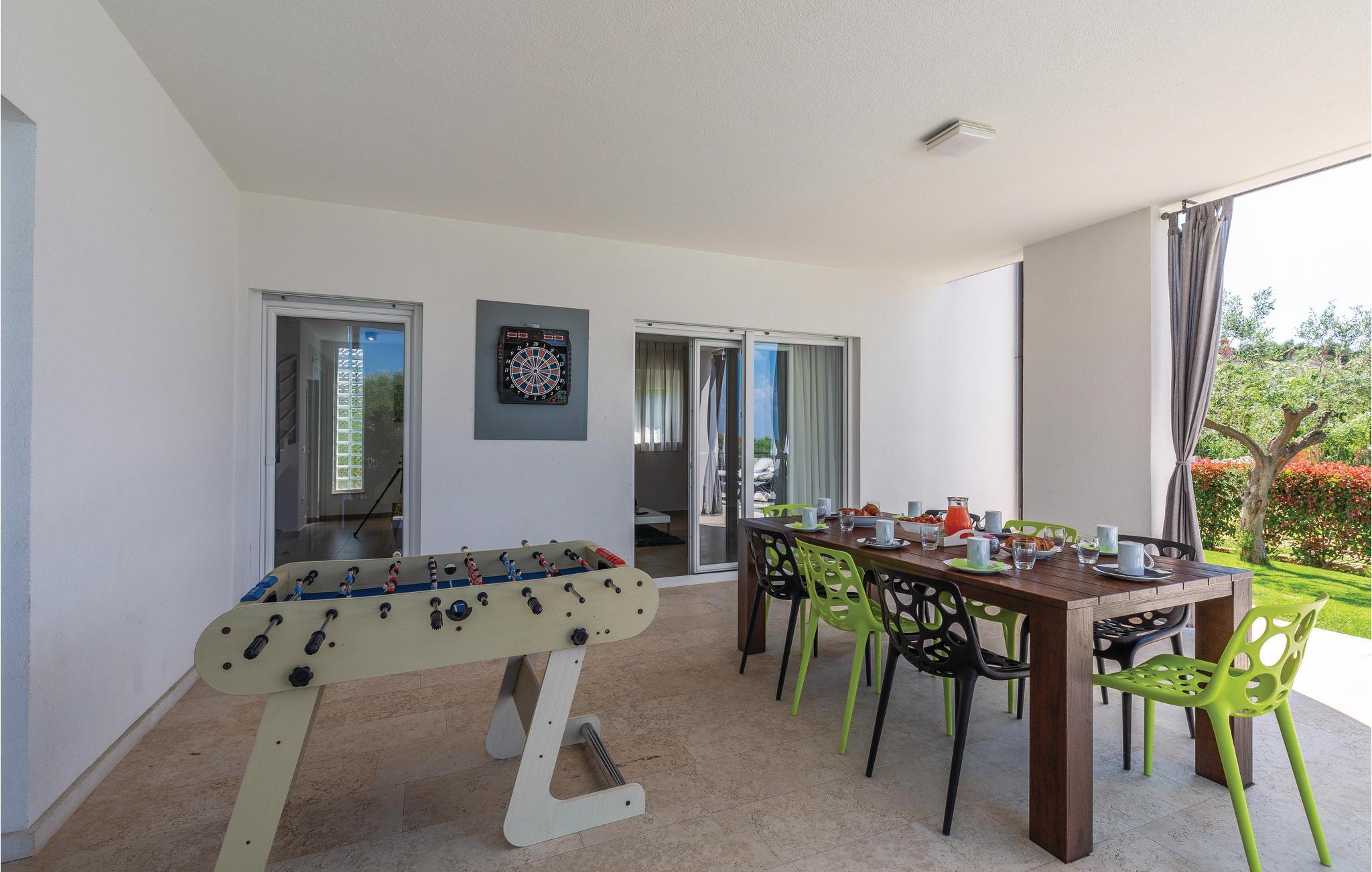 Dette moderne feriehus ligger i den lille by Stinjan, nær Pula. Huset er indrettet med stil, husets gode indre komfort vil danne gode rammer om en luksuriøs ferie. I stueplan ligger soveværelse og opholdsrum, hvorfra der er udgang til terrassen med grill og swimmingpool. På første sal ligger der tre soveværelser med tilhørende badeværelser og en skøn terrasse med whirlpool, hvor I kan lade jeres trætte muskler massere, mens I nyder udsigten over havet. Til den større strand Puntizela er der kun få minutter i bil. Besøg de mange seværdigheder fra romertiden og lad jer underholde af byens mange arrangementer gennem sommeren, især under den kendte filmfestival med projektioner i det romerske amfiteater. Tag på afslappende gåture langs promenaden i den maleriske fiskerby Fazana, hvor der dagligt sejler udflugtsskibe til Brijuni-øerne. Der kan I besøge Tito-museet, børn kan glæde sig til den zoologiske have og golfentusiaster kan dyrke deres passion på gode baner. Langtfra kan I se vartegnet af den nære by Vodnjan, Istriens højeste kirketårn på 60 m, der hører til basilikaen af Sankt Blasius. I basilikaen kan I også se den utrolige samling af mumier. En anbefaling værd er også en udflugt til baglandet. Tag langs vinvejen og prøv lækre, lokalproducerede vine og opdag det lækre prsut, en røget skinke, eller trøflerne, som I kan smage i mange konobas.