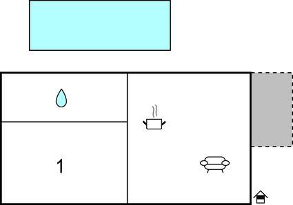 Opholdsstue/køkken 20m2 - 2 Sovepladser. (Sofa, madras eller lignende).