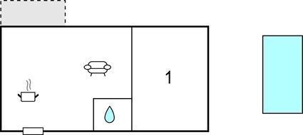 Opholdsstue/køkken 20m2 - 2 Sovepladser. (Sofa, madras eller lignende).