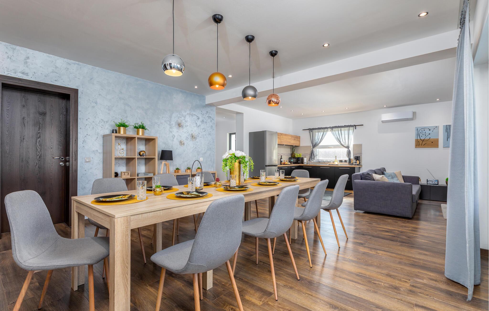 Dette rummelige feriehus giver jer mulighed for at nyde en behagelig pause sammen med venner eller to familier. Lav mad sammen i det fuldt udstyrede køkken og nyd jeres måltider ved det stilfuldt oplyste spisebord. Aftal en god film og samles på det hyggelige sofaområde til en hyggelig aften.