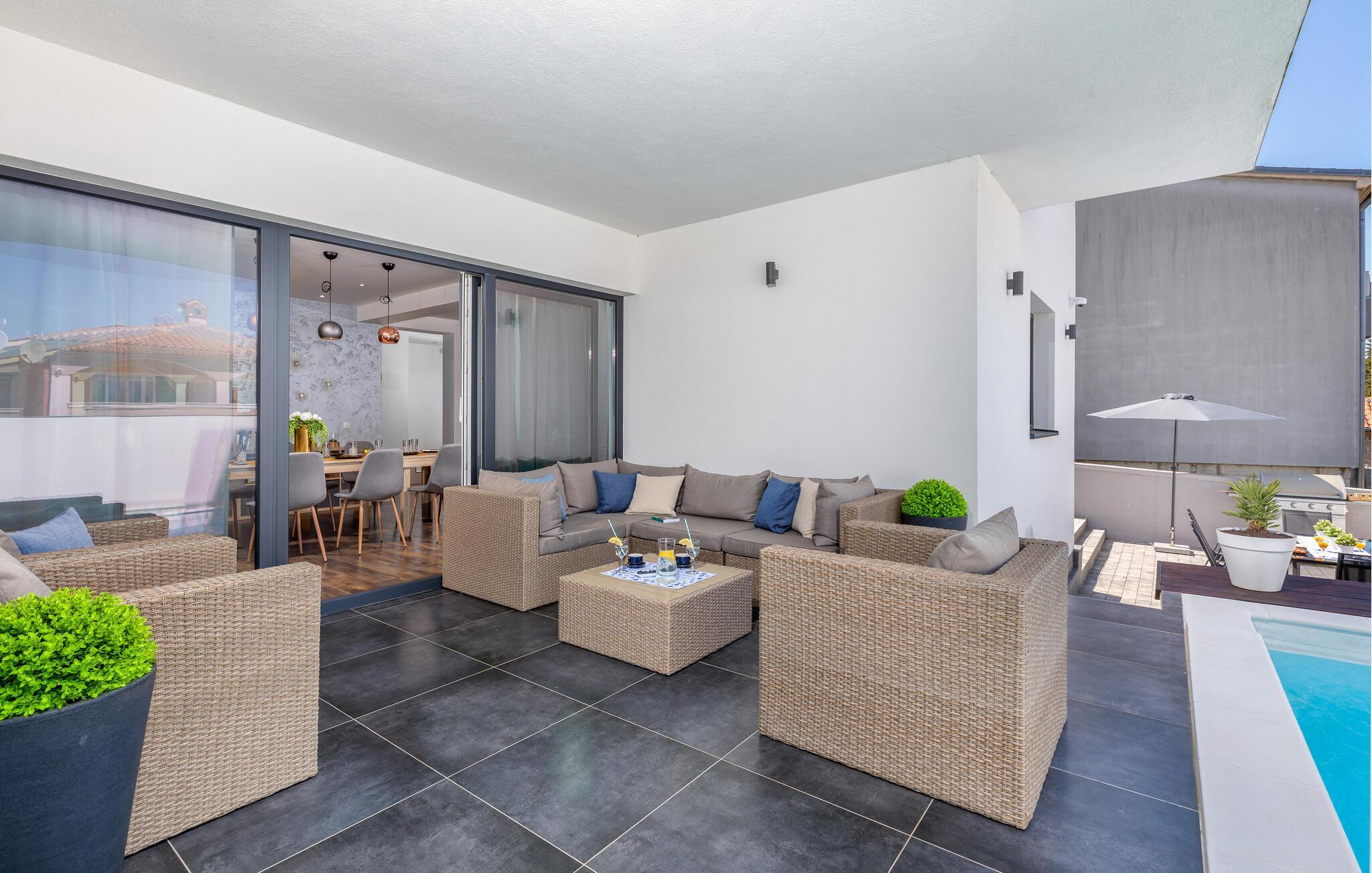 Udendørsområdet byder på flere indbydende retreater til solrige dage i det fri. Hop i jeres pool efter behag, slap af på de komfortable liggestole og organiser stemningsfulde grillaftener, inden I slutter dagen af ??med gode samtaler i den komfortable lounge.