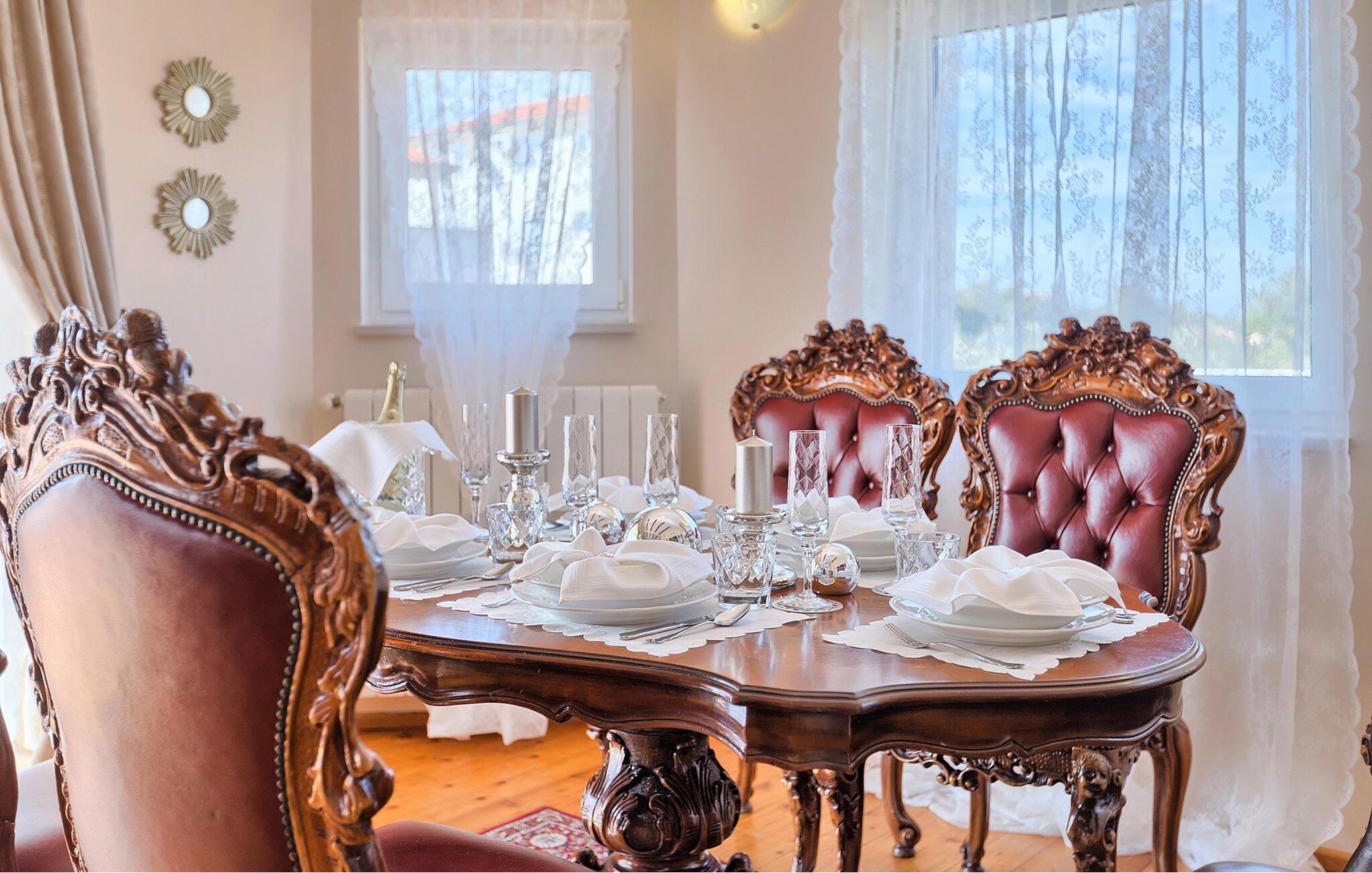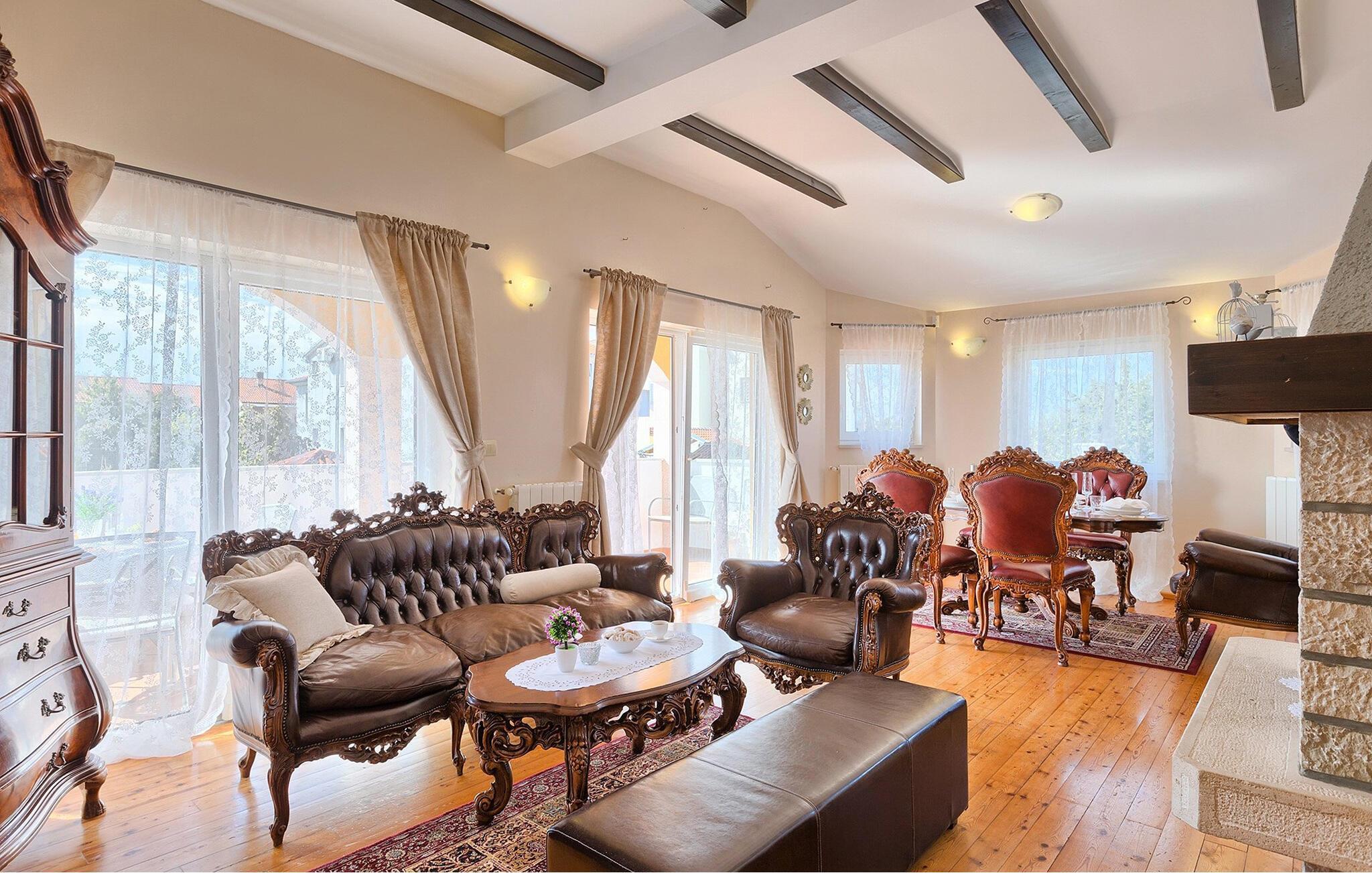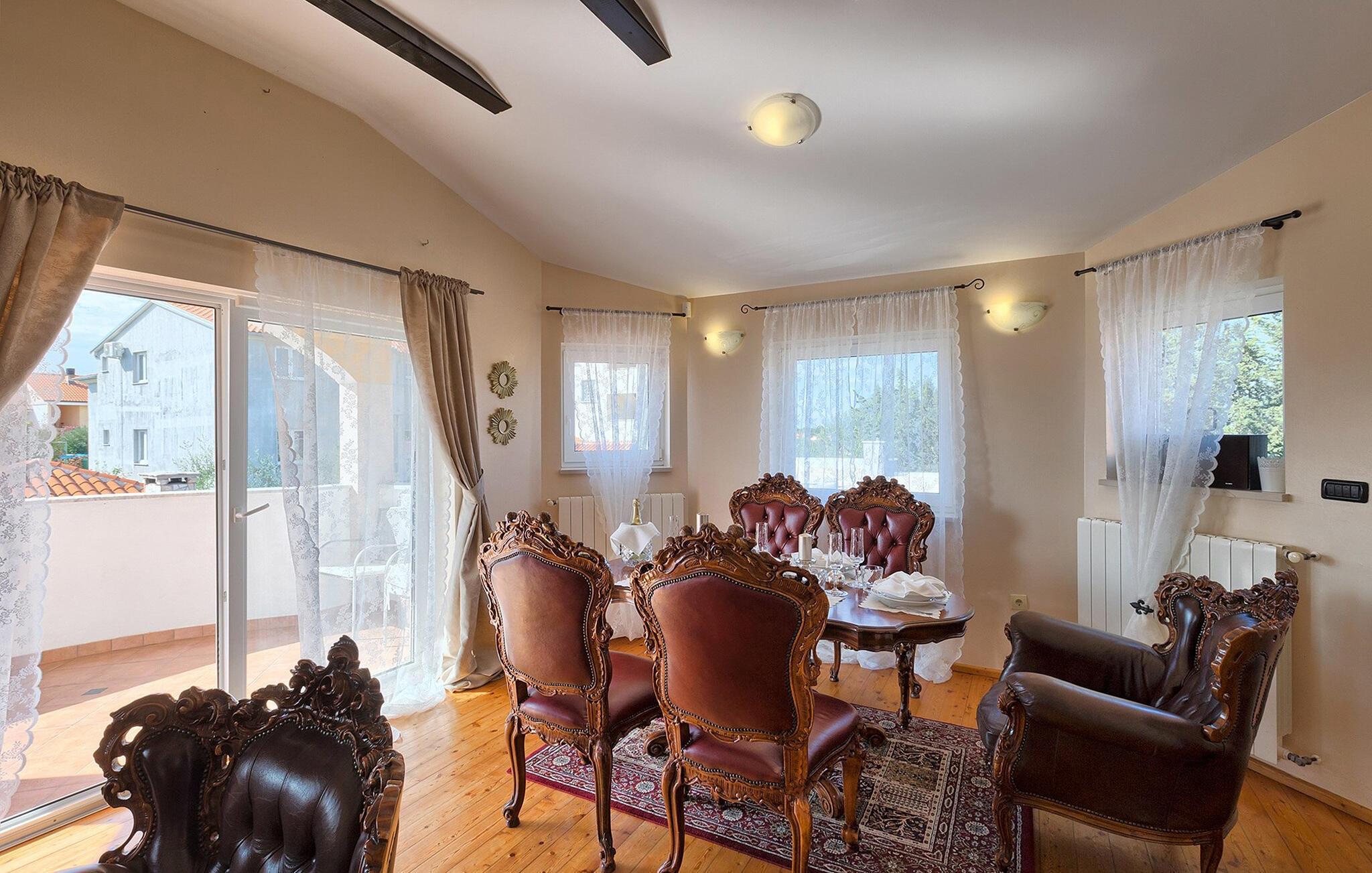 Kom ind og lad jer fortrylle af den elegante stemning i denne hyggelige ferielejlighed. Tilbered jeres lækre retter sammen i det lyse og venlige køkken og nyd dagens måltider i den storslåede spiseplads. Føl jer godt tilpas på de stilfulde lædermøbler og afslut dagen med en filmaften eller en god kroatisk vin.