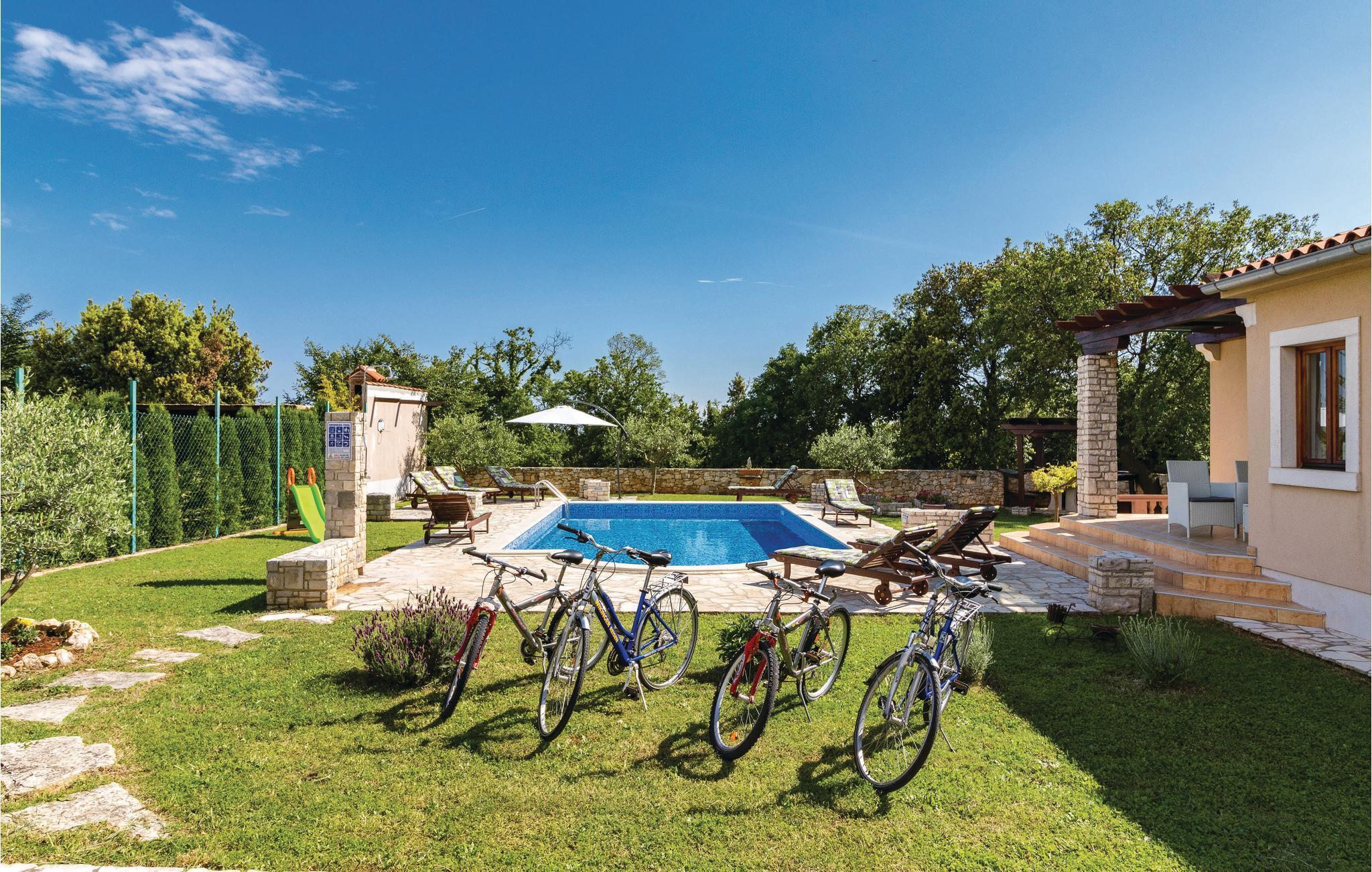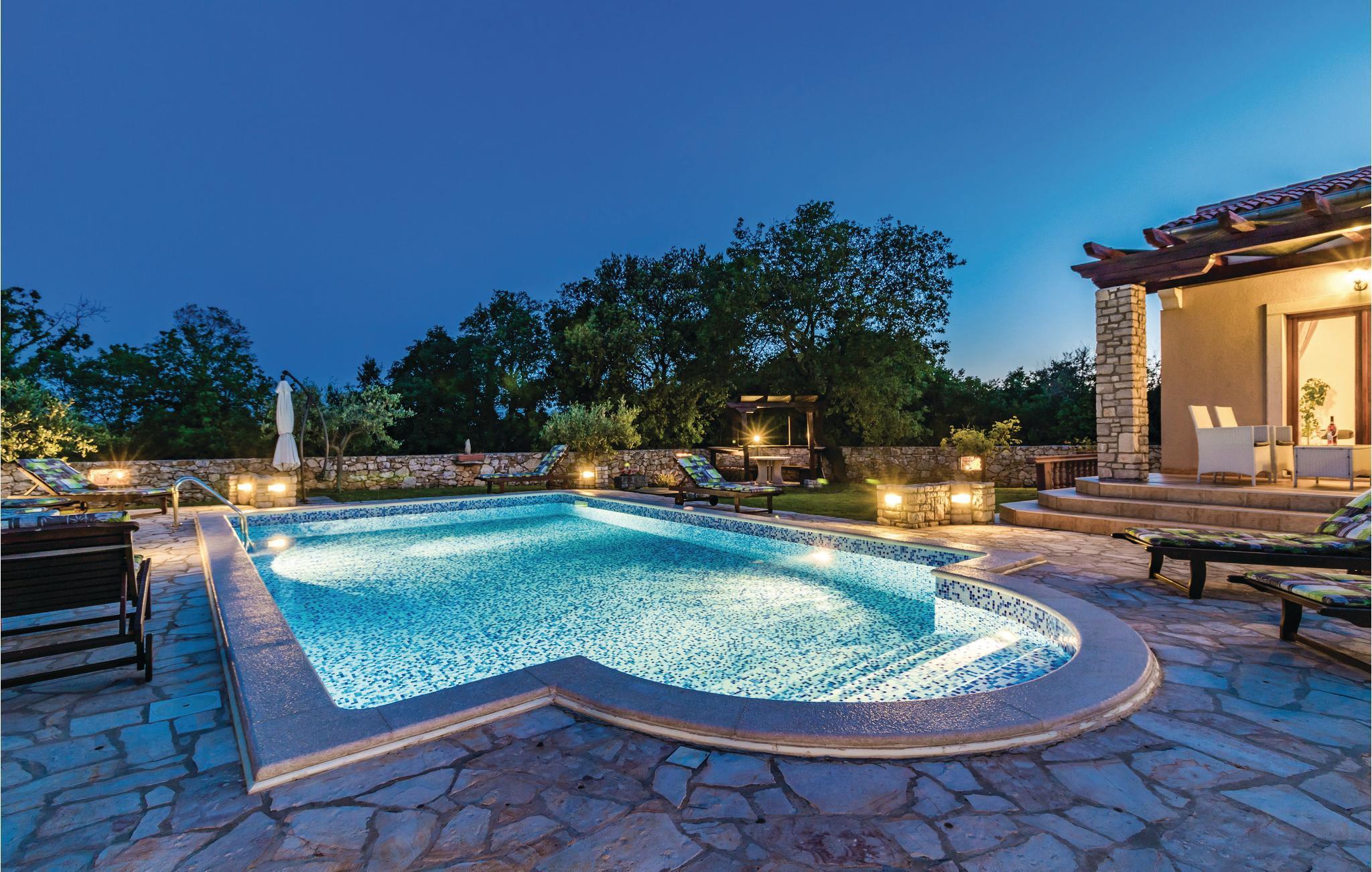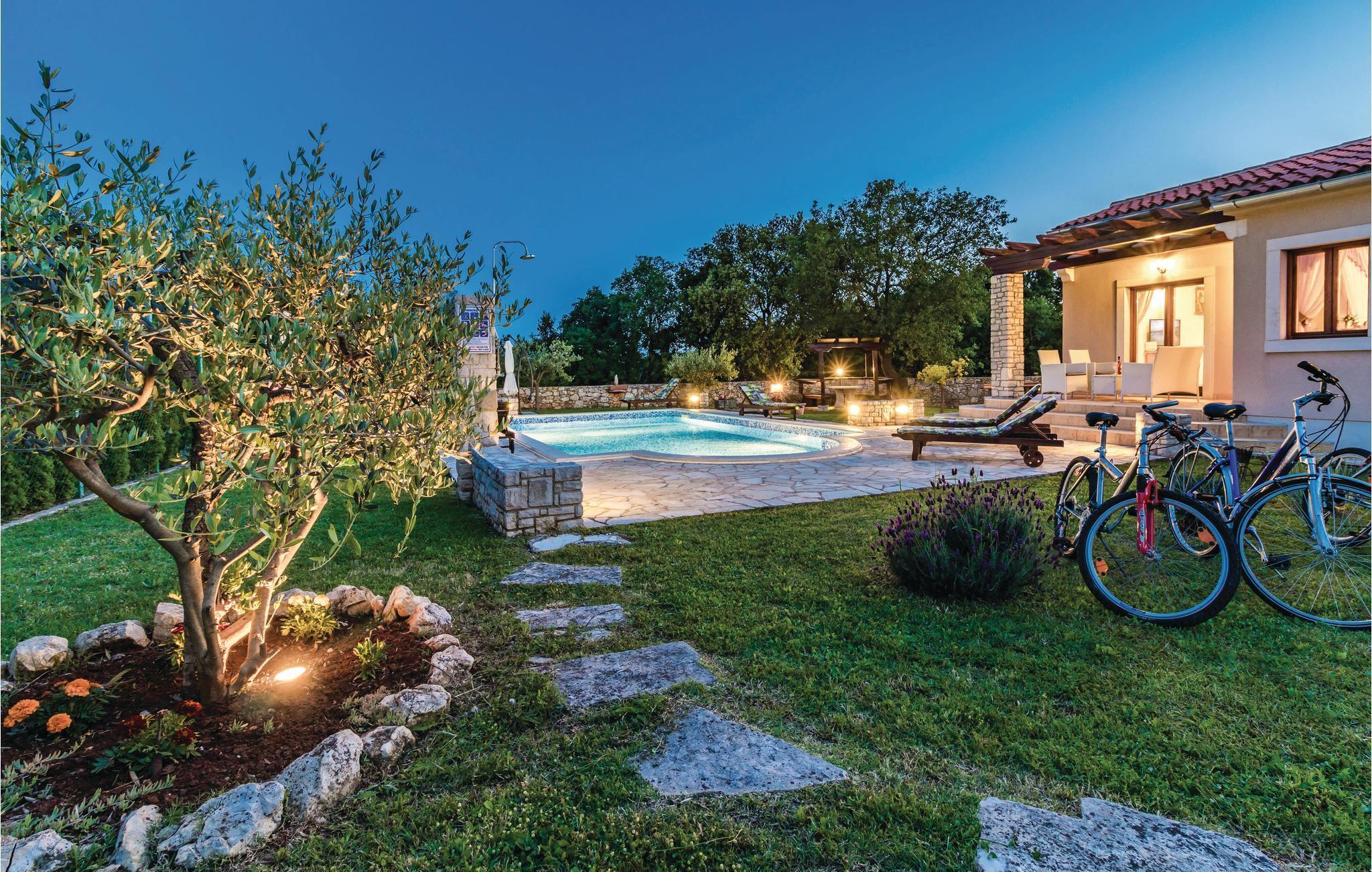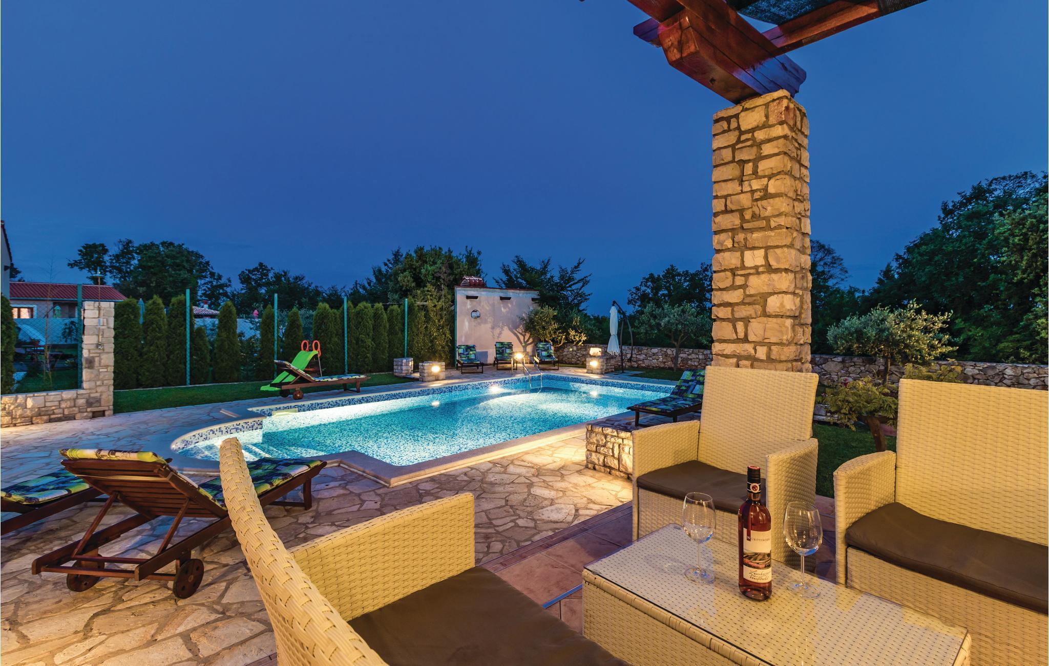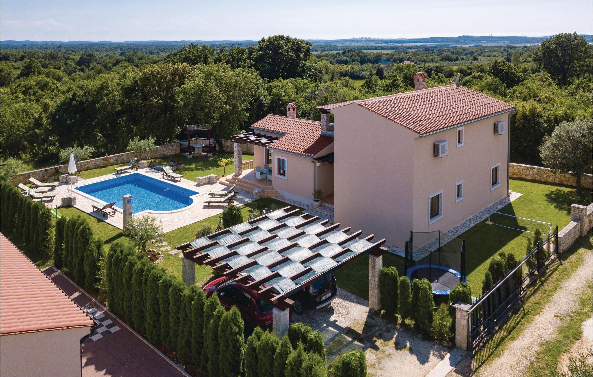 Dette nybyggede feriehus med pool har beliggenhed i Valtura, ne by cirka 10 kilometer fra Pula. Huset strækker sig over to etager. I stueetagen ligger køkkenet, opholdrum med spisestue, to soveværelser, samt badeværelse og toilet. På første etage er der to soveværelser, et badeværelse yderligere og den overdækkede terrasse. På varme sommerdage indbyder den dejlige udendørs pool til en nedkøling, og børnene kan lege uforstyrret på gyngerne og rutsjebanen. Husets beliggenhed er ideel for de gæster der gerne vil på udflugt til Pula, hvor der udover talrige monumenter også er masser af kultur- og underholdningstilbud. De smukke strande i Sisan og de nærmere omgivelser er, ligesom de mange traditionelle byer på fastlandet, også indenfor rækkevidde. Vi anbefaler en udflugt til det arkæologiske område af Istriens ældste by Nesakcium. Herudover indbyder den billedskønne natur til vandre- og cykelture.