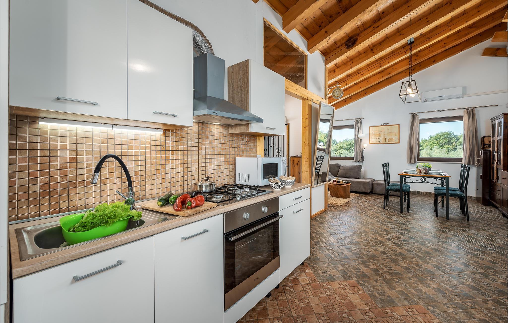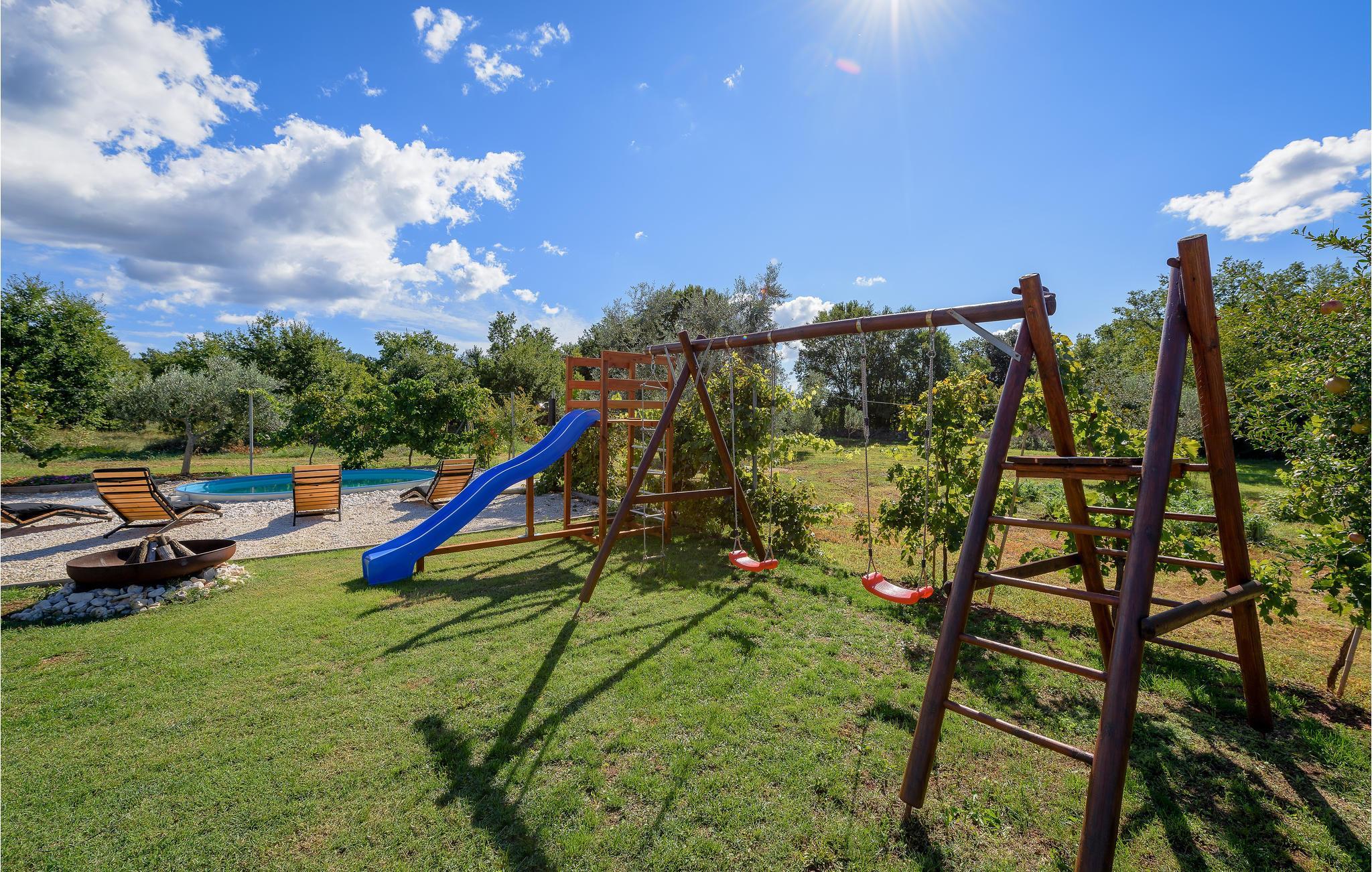 Dette idylliske feriehus ligger i den lille by Valtura og giver jer mulighed for en afslappende ferie med sind beliggenhed langt fra alle former fra masseturisme og stress. Omgivet af oliventræer kan I slappe af ved svømmebassinet og nyde solen. Den rustikale indretning er blevet udvalgt med omtanke. Der en ikke-asfalteret vej på ca. 200 m, der fører til objektet. Der er mulighed for ridning i nærheden samt adrenalinparken Glavani, der byder på et alsidigt program for voksne og børn. Besøg også romerbyen Pula, der lokker med et amfiteater.