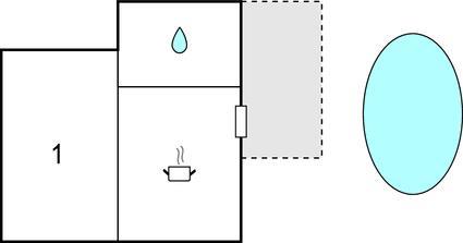 Badeværelse (nr. 1) - WC. Varmt og koldt vand. Bruser