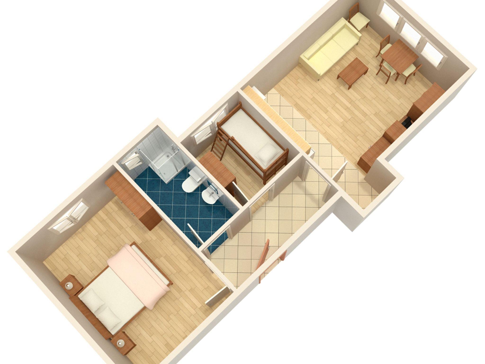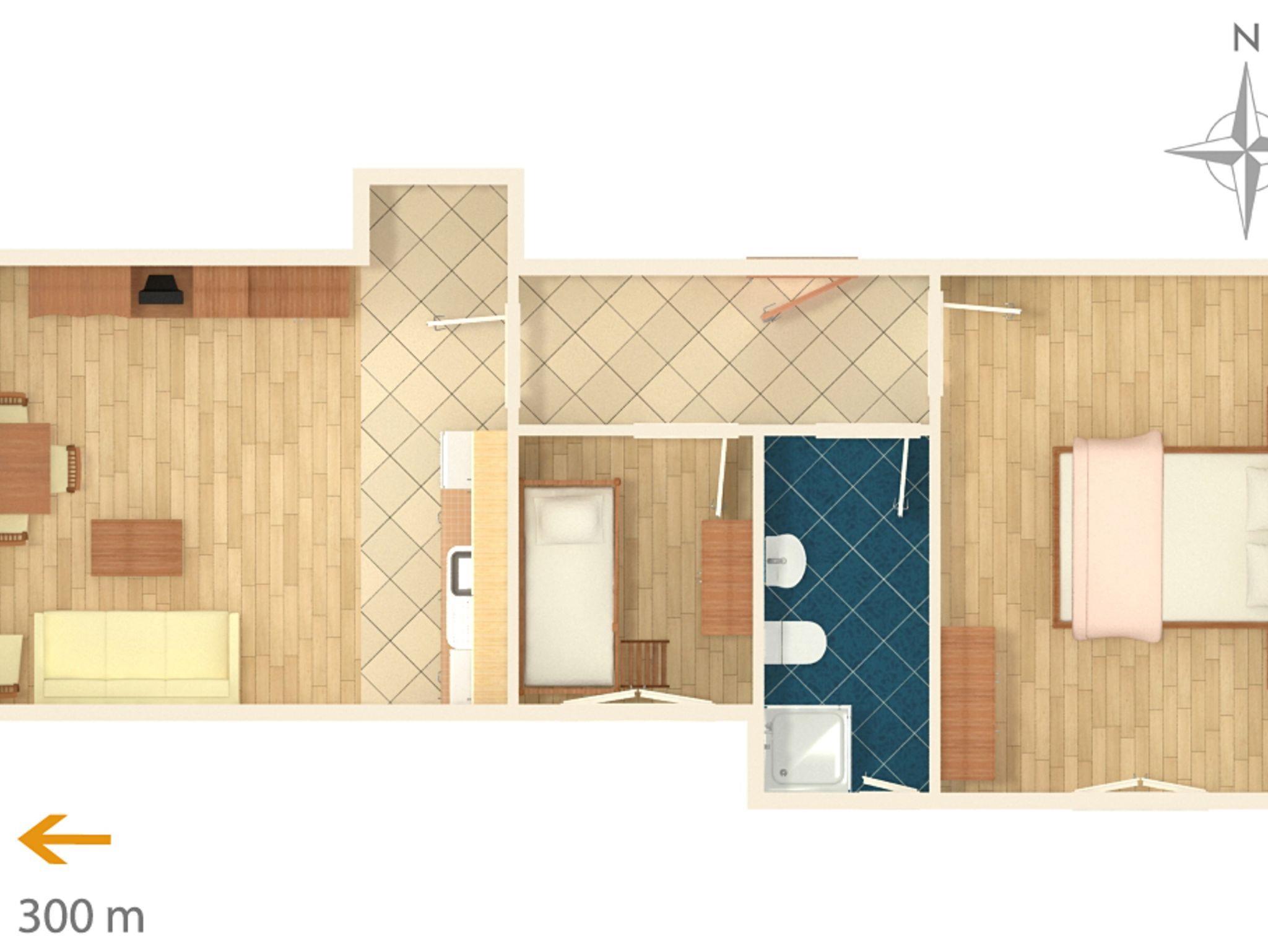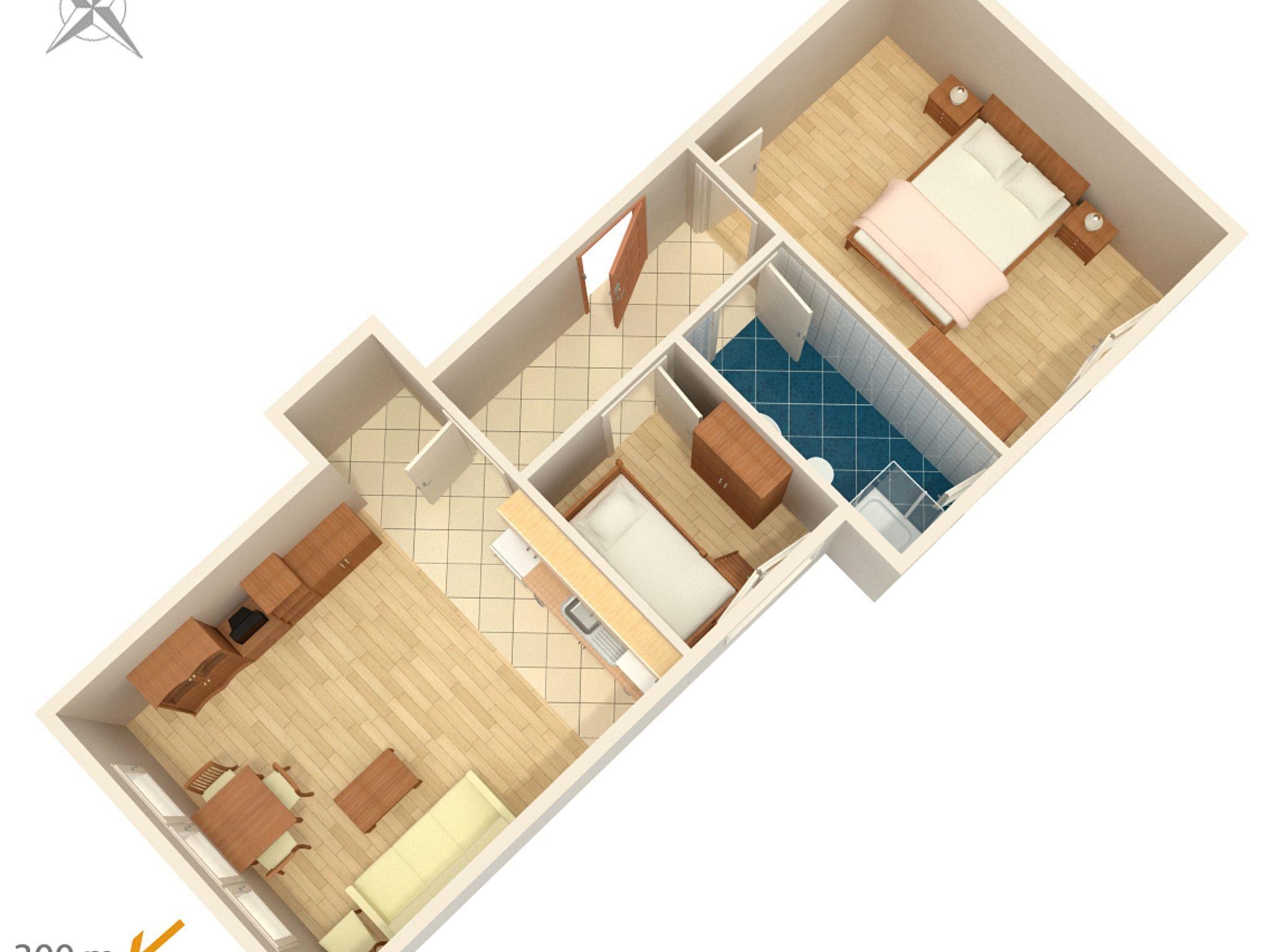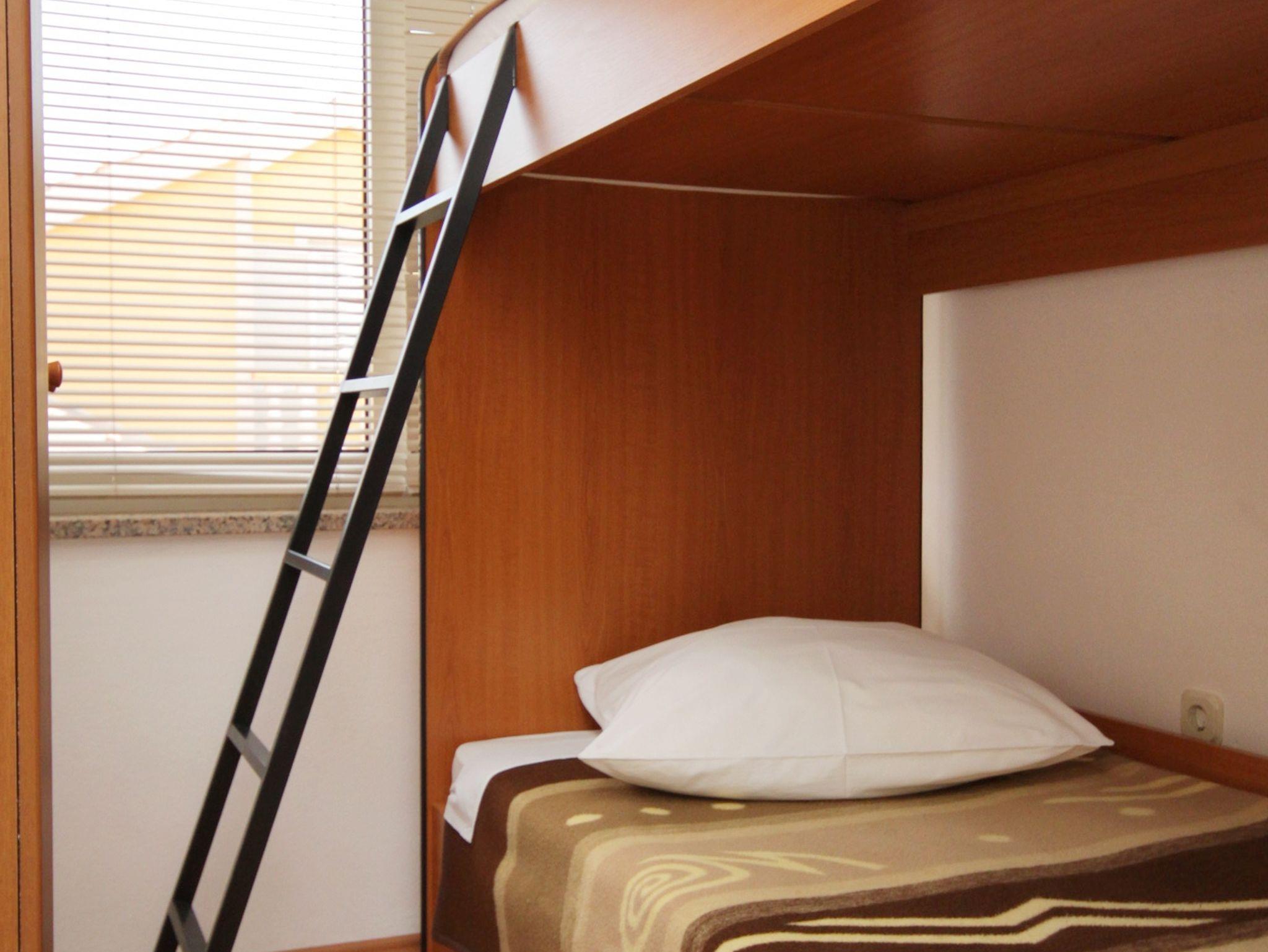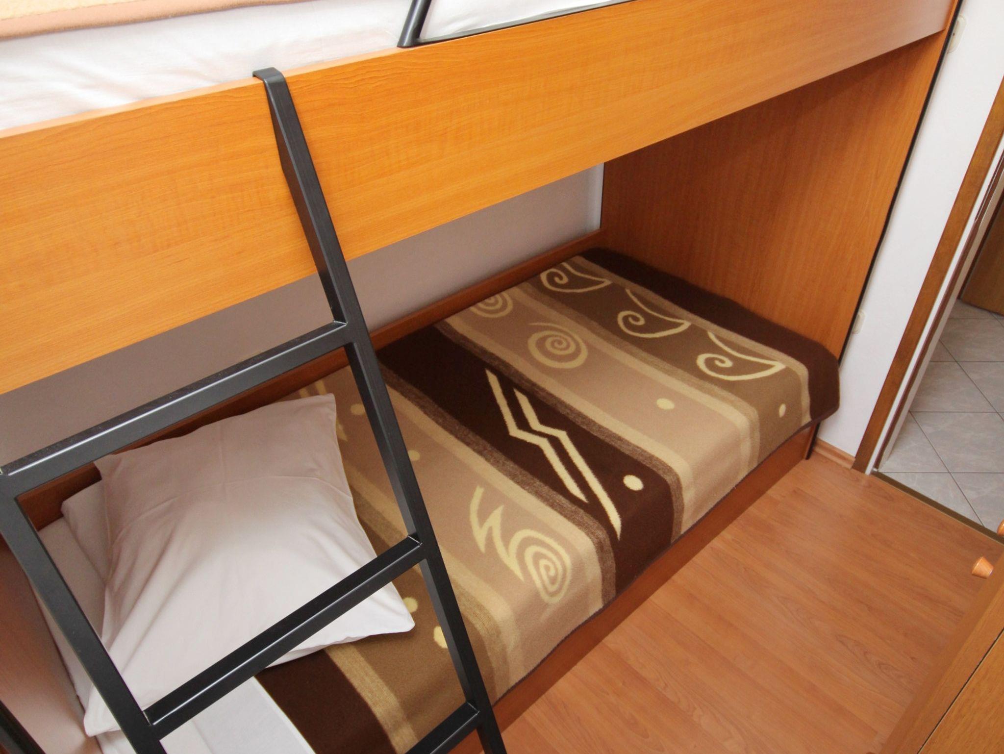Ferienwohnung bietet Platz für 5 Gäste. Die Betten sind in Schlafzimmern, die es 2 gibt, und in Wohnzimmer, innerhalb einer Gesamtfläche von 47m2, angeordnet. Es ist erlaubt, Speisen auf dem Gemeinschafts-Grill vorzubereiten. In der Unterkunftseinheit besteht die Möglichkeit des Mitbringens von Haustieren gegen Aufpreis. Die reservierte Unterkunftseinheit hat keinen Balkon und keine Terrasse. IM PREIS INBEGRIFFEN: Kurtaxe, Endreinigung, Parkplatz, Internet, Wäschewaschen, Kinderbett, Föhn. VERBINDLICHE ZUSÄTZLICHE KOSTEN: Aufzahlung für Kurzaufenthalte (prozentualer Zuschlag pro Nächtigungsanzahl: 30% - 1, 20% - 2, 10% - 3). UNVERBINDLICHE ZUSÄTZLICHE KOSTEN: Frühstück (7,00 €, 50% Nachlass für Kinder zwischen 4 und 12 Jahren, Kinder bis 4 Jahre sind frei.), Klimatisierung (6,00 € pro Nacht), Haustiere (5,00 € pro Nacht), Zusatzbett (5,00 € pro Nacht). Die Verfügbarkeit zusätzlicher Dienstleistungen in Ihrem reservierten Termin und die Preise derselben (falls nicht aufgeführt) müssen im Voraus überprüft werden. Zusätzliche Dienstleistungen die in der Zahlungsaufforderung nicht aufgeführt sind werden direkt beim Vermieter bezahlt, angenommen der Gast nutzt auch diese.