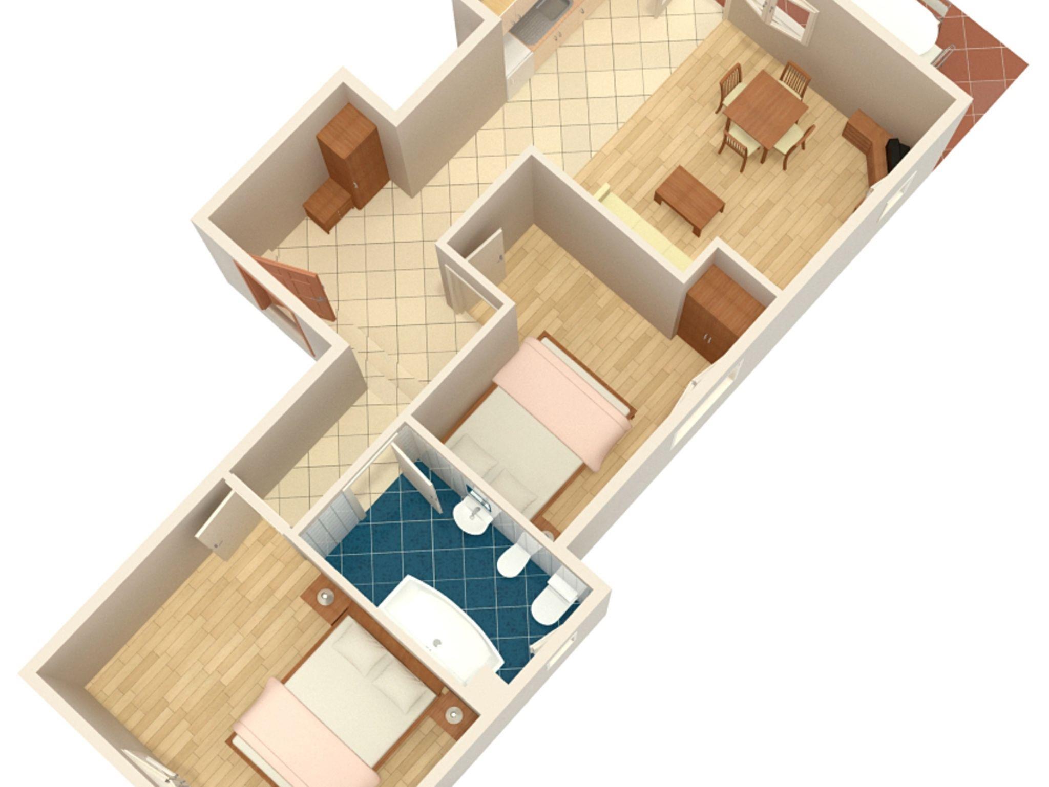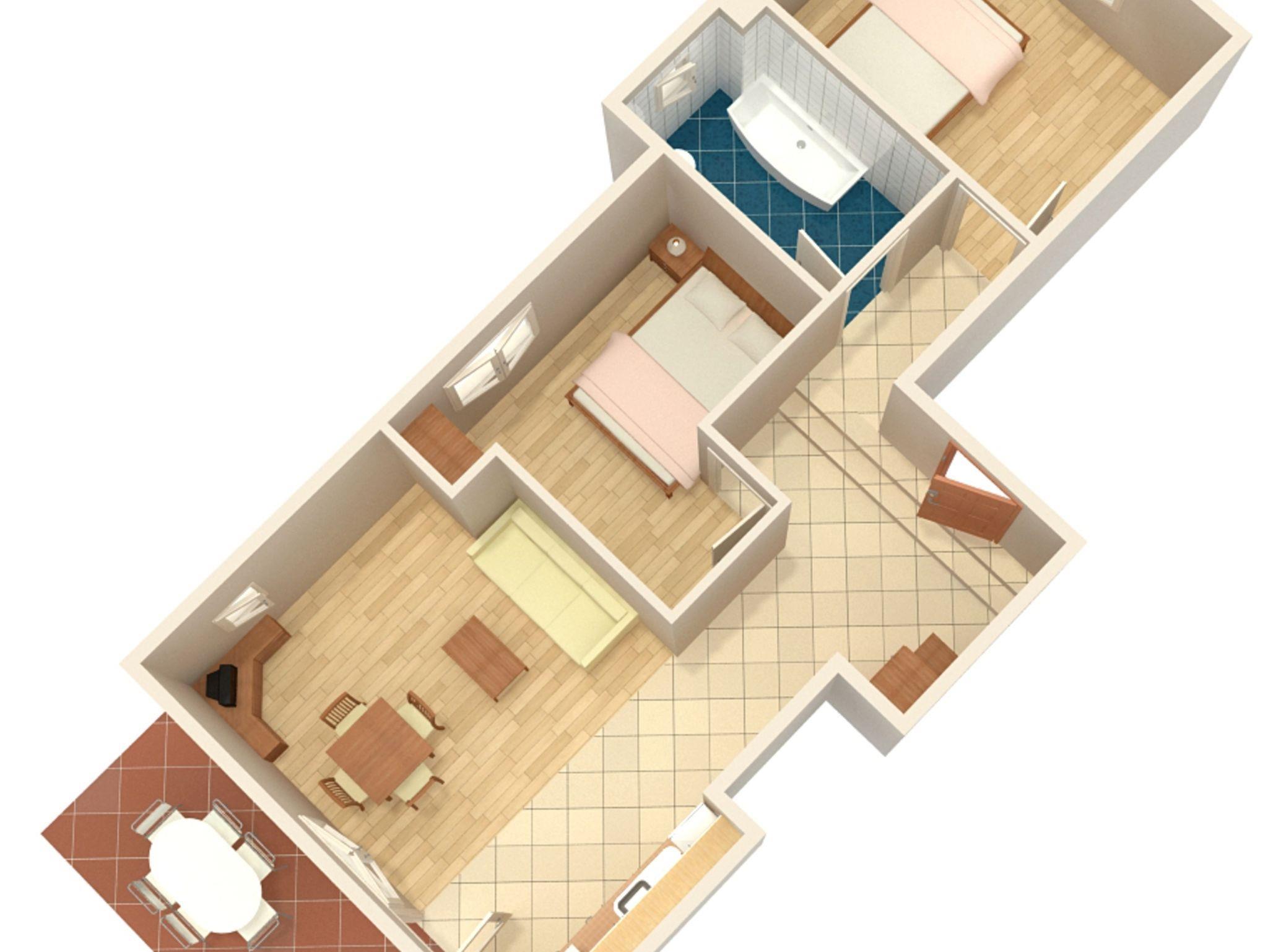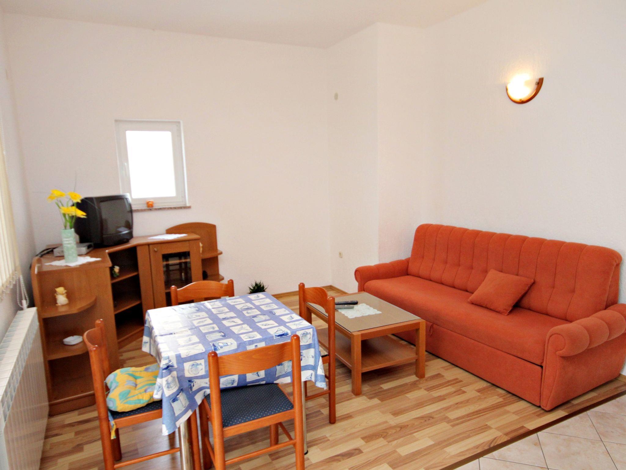 Ferienwohnung bietet Platz für 6 Gäste. Die Betten sind in Schlafzimmern, die es 2 gibt, und in Wohnzimmer, innerhalb einer Gesamtfläche von 59m2, angeordnet. Die Gäste haben eine eigene Terrasse zur Verfügung, auf der sie in warmen Sommernächten genießen können. Das Apartment bietet Meerblick. Es ist erlaubt, Speisen auf dem Gemeinschafts-Grill vorzubereiten. In der Unterkunftseinheit besteht die Möglichkeit des Mitbringens von Haustieren gegen Aufpreis. IM PREIS INBEGRIFFEN: Kurtaxe, Endreinigung, Parkplatz, Internet, Wäschewaschen, Kinderbett, Föhn. VERBINDLICHE ZUSÄTZLICHE KOSTEN: Aufzahlung für Kurzaufenthalte (prozentualer Zuschlag pro Nächtigungsanzahl: 30% - 1, 20% - 2, 10% - 3). UNVERBINDLICHE ZUSÄTZLICHE KOSTEN: Frühstück (7,00 €, 50% Nachlass für Kinder zwischen 4 und 12 Jahren, Kinder bis 4 Jahre sind frei.), Klimatisierung (6,00 € pro Nacht), Zentralheizung (6,00 € pro Nacht), Haustiere (5,00 € pro Nacht), Zusatzbett (5,00 € pro Nacht). Die Verfügbarkeit zusätzlicher Dienstleistungen in Ihrem reservierten Termin und die Preise derselben (falls nicht aufgeführt) müssen im Voraus überprüft werden. Zusätzliche Dienstleistungen die in der Zahlungsaufforderung nicht aufgeführt sind werden direkt beim Vermieter bezahlt, angenommen der Gast nutzt auch diese.