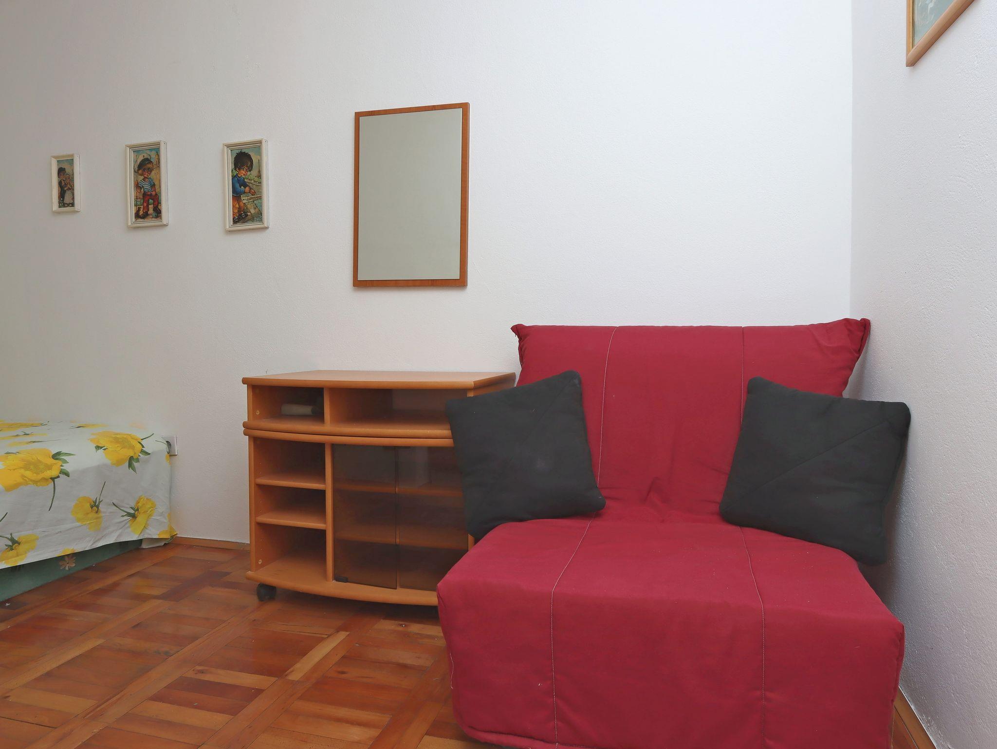 Ferienwohnung bietet Platz für 6 Gäste. Die Betten sind in Schlafzimmern, die es 2 gibt, und in Wohnzimmer, innerhalb einer Gesamtfläche von 40m2, angeordnet. Die Gäste haben eine eigene Terrasse zur Verfügung, auf der sie in warmen Sommernächten genießen können. Es ist erlaubt, Speisen auf dem Gemeinschafts-Grill vorzubereiten. In der Unterkunftseinheit besteht die Möglichkeit des Mitbringens von Haustieren gegen Aufpreis. IM PREIS INBEGRIFFEN: Kurtaxe, Endreinigung, Klimatisierung, Parkplatz, Internet, Wäschewaschen. VERBINDLICHE ZUSÄTZLICHE KOSTEN: Aufzahlung für Kurzaufenthalte (prozentualer Zuschlag pro Nächtigungsanzahl: 30% - 1, 20% - 2, 10% - 3). UNVERBINDLICHE ZUSÄTZLICHE KOSTEN: Haustiere (5,00 € pro Nacht). Die Verfügbarkeit zusätzlicher Dienstleistungen in Ihrem reservierten Termin und die Preise derselben (falls nicht aufgeführt) müssen im Voraus überprüft werden. Zusätzliche Dienstleistungen die in der Zahlungsaufforderung nicht aufgeführt sind werden direkt beim Vermieter bezahlt, angenommen der Gast nutzt auch diese. Ermäßigung auf den Grundpreis: Gratistag 14=13 (bei einem Aufenthalt von 14 Tagen oder mehr erhalten Sie einen Gratistag für den Aufenthalt bis 31.12.26).