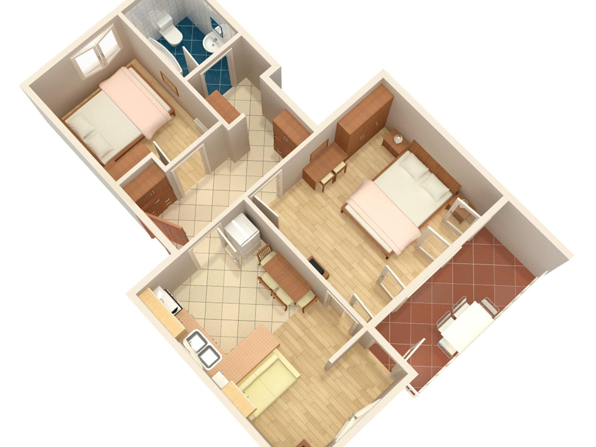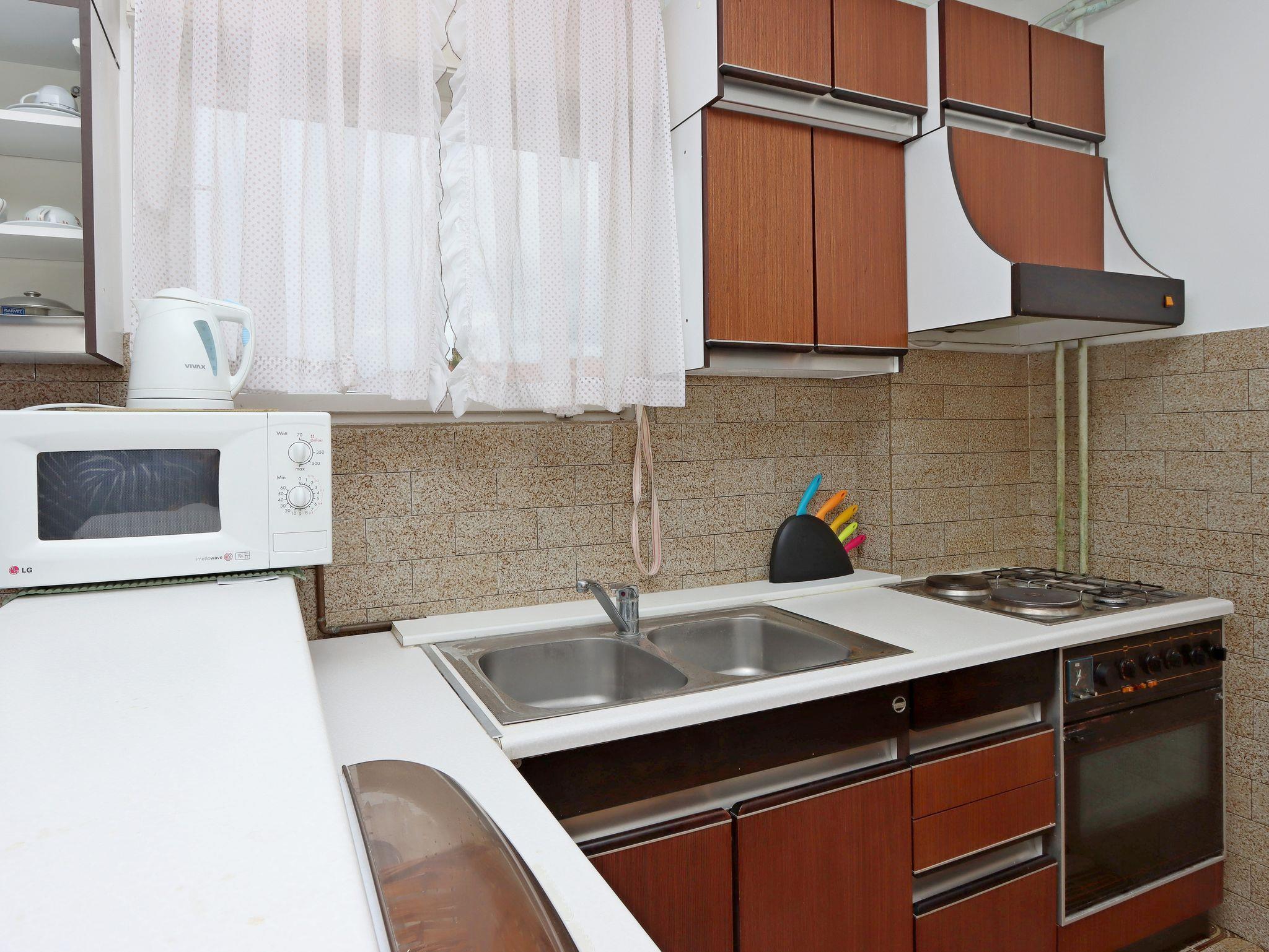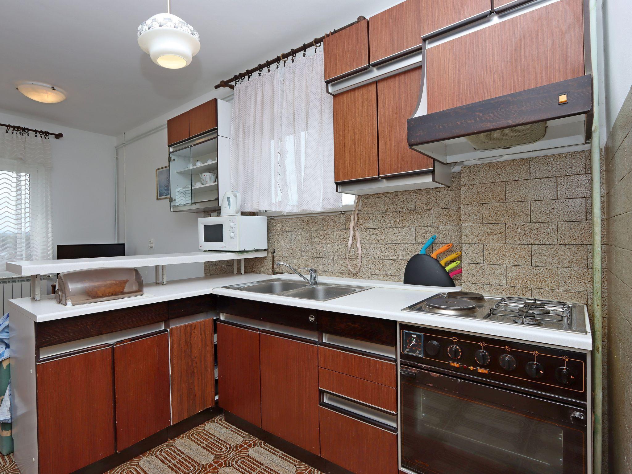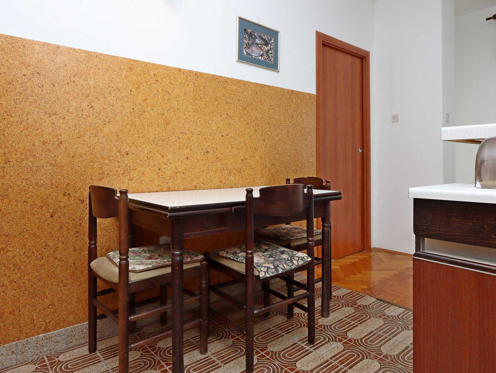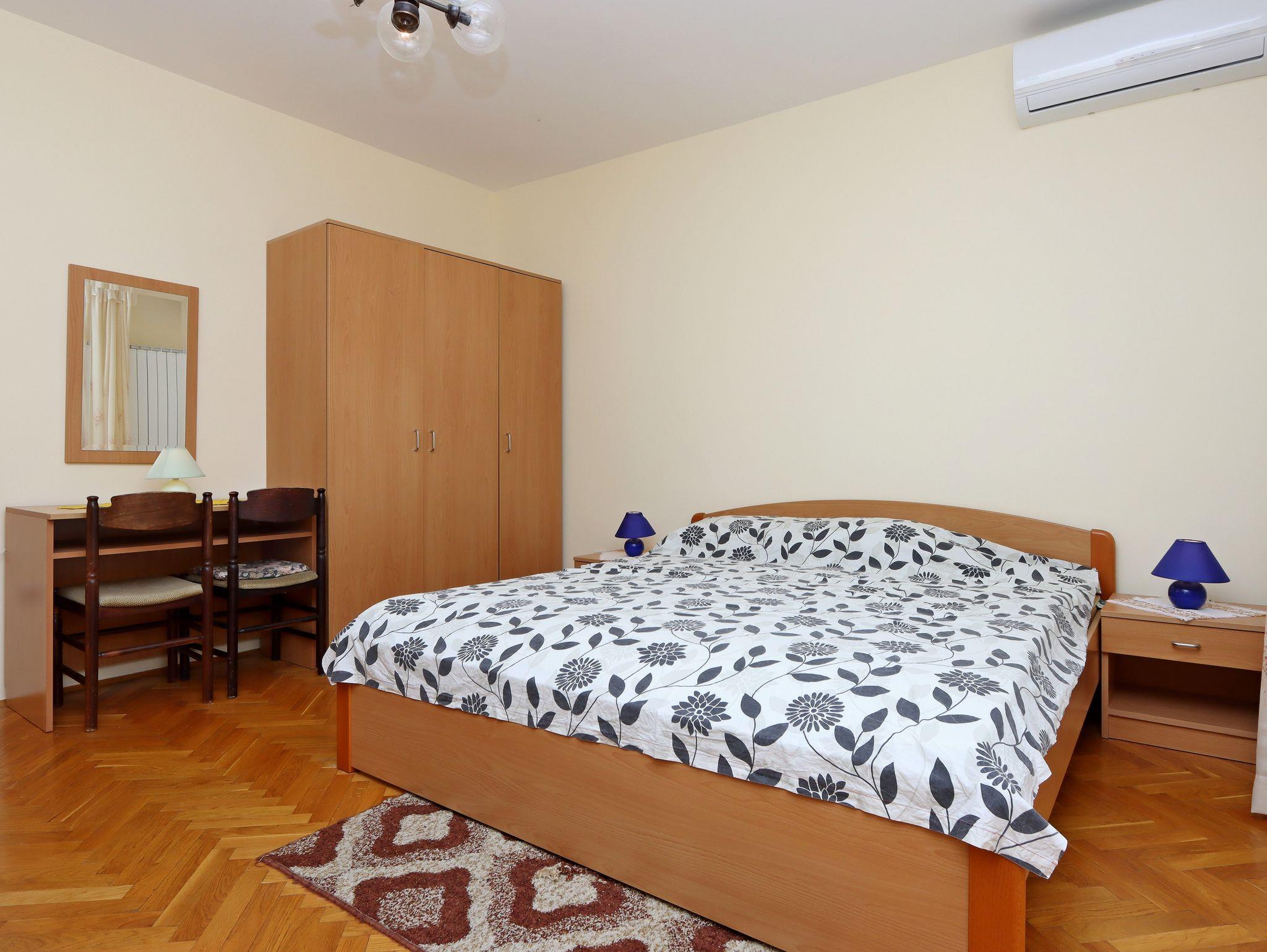Ferienwohnung bietet Platz für 5 Gäste. Die Betten sind in Schlafzimmern, die es 2 gibt, innerhalb einer Gesamtfläche von 50m2, angeordnet. Die Gäste haben einen eigenen Balkon zur Verfügung, auf der sie in warmen Sommernächten genießen können. Das Apartment bietet Meerblick. Es ist erlaubt, Speisen auf dem Gemeinschafts-Grill vorzubereiten. In der Unterkunftseinheit besteht die Möglichkeit des Mitbringens von Haustieren gegen Aufpreis. IM PREIS INBEGRIFFEN: Kurtaxe, Endreinigung, Klimatisierung, Zentralheizung, Parkplatz, Internet, Wäschewaschen. VERBINDLICHE ZUSÄTZLICHE KOSTEN: Aufzahlung für Kurzaufenthalte (prozentualer Zuschlag pro Nächtigungsanzahl: 30% - 1, 20% - 2, 10% - 3). UNVERBINDLICHE ZUSÄTZLICHE KOSTEN: Haustiere (5,00 € pro Nacht). Die Verfügbarkeit zusätzlicher Dienstleistungen in Ihrem reservierten Termin und die Preise derselben (falls nicht aufgeführt) müssen im Voraus überprüft werden. Zusätzliche Dienstleistungen die in der Zahlungsaufforderung nicht aufgeführt sind werden direkt beim Vermieter bezahlt, angenommen der Gast nutzt auch diese. Ermäßigung auf den Grundpreis: Gratistag 14=13 (bei einem Aufenthalt von 14 Tagen oder mehr erhalten Sie einen Gratistag für den Aufenthalt bis 31.12.26).