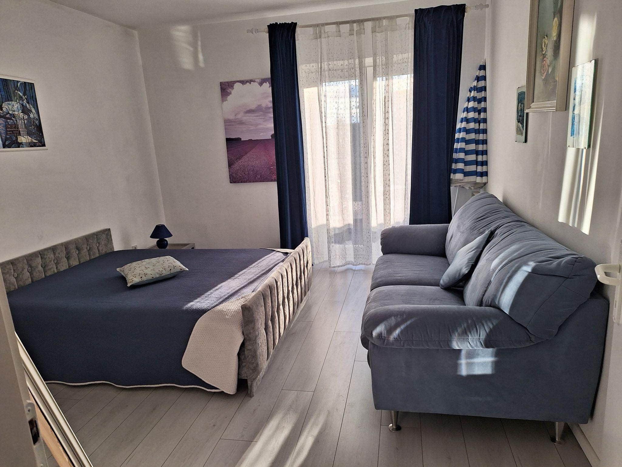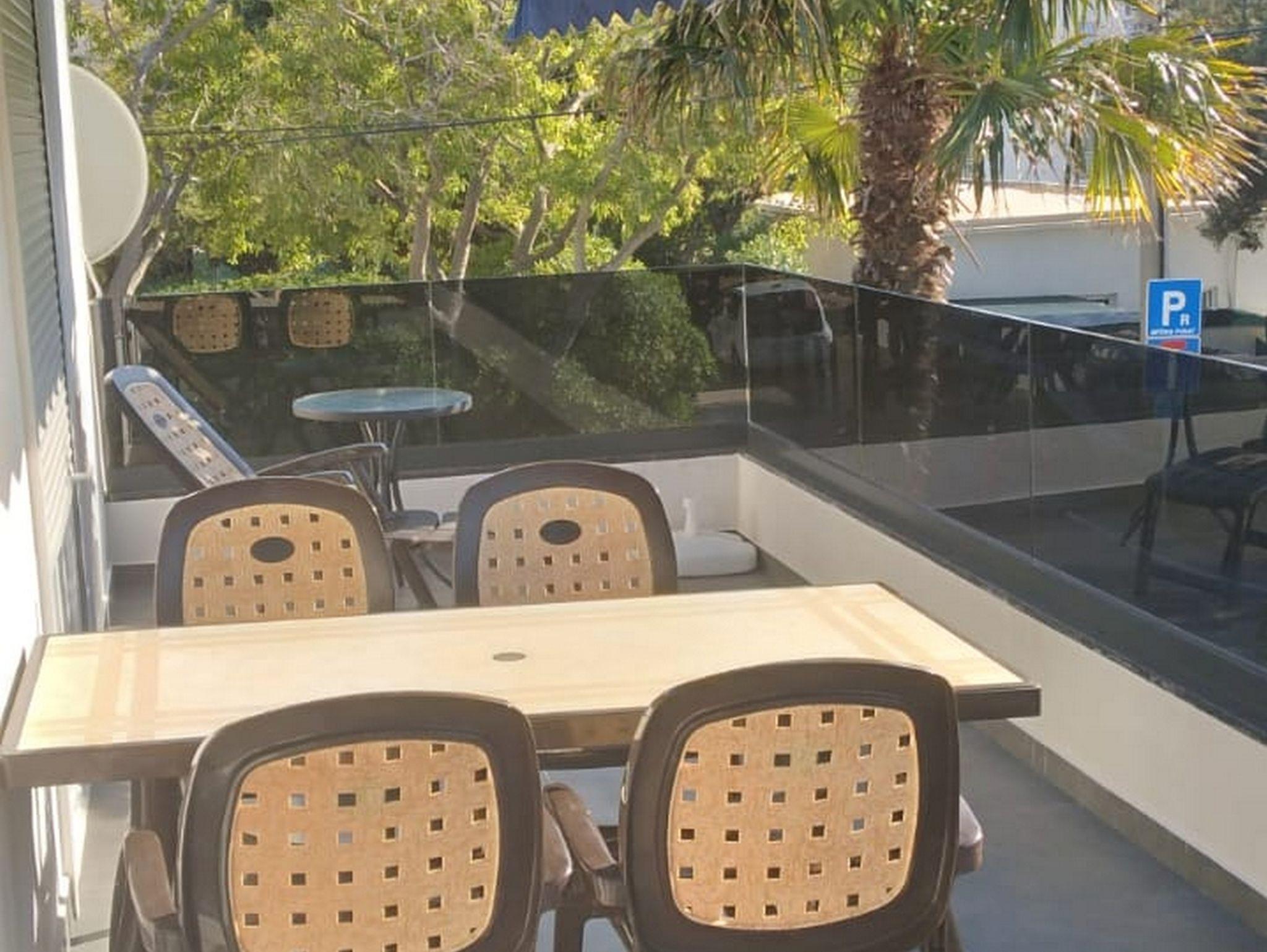 Ferienwohnung bietet Platz für 4 Gäste. Die Betten sind in Schlafzimmern, die es 2 gibt, innerhalb einer Gesamtfläche von 60m2, angeordnet. Die Gäste haben eine eigene Terrasse zur Verfügung, auf der sie in warmen Sommernächten genießen können. Das Apartment bietet Meerblick. Es ist erlaubt, Speisen auf dem Gemeinschafts-Grill vorzubereiten. In der Unterkunftseinheit besteht die Möglichkeit des Mitbringens von Haustieren gegen Aufpreis. IM PREIS INBEGRIFFEN: Kurtaxe, Endreinigung, Klimatisierung, Parkplatz, Internet, Wäschewaschen, Föhn. VERBINDLICHE ZUSÄTZLICHE KOSTEN: Aufzahlung für Kurzaufenthalte (prozentualer Zuschlag pro Nächtigungsanzahl: 30% - 1, 20% - 2, 10% - 3). UNVERBINDLICHE ZUSÄTZLICHE KOSTEN: Haustiere (6,00 € pro Nacht), Zusatzbett (10,00 € pro Nacht). Die Verfügbarkeit zusätzlicher Dienstleistungen in Ihrem reservierten Termin und die Preise derselben (falls nicht aufgeführt) müssen im Voraus überprüft werden. Zusätzliche Dienstleistungen die in der Zahlungsaufforderung nicht aufgeführt sind werden direkt beim Vermieter bezahlt, angenommen der Gast nutzt auch diese.