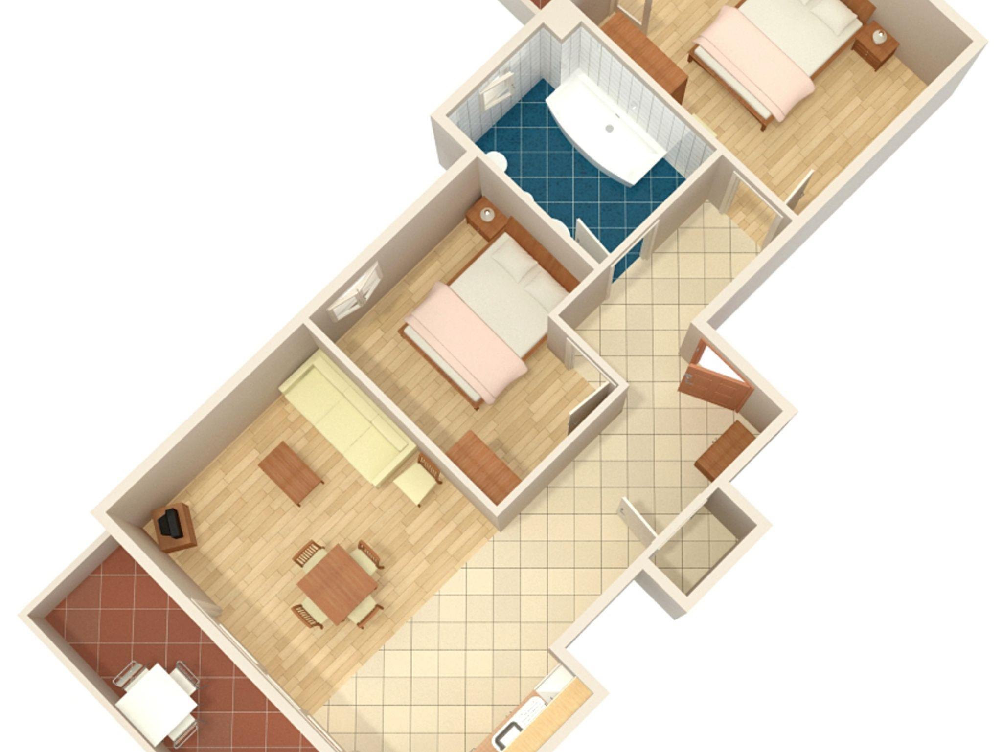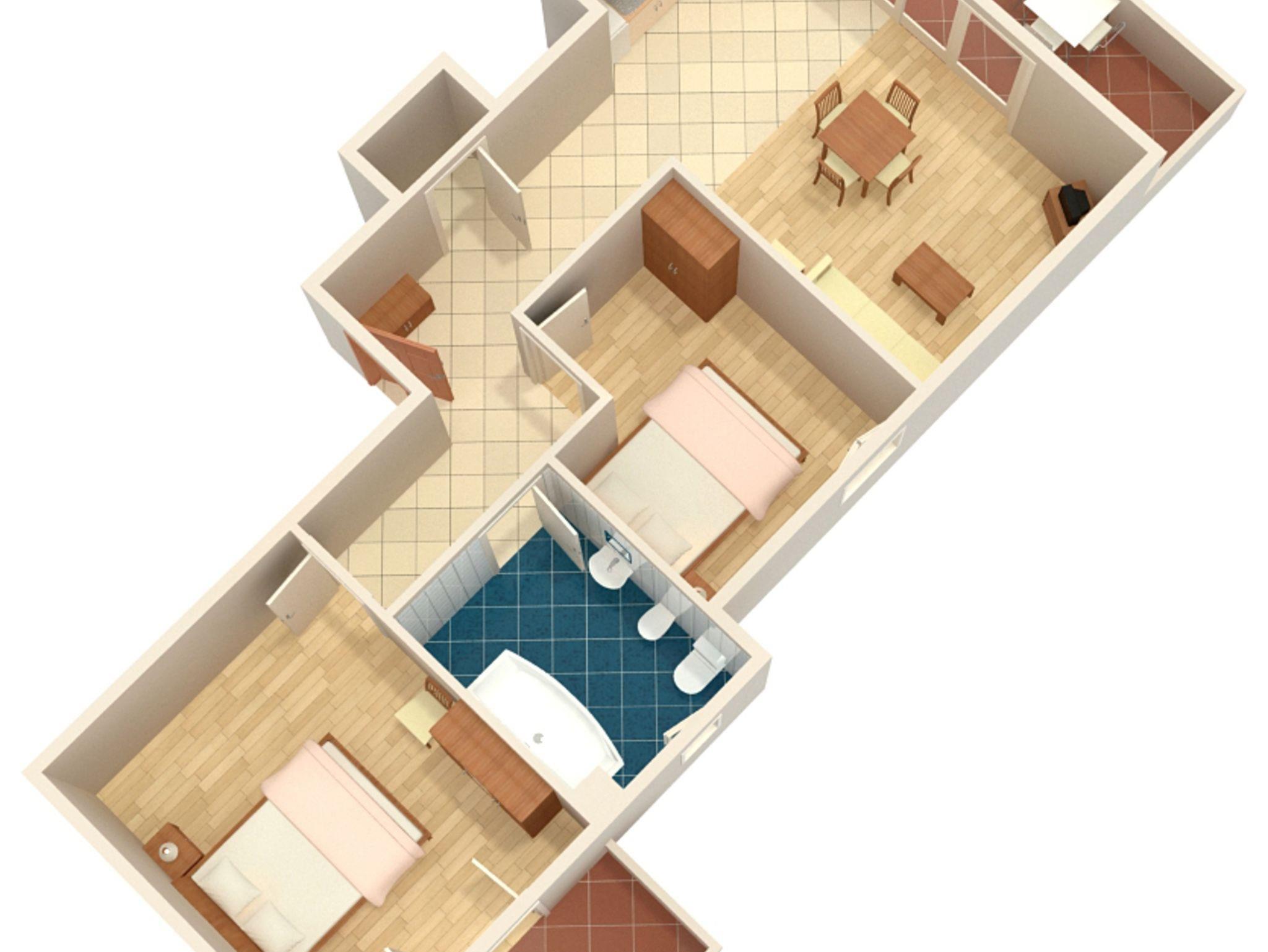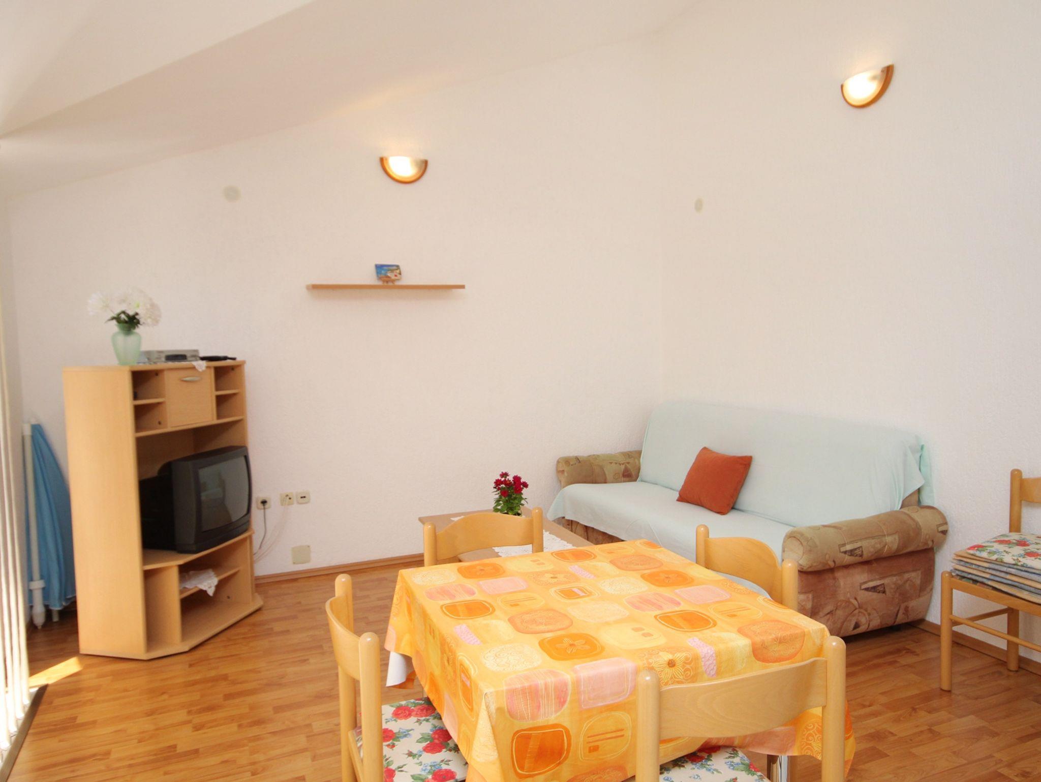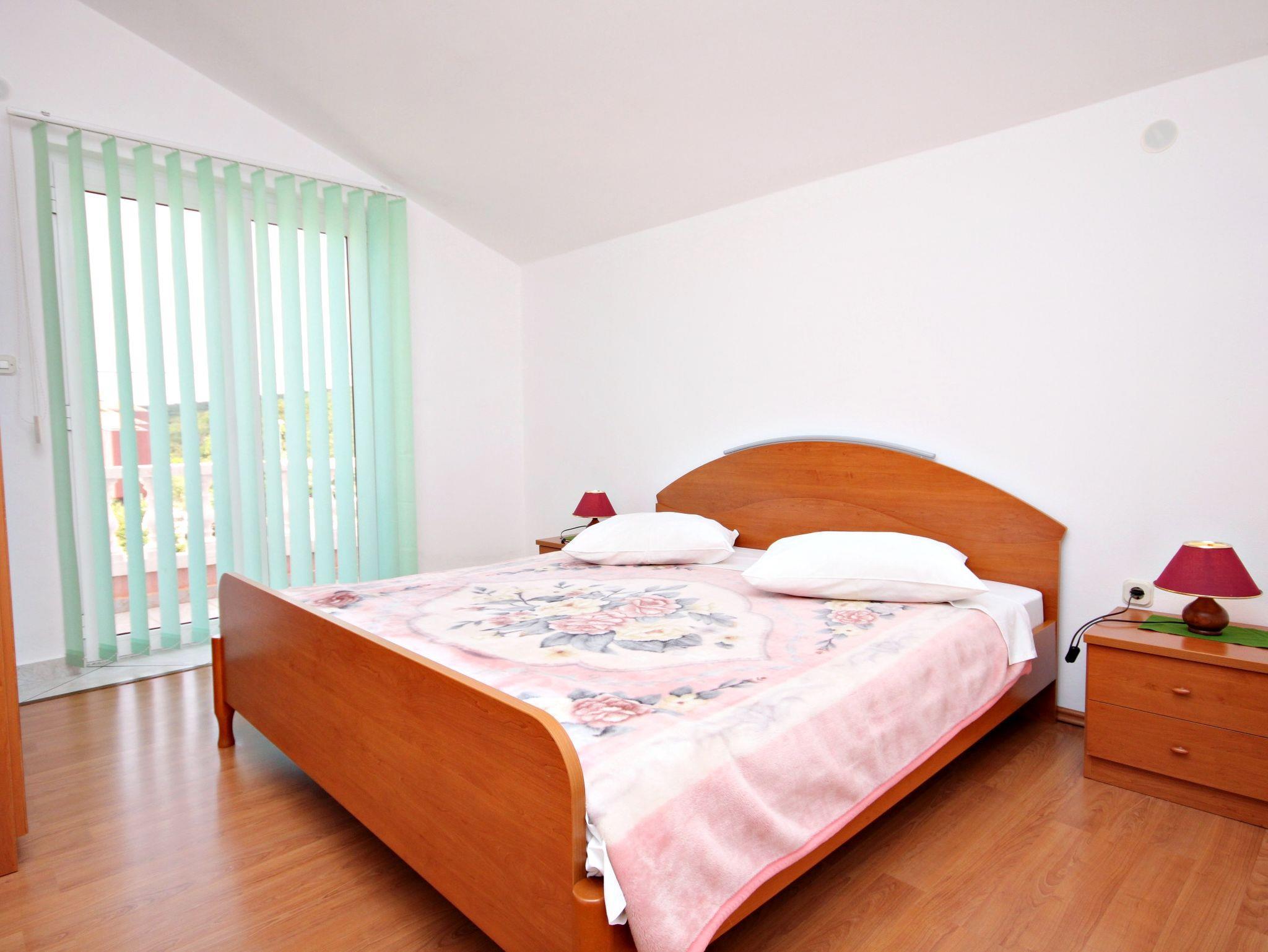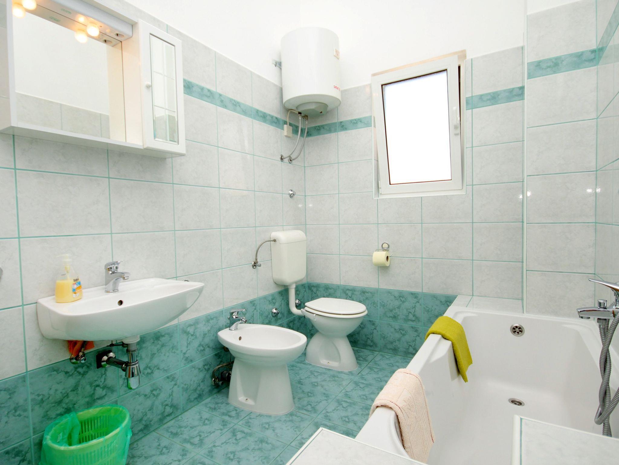 Ferienwohnung bietet Platz für 6 Gäste. Die Betten sind in Schlafzimmern, die es 2 gibt, und in Wohnzimmer, innerhalb einer Gesamtfläche von 57m2, angeordnet. Die Gäste haben eine eigene Terrasse zur Verfügung, auf der sie in warmen Sommernächten genießen können. Das Apartment bietet Meerblick. Es ist erlaubt, Speisen auf dem Gemeinschafts-Grill vorzubereiten. In der Unterkunftseinheit besteht die Möglichkeit des Mitbringens von Haustieren gegen Aufpreis. IM PREIS INBEGRIFFEN: Kurtaxe, Endreinigung, Parkplatz, Internet, Wäschewaschen, Kinderbett, Föhn. VERBINDLICHE ZUSÄTZLICHE KOSTEN: Aufzahlung für Kurzaufenthalte (prozentualer Zuschlag pro Nächtigungsanzahl: 30% - 1, 20% - 2, 10% - 3). UNVERBINDLICHE ZUSÄTZLICHE KOSTEN: Frühstück (7,00 €, 50% Nachlass für Kinder zwischen 4 und 12 Jahren, Kinder bis 4 Jahre sind frei.), Klimatisierung (6,00 € pro Nacht), Haustiere (5,00 € pro Nacht), Zusatzbett (5,00 € pro Nacht). Die Verfügbarkeit zusätzlicher Dienstleistungen in Ihrem reservierten Termin und die Preise derselben (falls nicht aufgeführt) müssen im Voraus überprüft werden. Zusätzliche Dienstleistungen die in der Zahlungsaufforderung nicht aufgeführt sind werden direkt beim Vermieter bezahlt, angenommen der Gast nutzt auch diese.