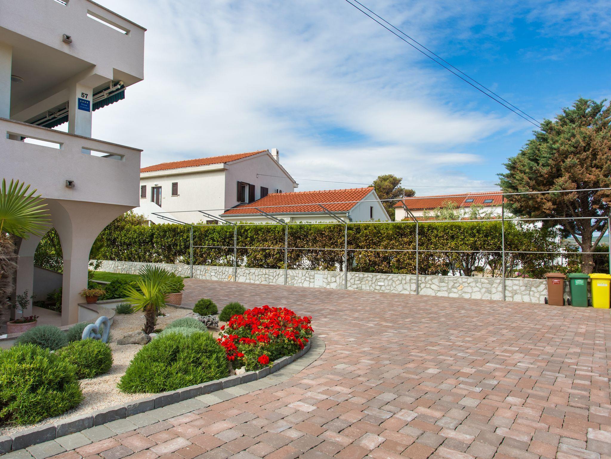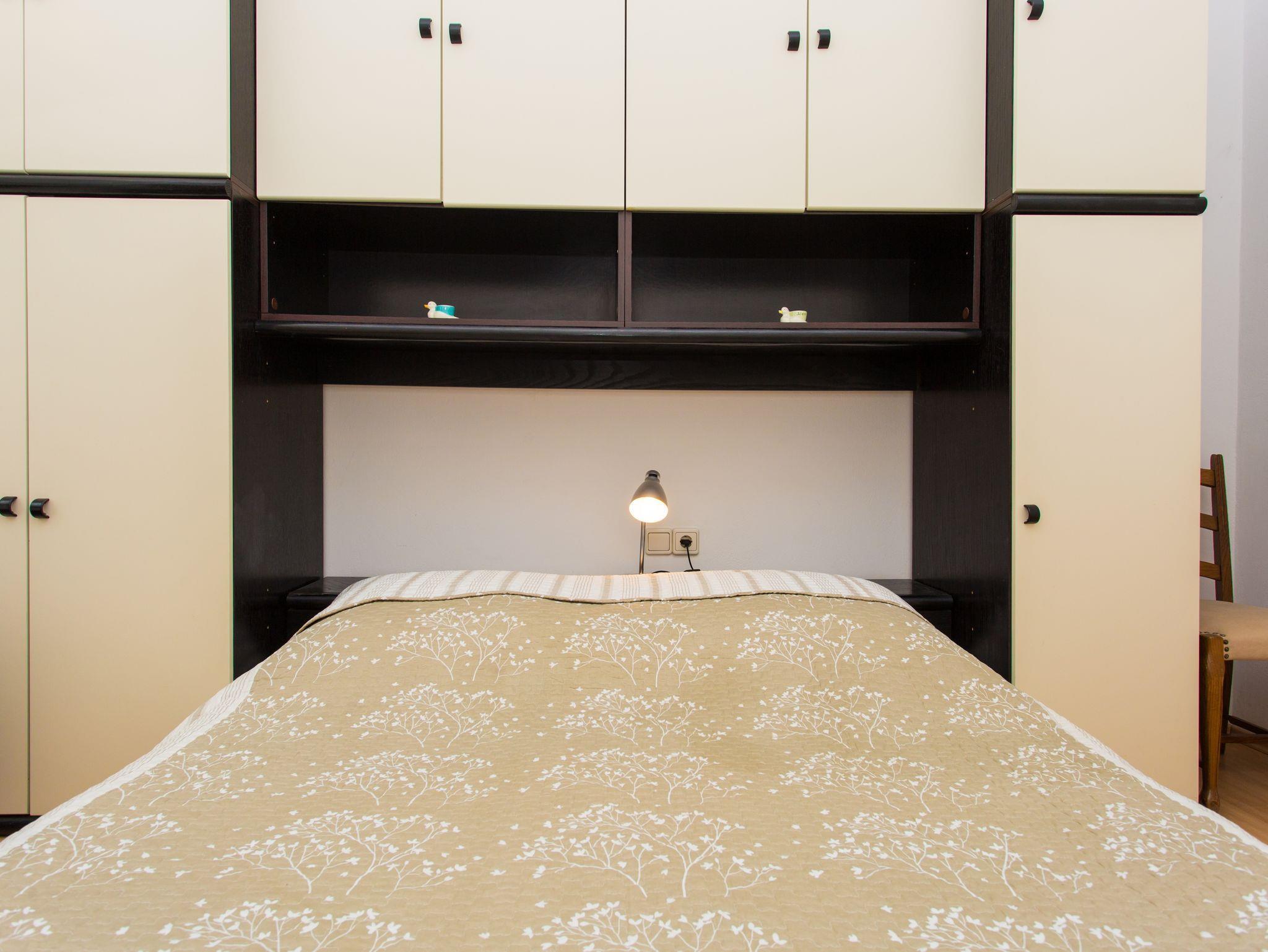 Ferienwohnung bietet Platz für 4 Gäste. Die Betten sind in Schlafzimmern, die es 1 gibt, und in Wohnzimmer, innerhalb einer Gesamtfläche von 35m2, angeordnet. Die Gäste haben eine eigene Terrasse zur Verfügung, auf der sie in warmen Sommernächten genießen können. Es ist erlaubt, Speisen auf dem Gemeinschafts-Grill vorzubereiten. In der Unterkunftseinheit besteht die Möglichkeit des Mitbringens von Haustieren gegen Aufpreis. IM PREIS INBEGRIFFEN: Kurtaxe, Endreinigung, Klimatisierung, Parkplatz, Internet, Wäschewaschen, Kinderbett, Bügeleisen, Föhn, Sonnenschirm. VERBINDLICHE ZUSÄTZLICHE KOSTEN: Aufzahlung für Kurzaufenthalte (prozentualer Zuschlag pro Nächtigungsanzahl: 30% - 1, 20% - 2, 10% - 3). UNVERBINDLICHE ZUSÄTZLICHE KOSTEN: Haustiere (10,00 € pro Nacht). Die Verfügbarkeit zusätzlicher Dienstleistungen in Ihrem reservierten Termin und die Preise derselben (falls nicht aufgeführt) müssen im Voraus überprüft werden. Zusätzliche Dienstleistungen die in der Zahlungsaufforderung nicht aufgeführt sind werden direkt beim Vermieter bezahlt, angenommen der Gast nutzt auch diese. Ermäßigung auf den Grundpreis: Gratistag 14=13 (bei einem Aufenthalt von 14 Tagen oder mehr erhalten Sie einen Gratistag für den Aufenthalt bis 31.12.26).