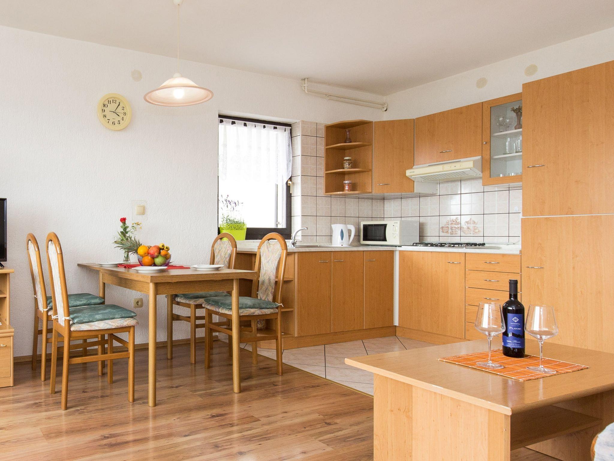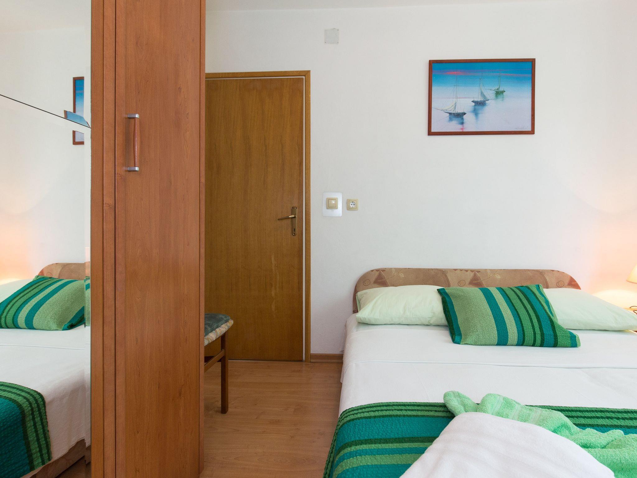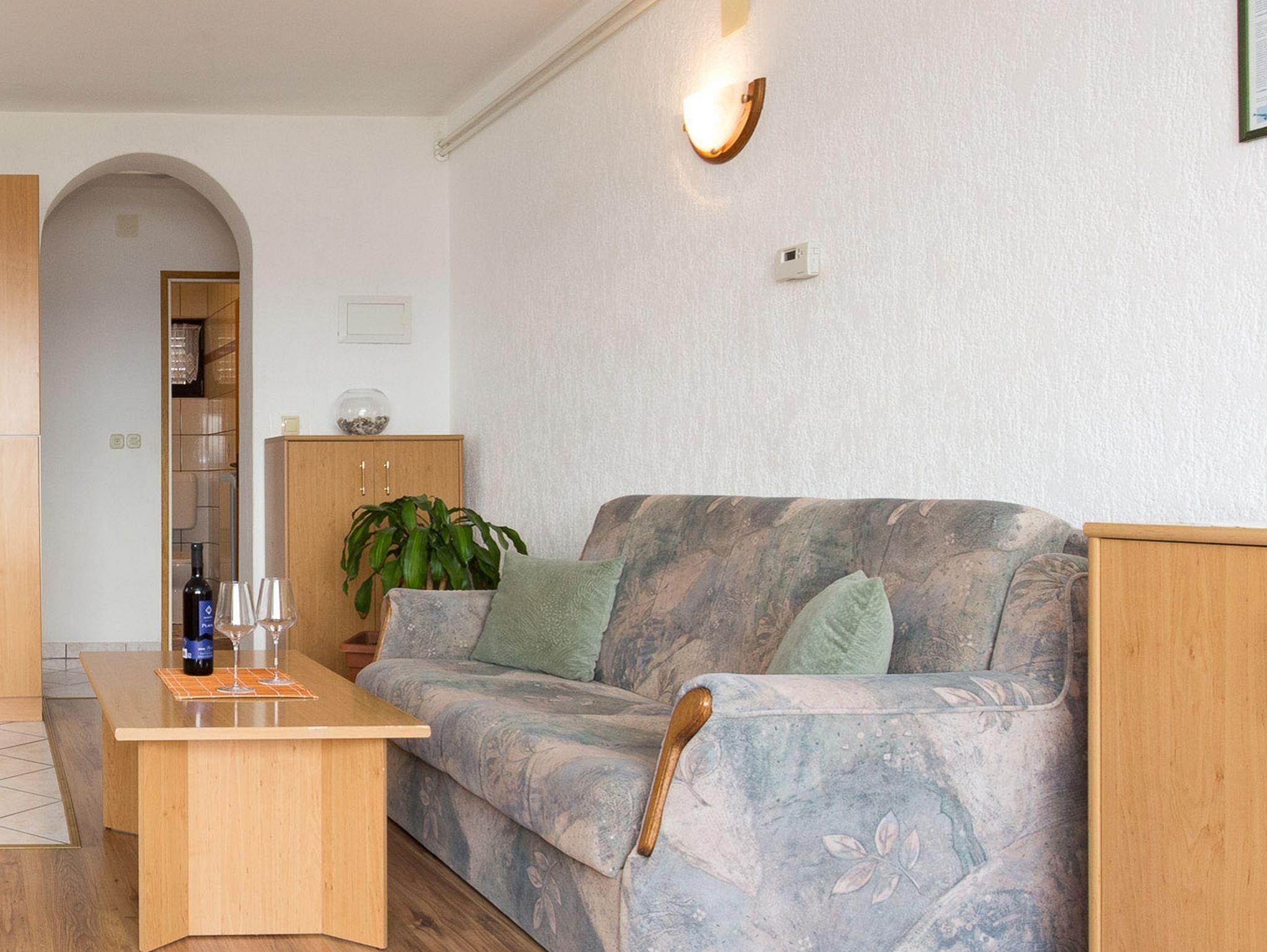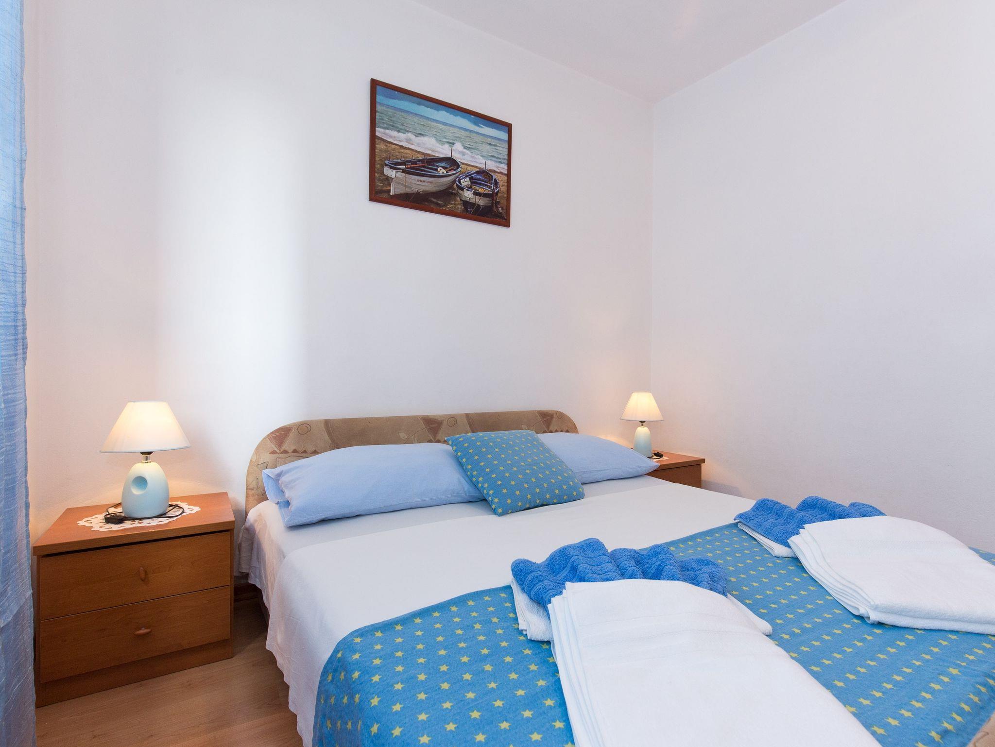 Ferienwohnung bietet Platz für 4 Gäste. Die Betten sind in Schlafzimmern, die es 2 gibt, innerhalb einer Gesamtfläche von 47m2, angeordnet. Das Apartment bietet Meerblick. Es ist erlaubt, Speisen auf dem Gemeinschafts-Grill vorzubereiten. Während ihres Aufenthalts können Gäste das gemeinsam zur Nutzung stehende Schwimmbad benutzen. Die reservierte Unterkunftseinheit verfügt über einen gemeinsame Terrasse. IM PREIS INBEGRIFFEN: Kurtaxe, Endreinigung, Klimatisierung, Pool, Parkplatz, Internet, Kinderbett, Bügeleisen, Bügelbrett, Föhn. VERBINDLICHE ZUSÄTZLICHE KOSTEN: Aufzahlung für Kurzaufenthalte (prozentualer Zuschlag pro Nächtigungsanzahl: 30% - 1, 20% - 2, 10% - 3). UNVERBINDLICHE ZUSÄTZLICHE KOSTEN: Zentralheizung (6,00 € pro Nacht), Wäschewaschen (5,00 € Waschen). Die Verfügbarkeit zusätzlicher Dienstleistungen in Ihrem reservierten Termin und die Preise derselben (falls nicht aufgeführt) müssen im Voraus überprüft werden. Zusätzliche Dienstleistungen die in der Zahlungsaufforderung nicht aufgeführt sind werden direkt beim Vermieter bezahlt, angenommen der Gast nutzt auch diese.