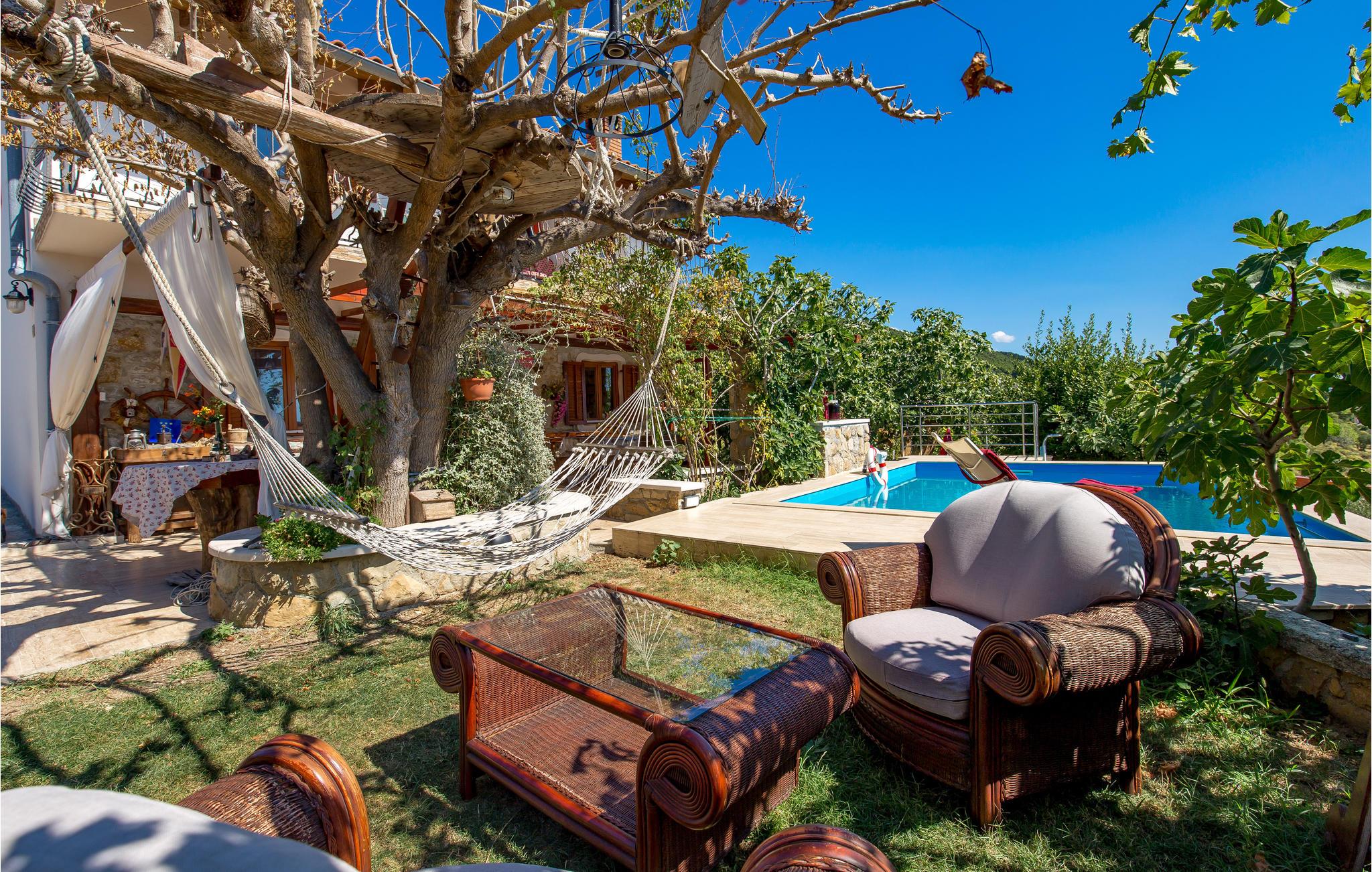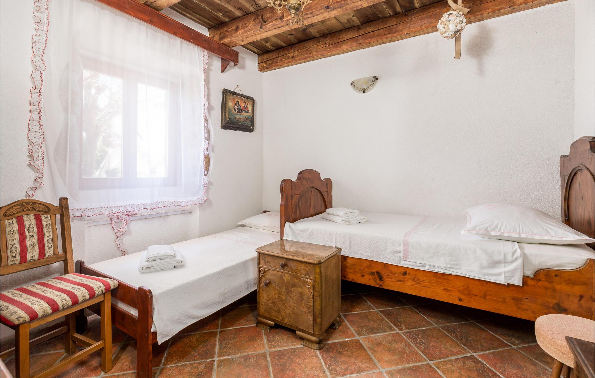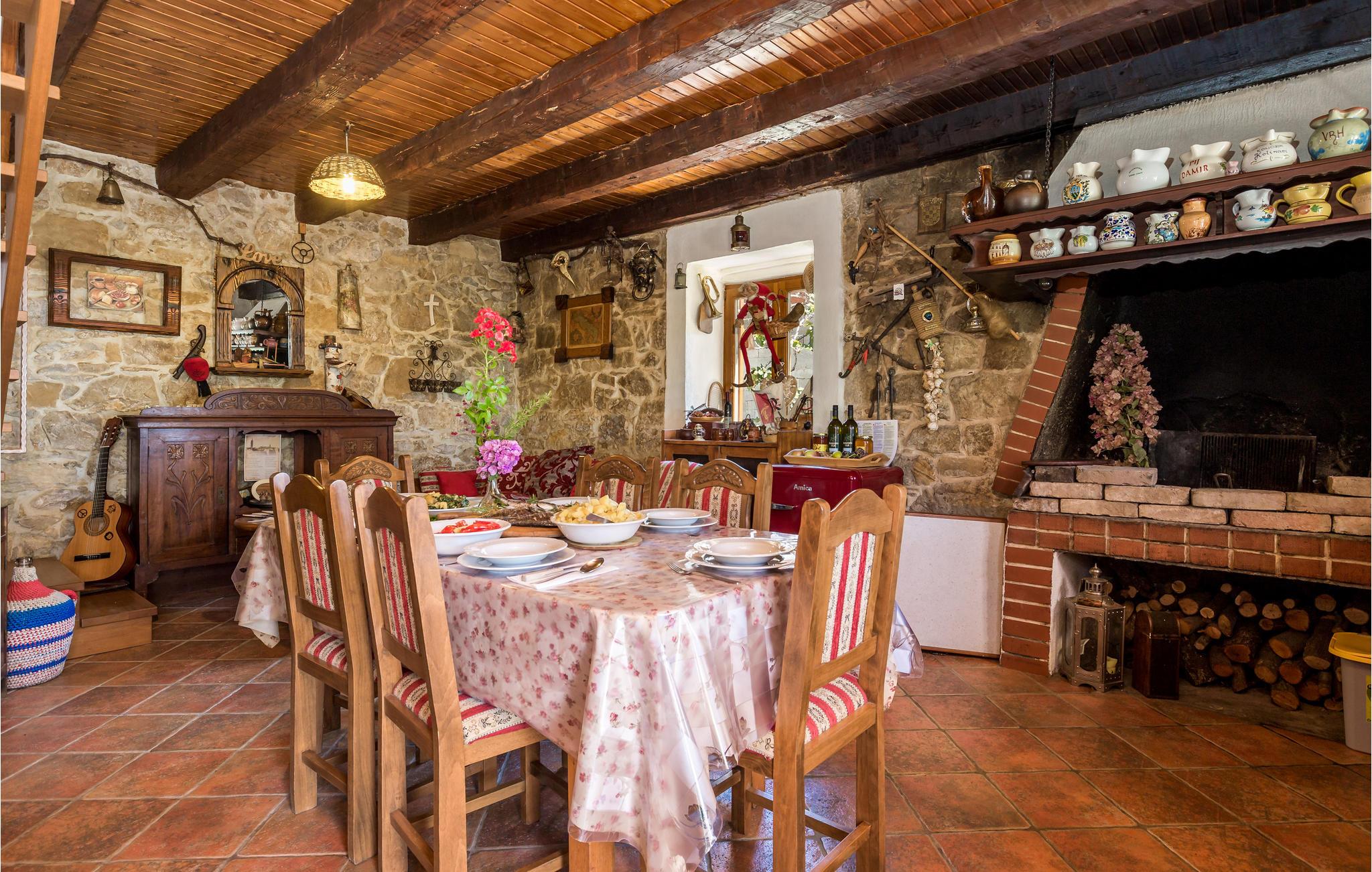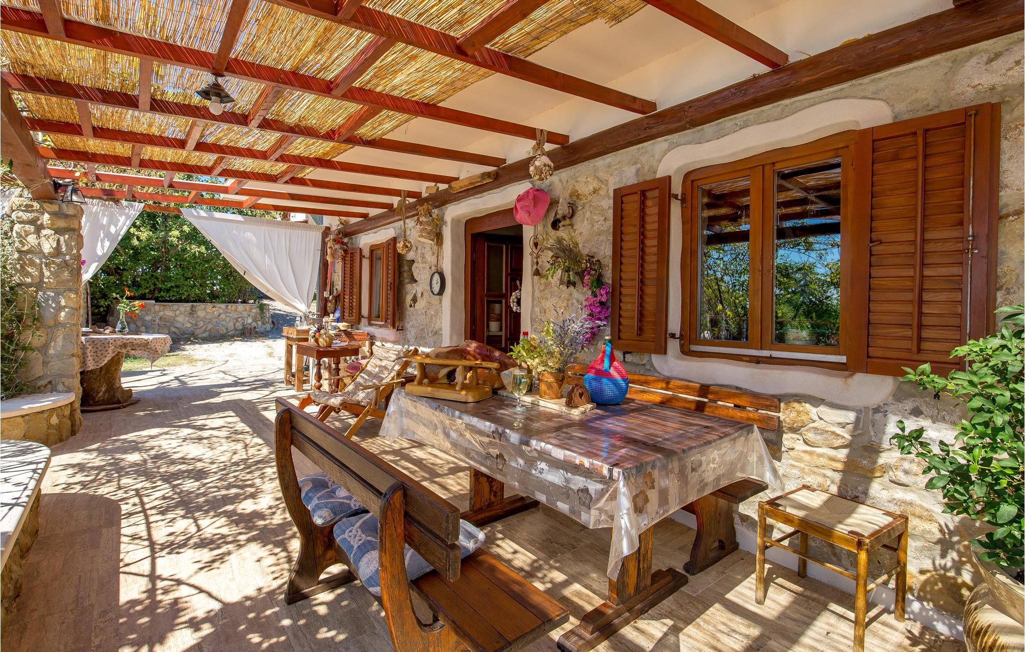 Hvis I søger fred og ro samt landlige rammer, er dette toetagers stenhus helt perfekt. Her får I både en privat, hyggelig have og et hus med tre soveværelser, så der er masser af plads. I køkken-alrummet kan I nyde måltiderne i flotte rustikke omgivelser og lytte til de knitrende flammer fra den åbne pejs. I kan også samles omkring spisebordet på terrassen og beundre udsigten til havet og den nærliggende ø. I haven kan I slænge jer i hængekøjen, hoppe en tur i den private pool, grille eller nyde et glas vin på terrassen, mens I lader øjnene hvile på havudsigten.