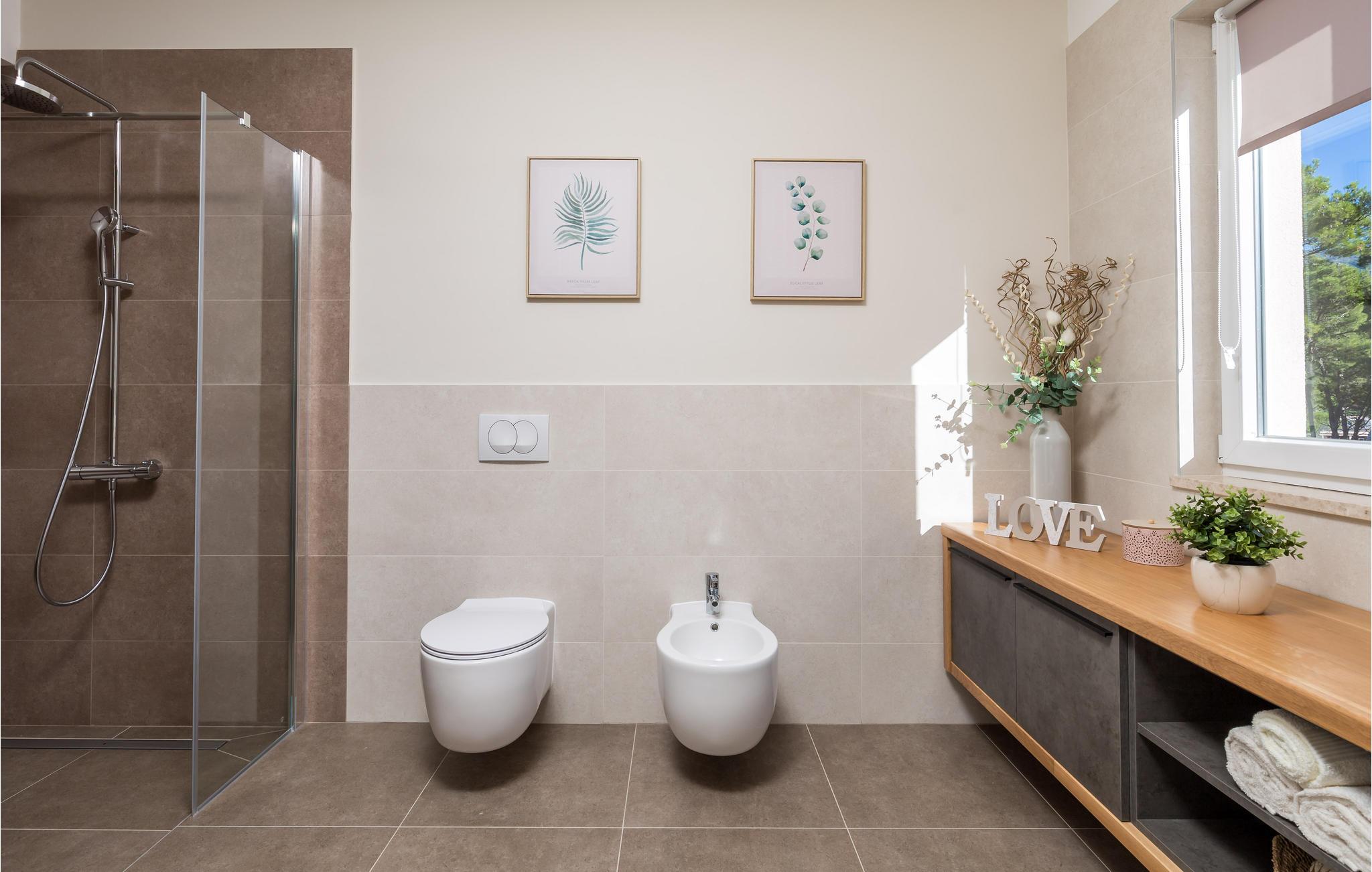 - WC. Varmt og koldt vand, Bruser og badekar