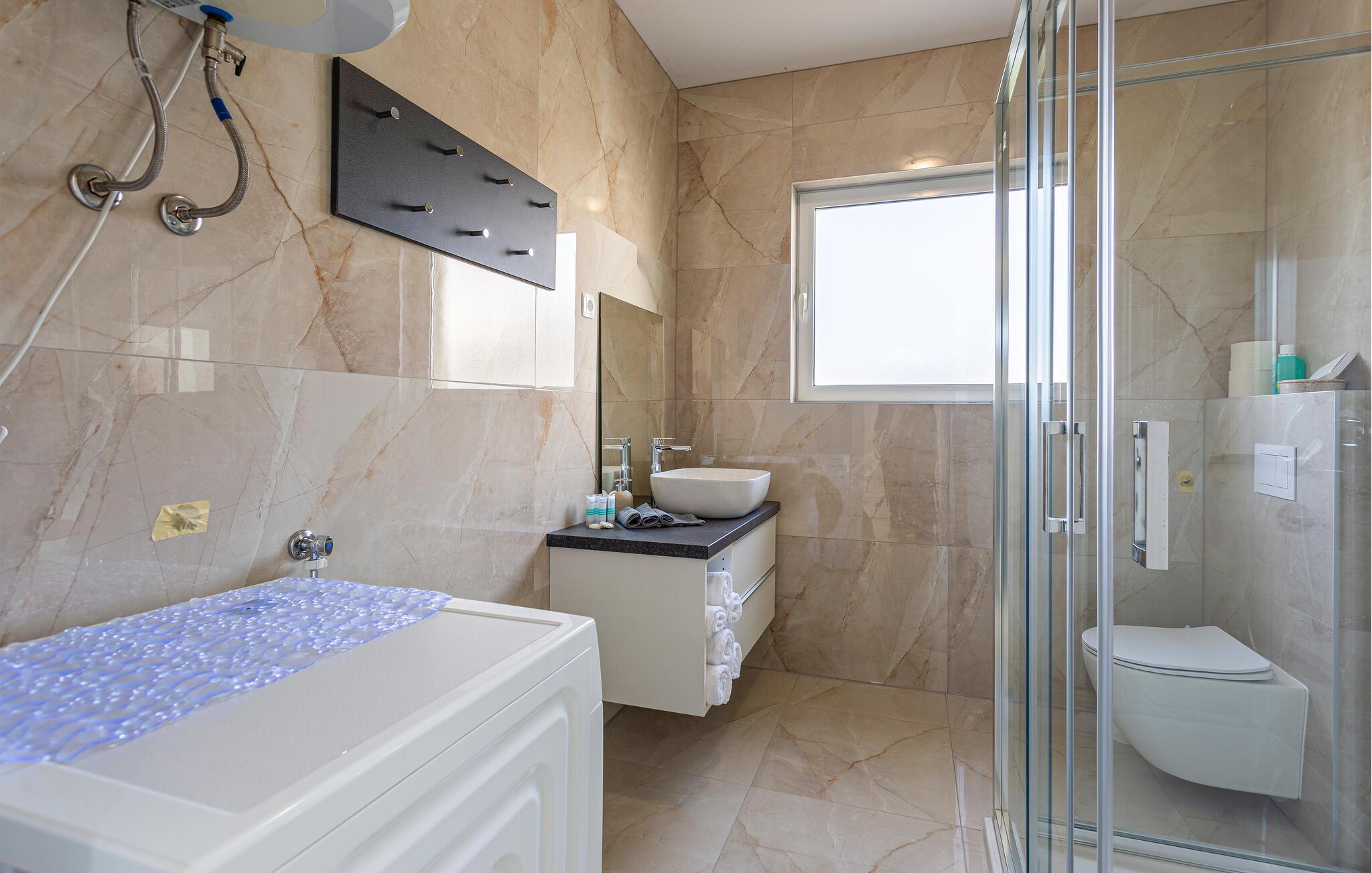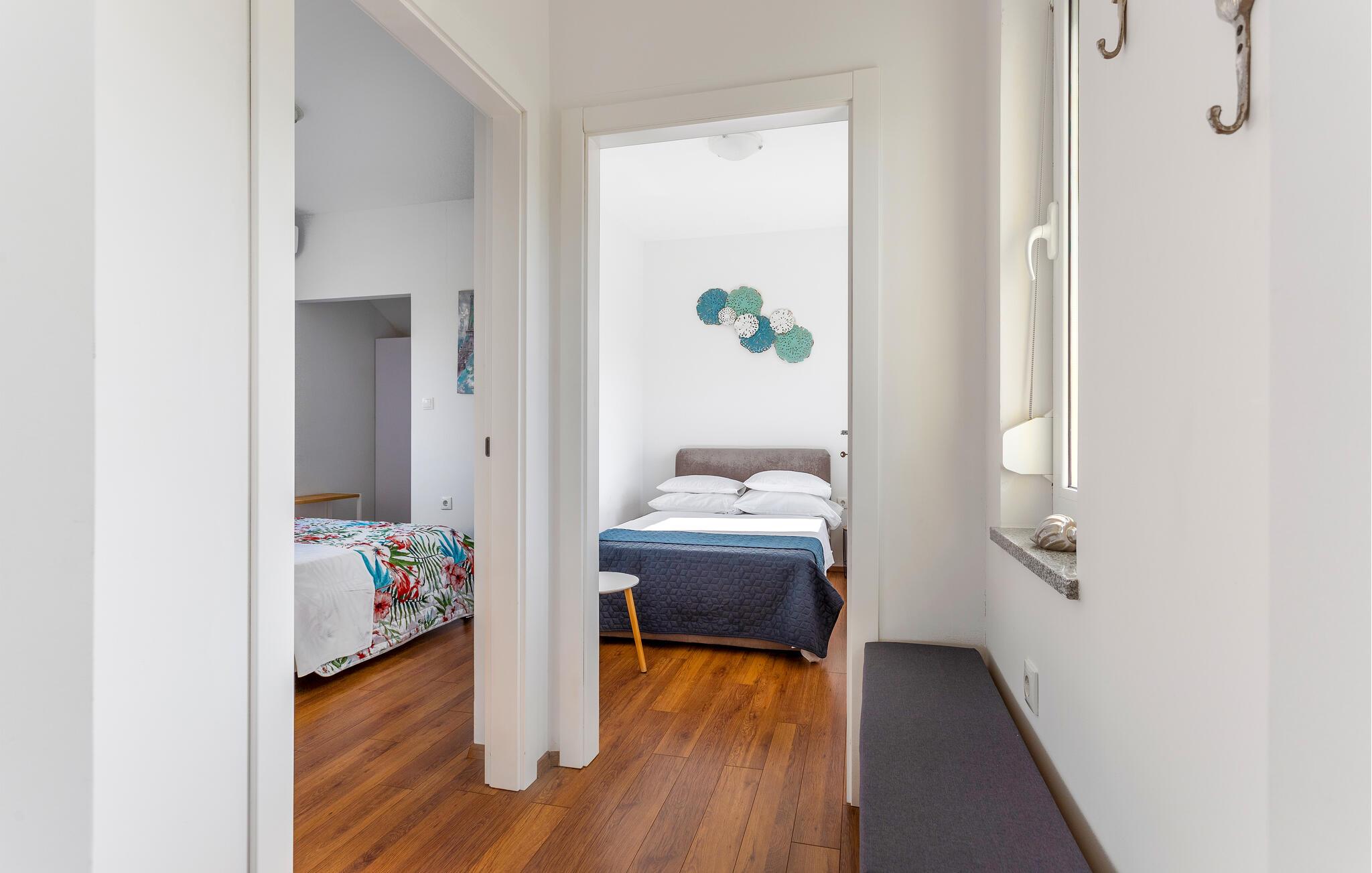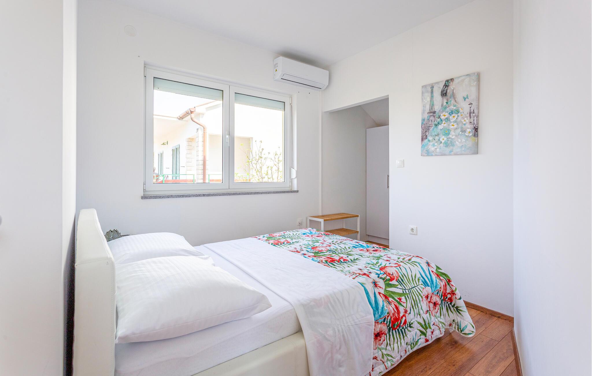 Tag familien under armen og rejs til Kroatien, hvor årets ø-ferie venter jer på Rab i denne veludstyrede lejlighed. Her får I den perfekte base med alt, I behøver til en ferie med strand, fred og masser af hygge med familien. Hvil benene her efter en aktiv feriedag og lad amatørkokkene kræse om livretterne i køkkenet, inden I dækker op til den store middag ved spisebordet. Senere kan I trække over i sofaen, smække fødderne op og smide en god film på tv'et og nyde, at I ikke skal tidligt op dagen efter.