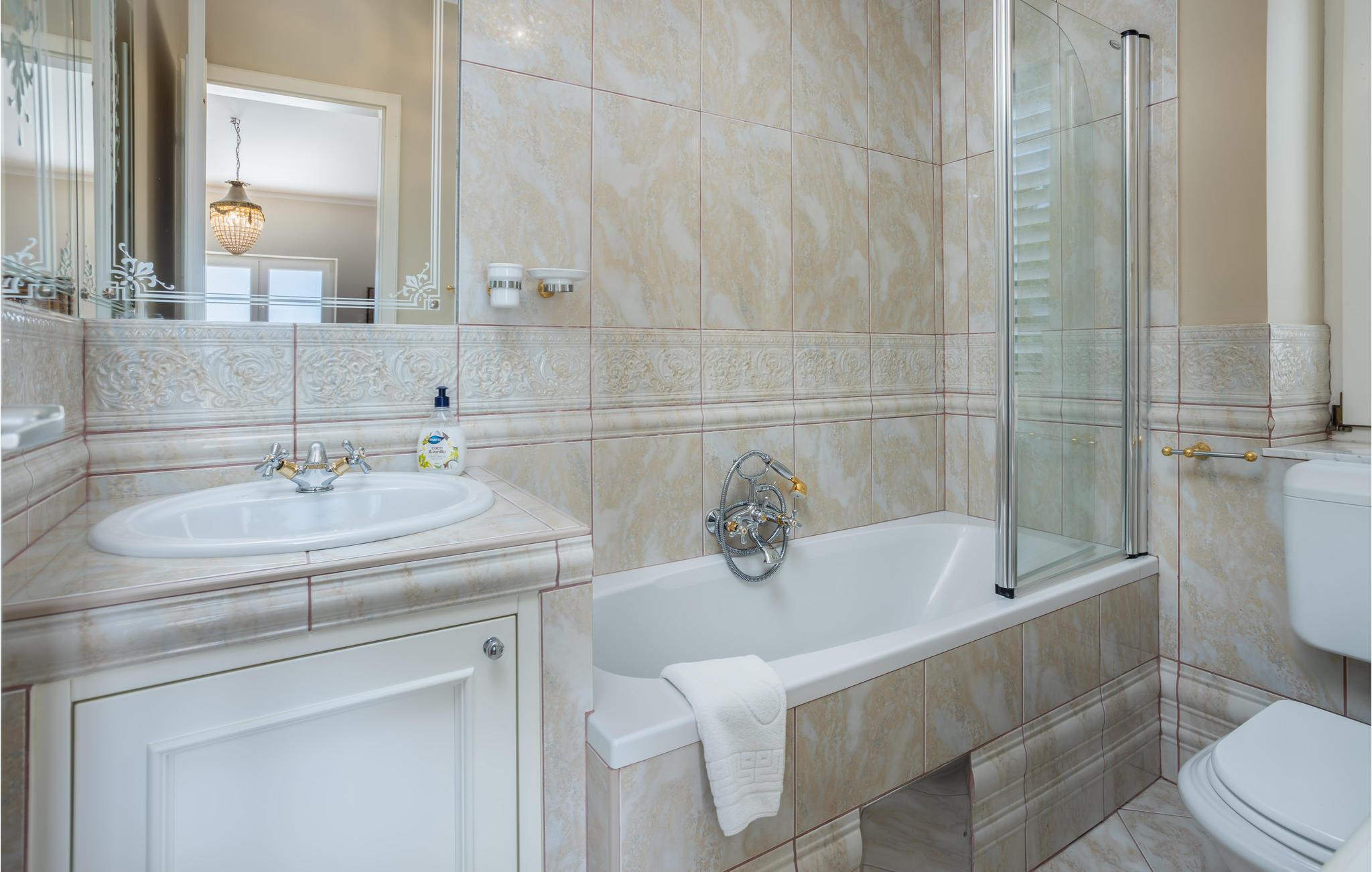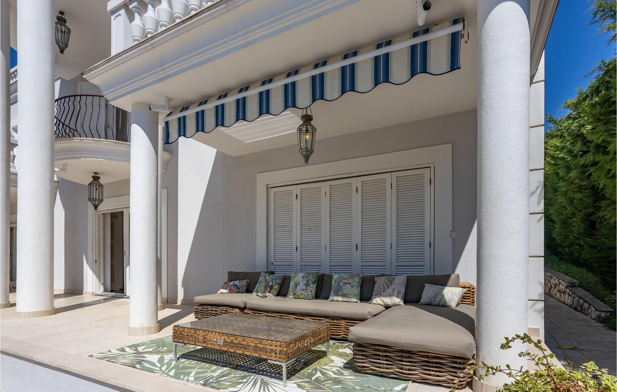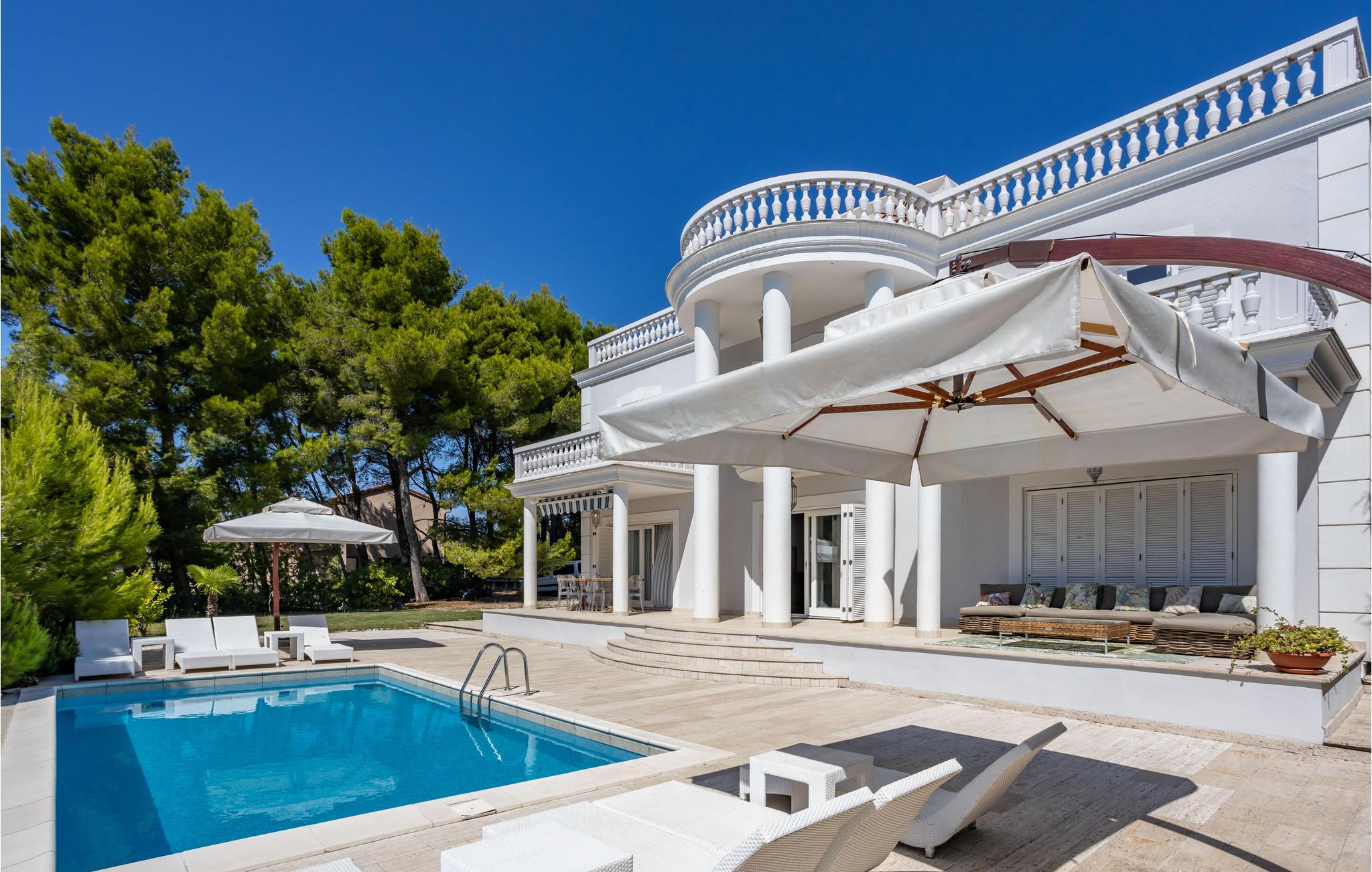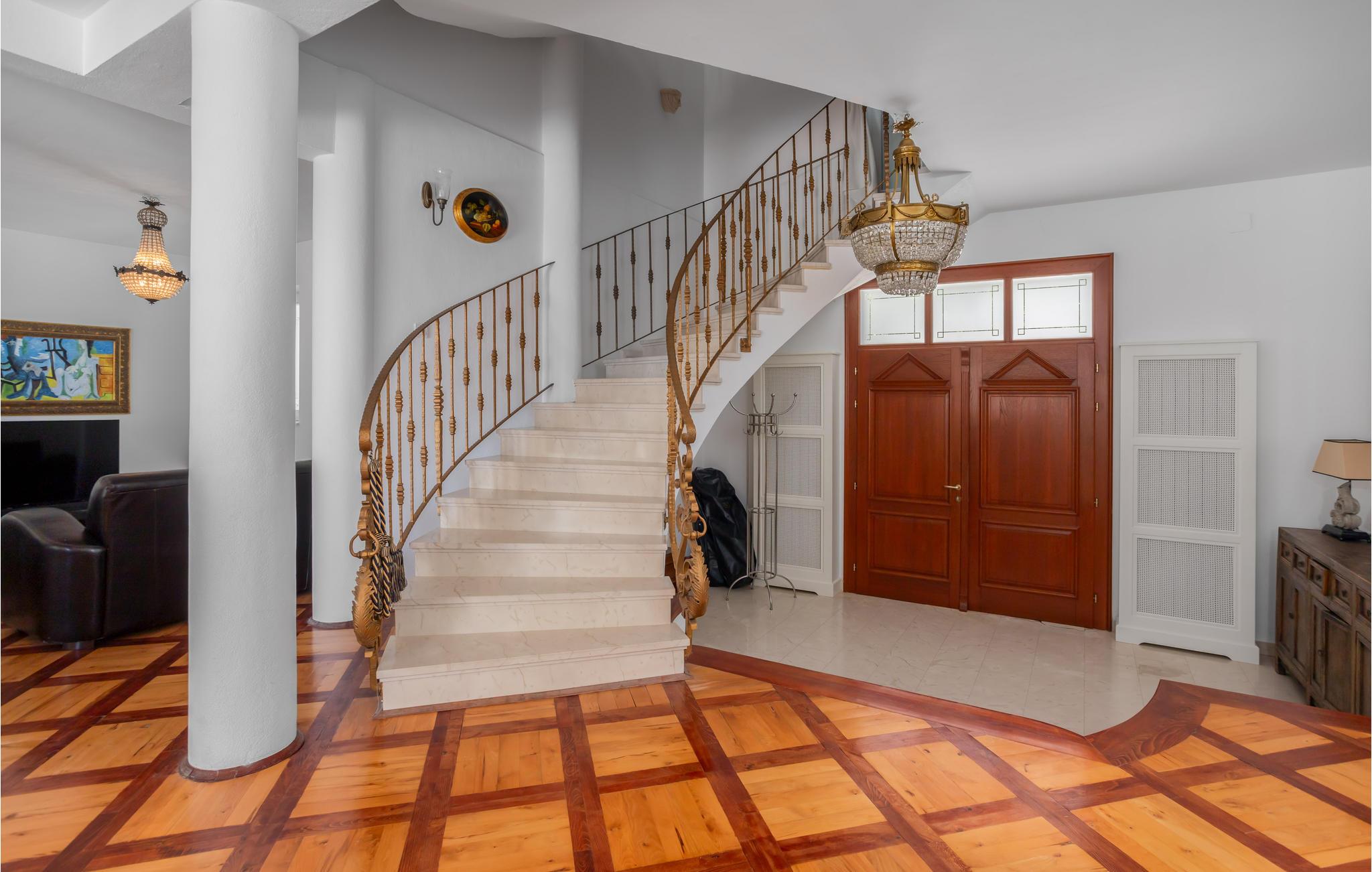 Dette skønne hus, som minder om et palads med balustrader og søjler, ligger på en stor grund. Indvendigt fortsætter dette indtryk på grund af den buede trappe med guldgelændere og overdådige gulve dekoreret med indlæg. Her kan I nyde dagene sammen i fulde drag i en stilfuld stemning. Smagfulde møbler og tiltalende farver fremmer ferieafslapning. Spis som prinser ved det lange spisebord og gør jer godt tilpas om aftenen i det rummelige sofaområde, hvor I kan sidde sammen længe, ??se en film, spille brætspil eller bare hyggesnakke.
