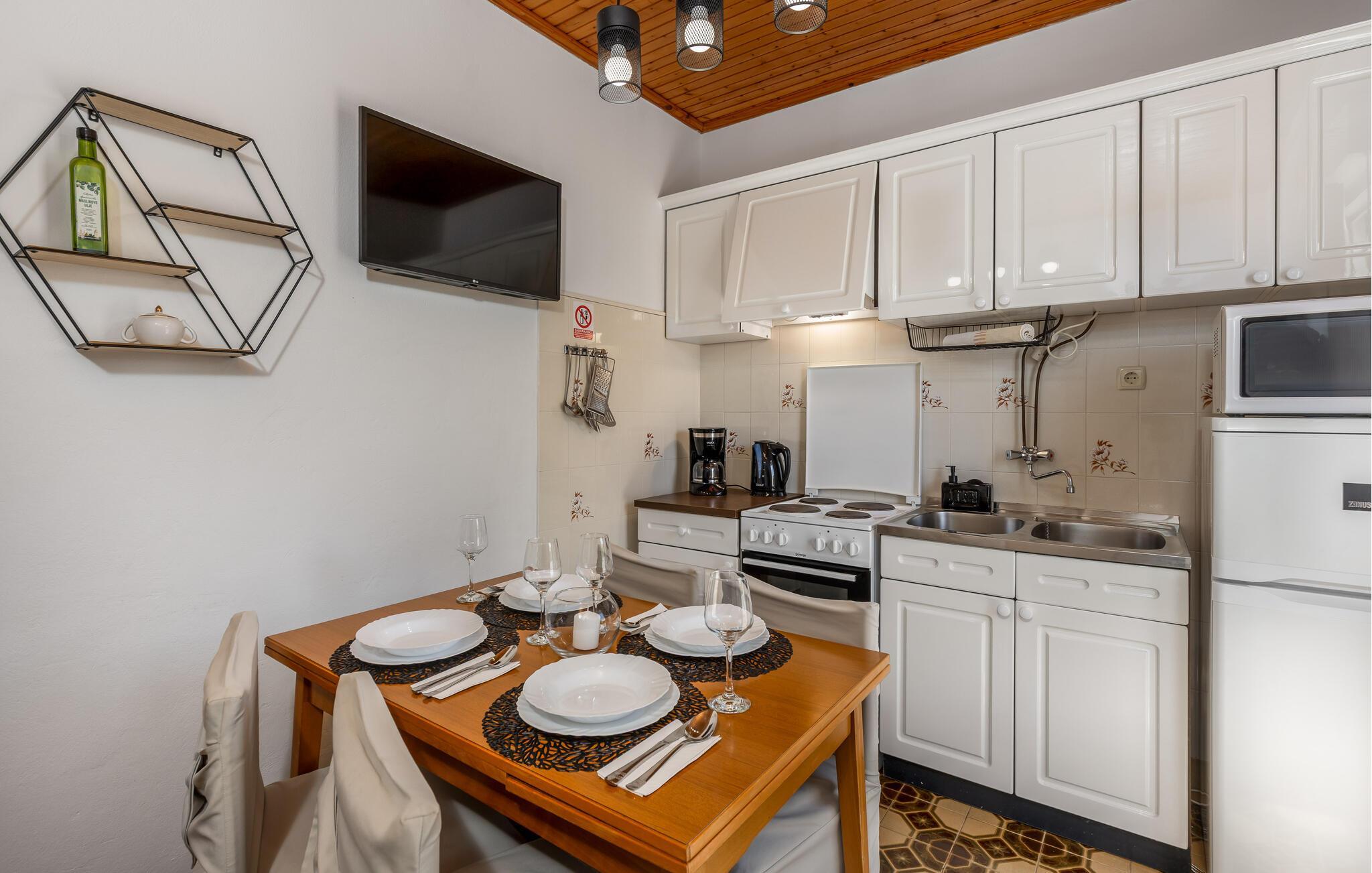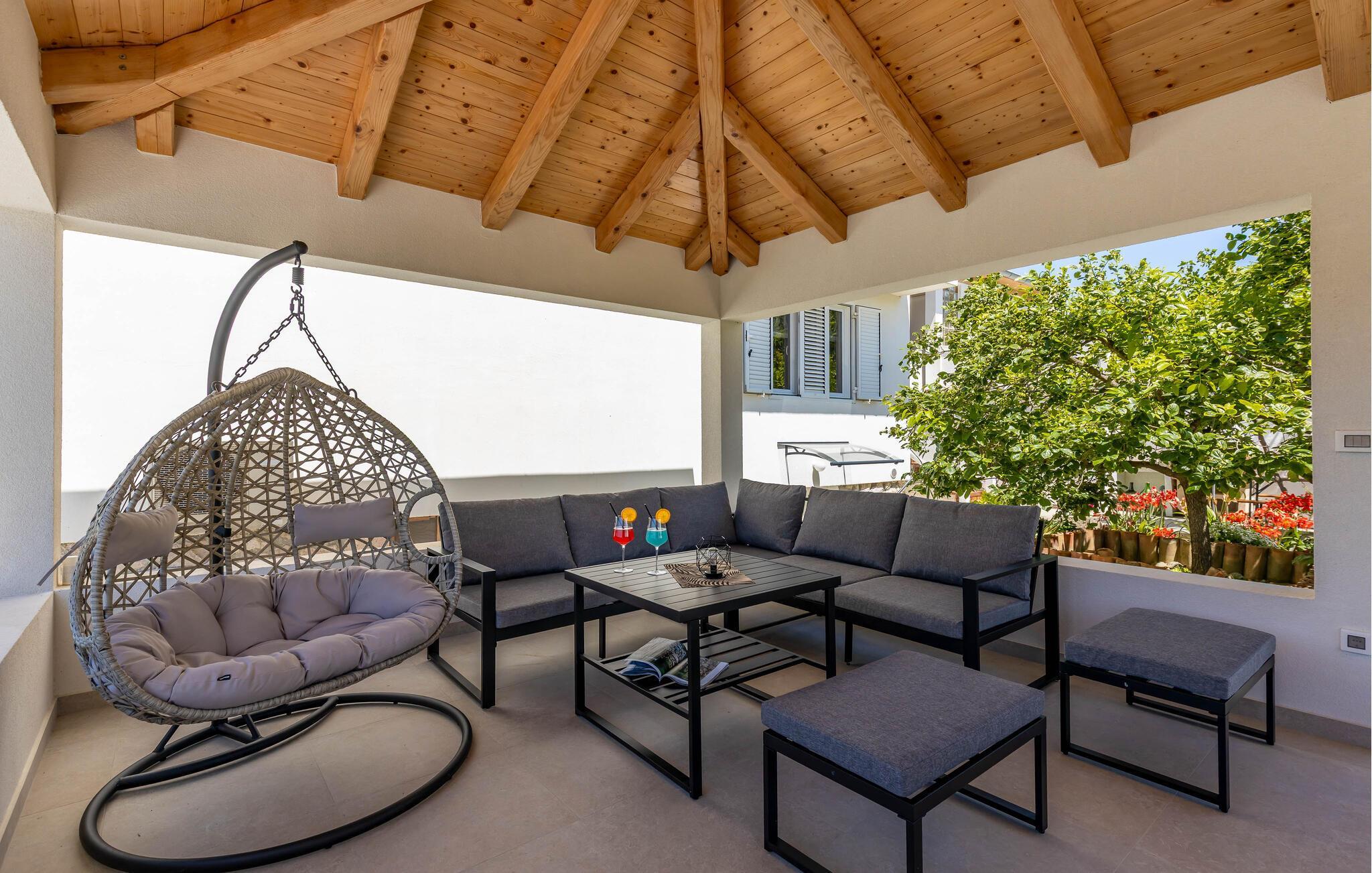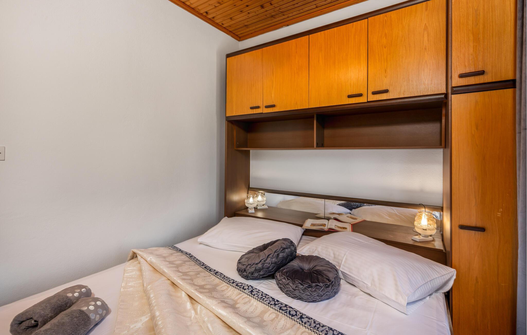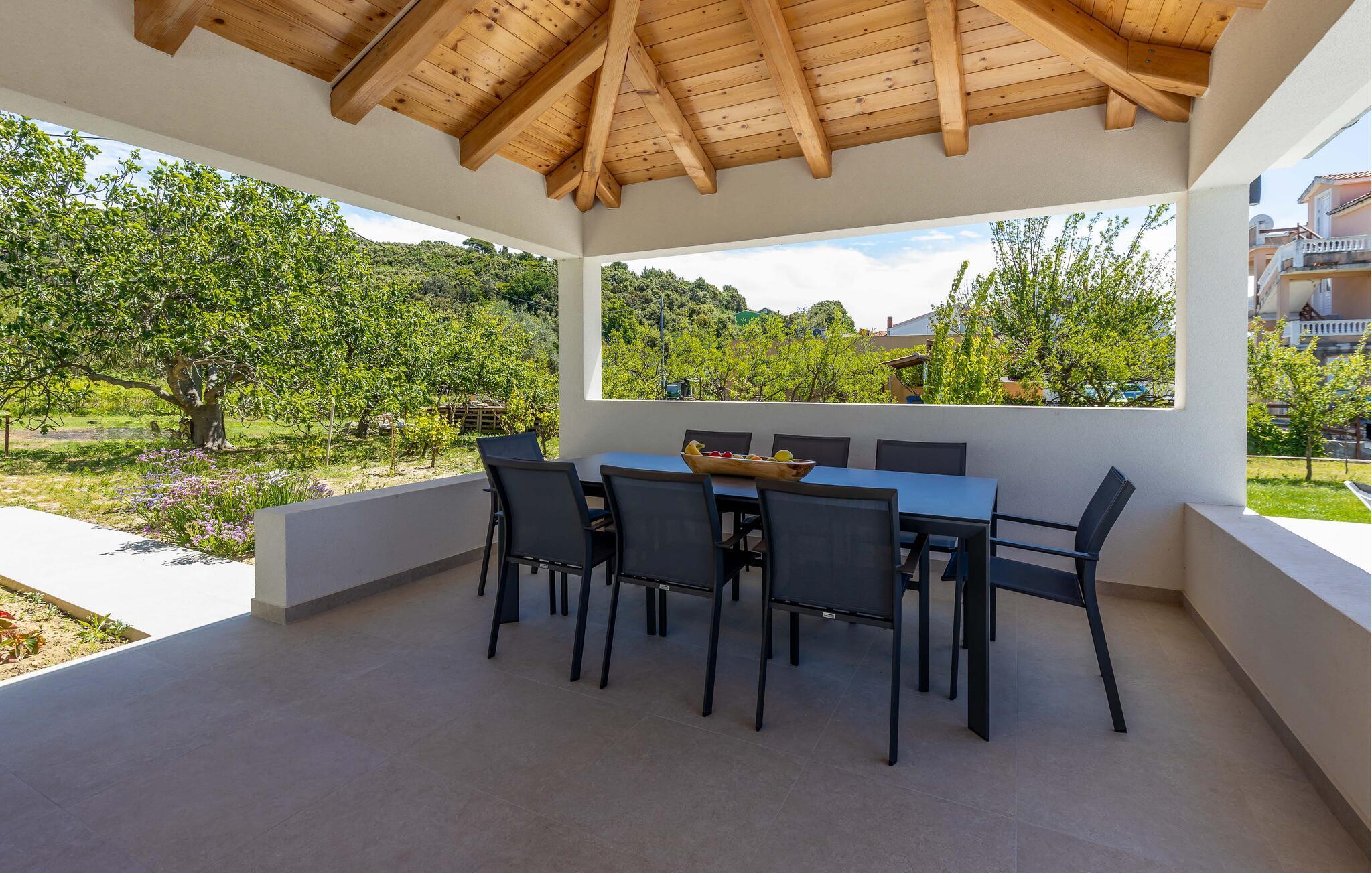 Ved siden af hovedbygningen i et mindre hus, ovenover garagen, ligger denne ferielejlighed. Langt fra yens larm og menneskemasser kan I finde den nødvendige ro og fred her. I kommer sikkert af brug meget af jeres tid under opholdet på den åbne terrasse med grillmulighed. Øen Rab er rig på sand-, kies- og klippestrande med mange underholdningsmuligheder og idrætsfaciliteter. Cykelstier gennem naturreservaterne og langs promenaden ved havet samt forbi klosteret og kirken Sv. Euphemia til byen Rab vil begejstre jer.