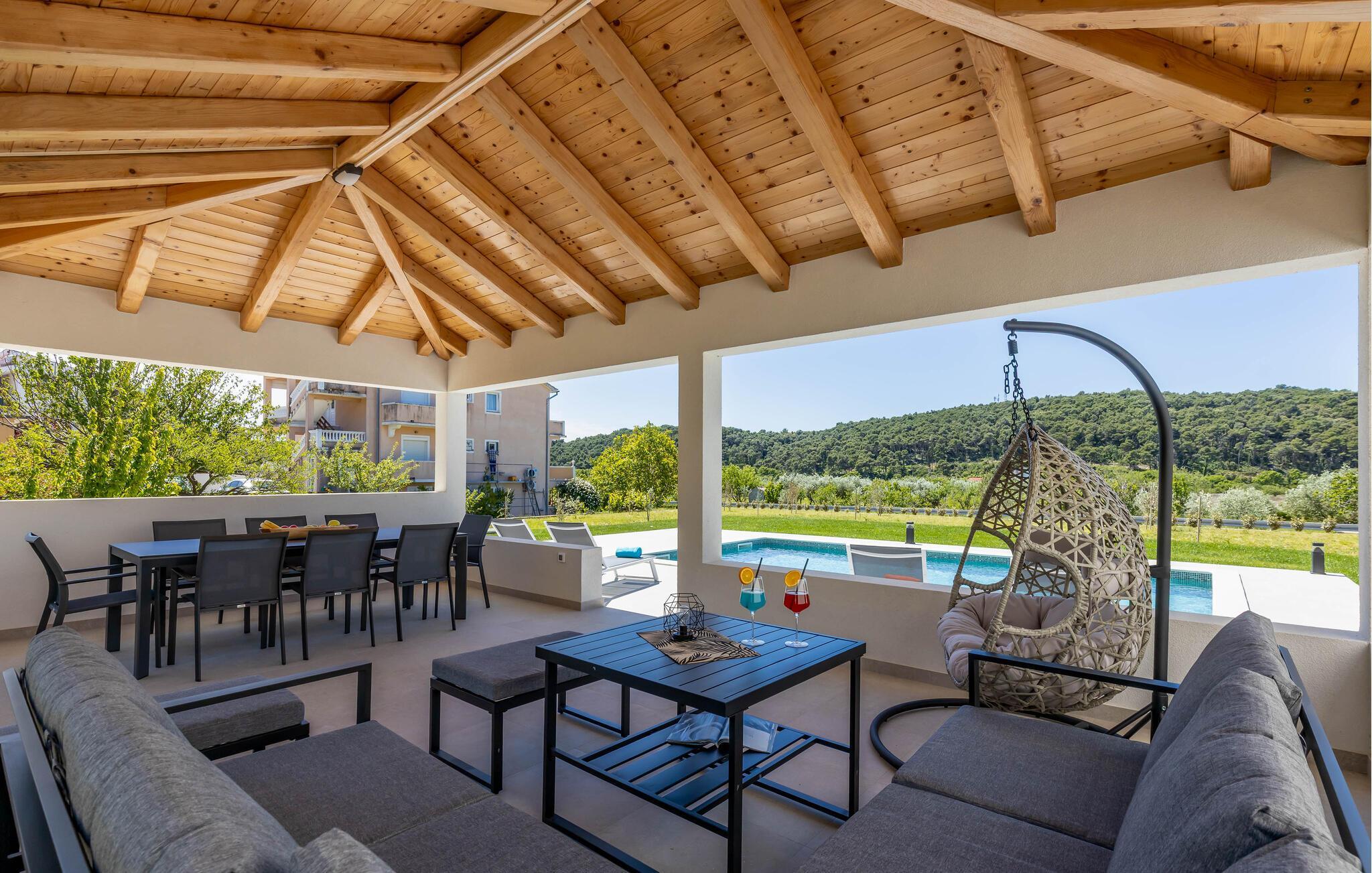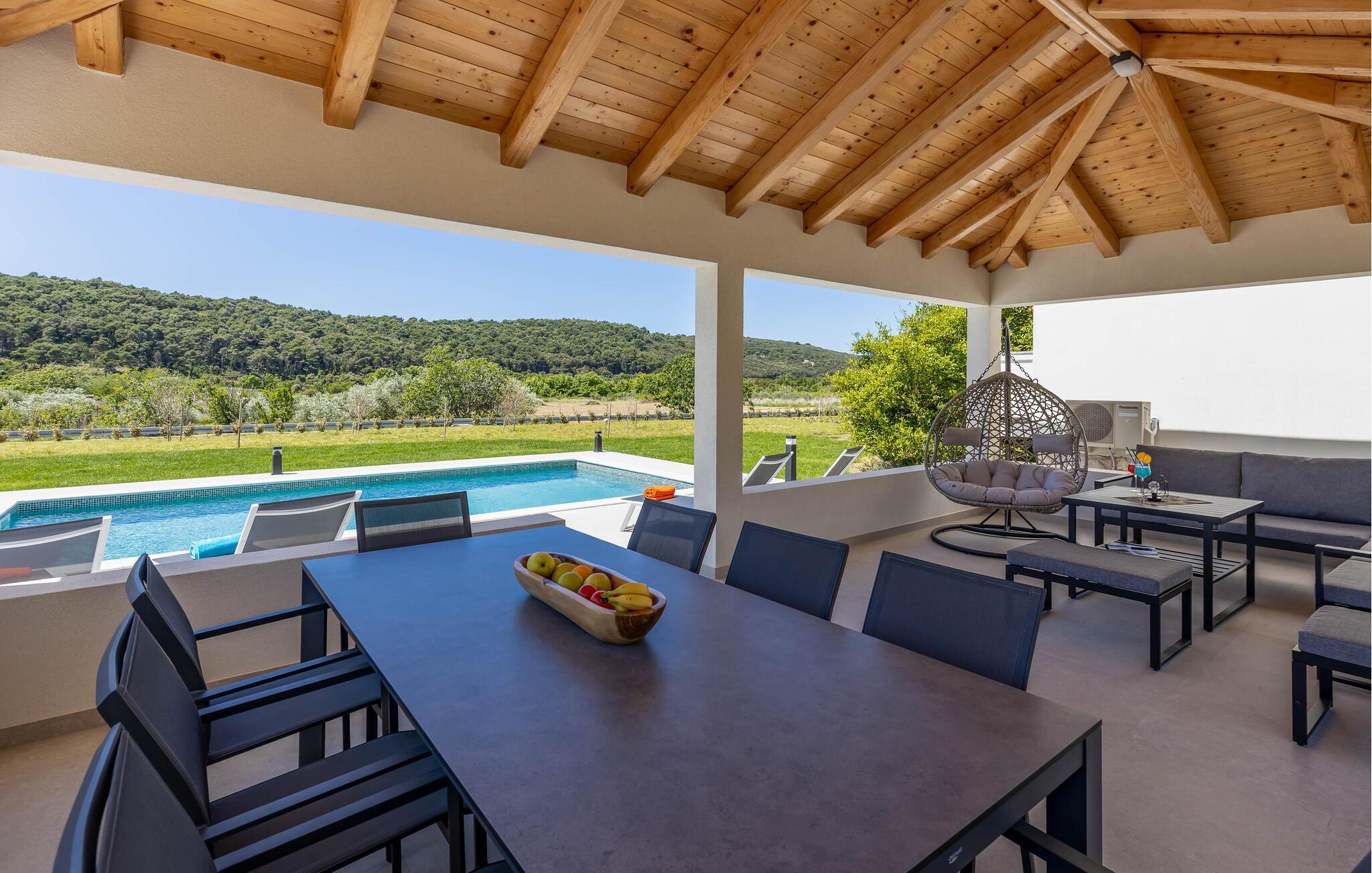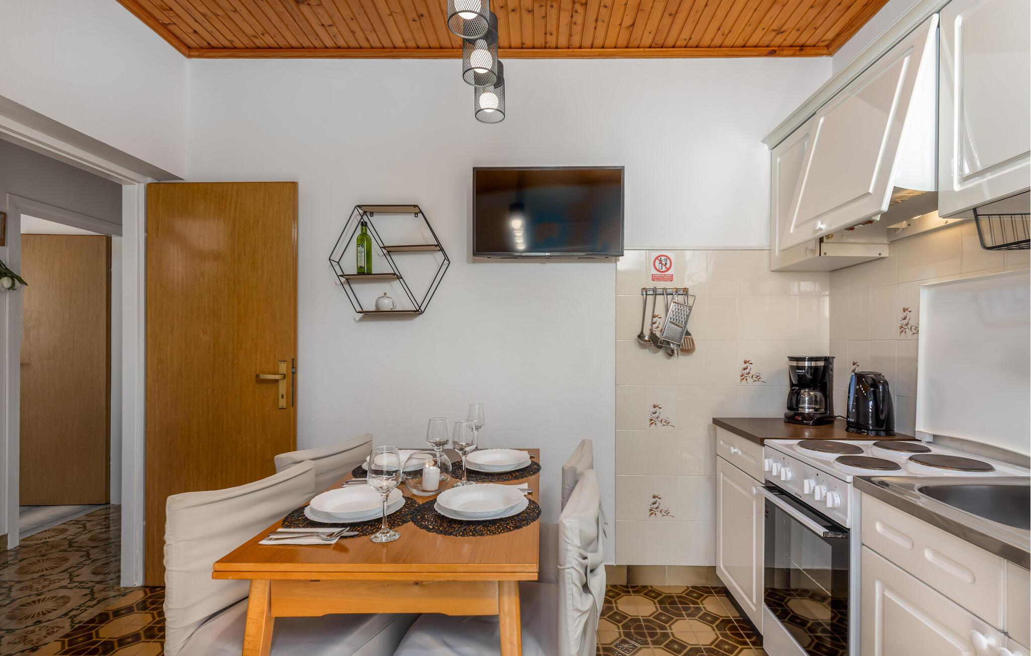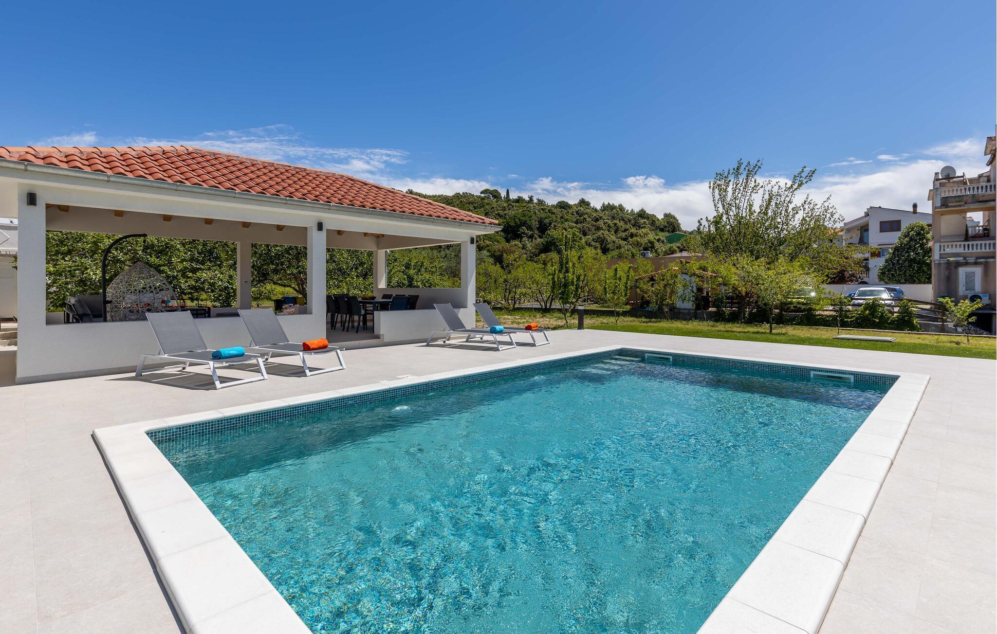 Ved siden af hovedbygningen i et mindre hus, ovenover garagen, ligger denne ferielejlighed. Langt fra yens larm og menneskemasser kan I finde den nødvendige ro og fred her. I kommer sikkert af brug meget af jeres tid under opholdet på den åbne terrasse med grillmulighed. Øen Rab er rig på sand-, kies- og klippestrande med mange underholdningsmuligheder og idrætsfaciliteter. Cykelstier gennem naturreservaterne og langs promenaden ved havet samt forbi klosteret og kirken Sv. Euphemia til byen Rab vil begejstre jer.