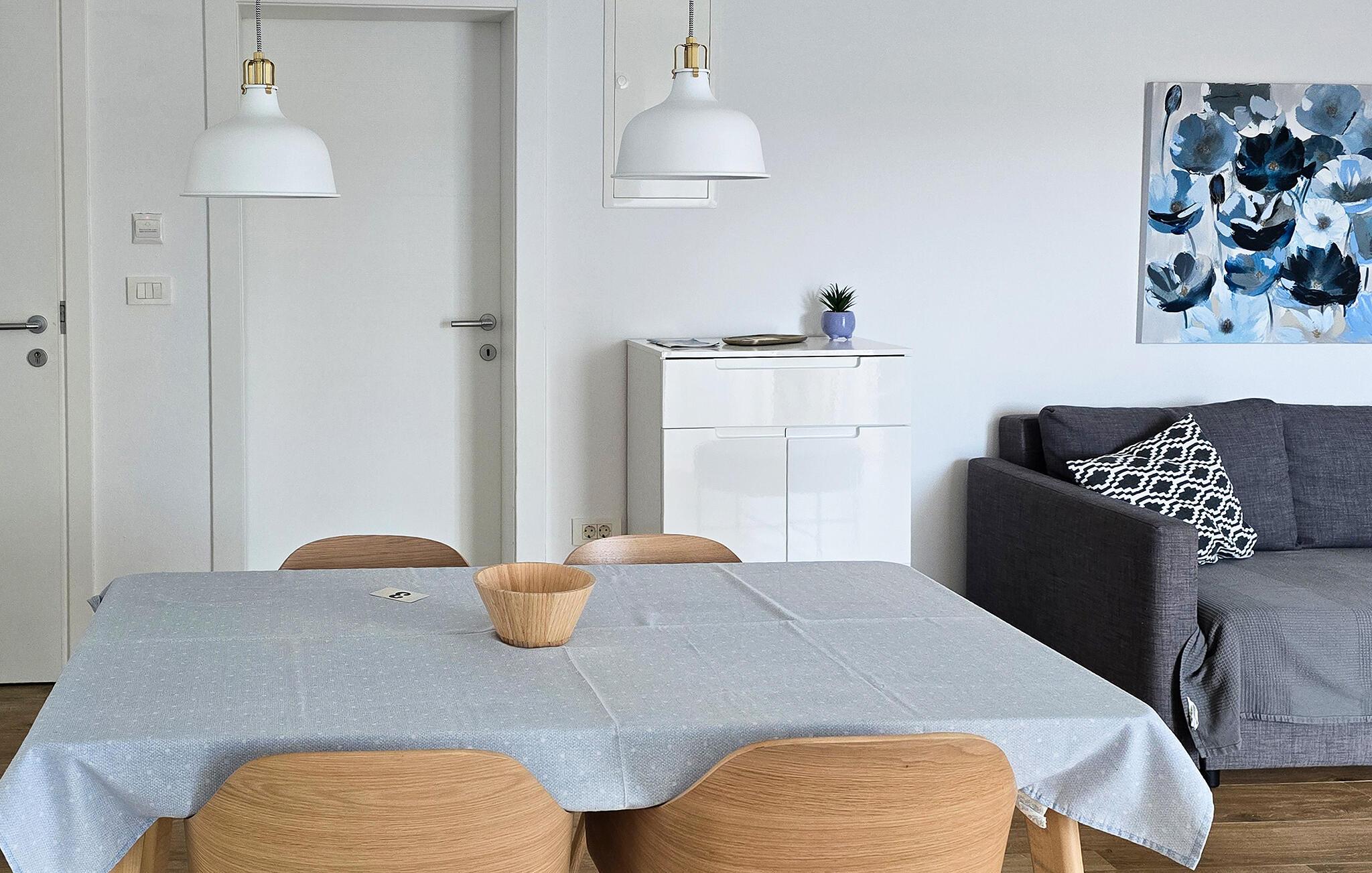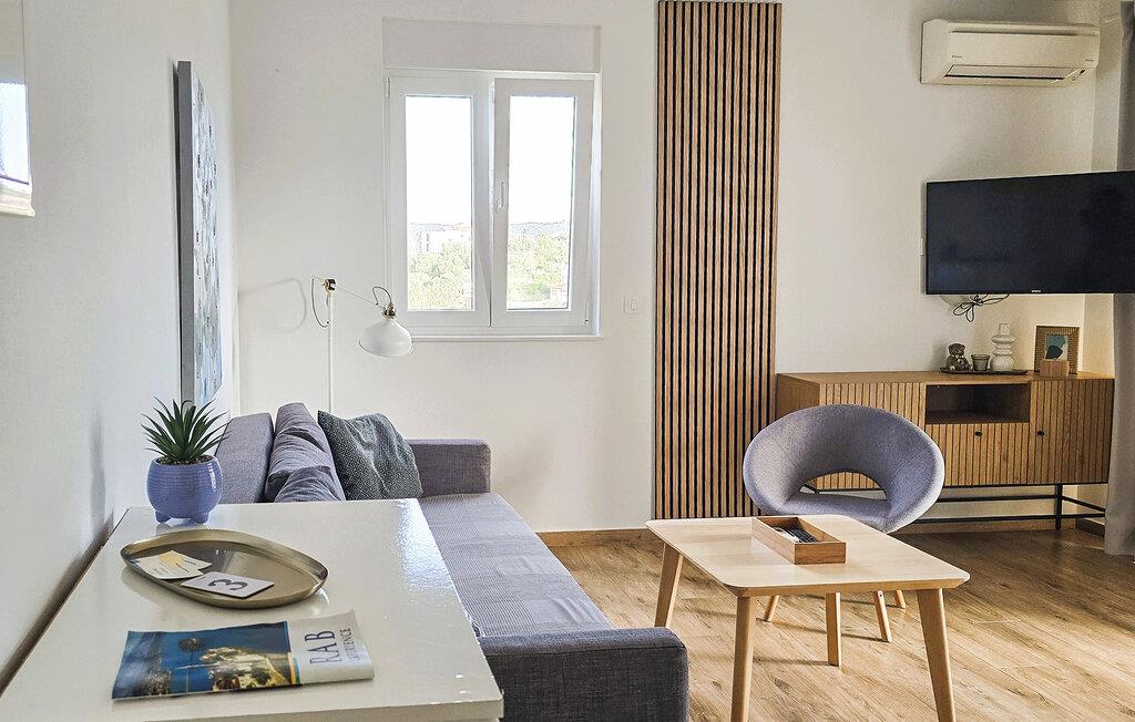 Velkommen til denne lyse og komfortable lejlighed, hvor I kan finde ro i sindet til et afslappende ophold på den charmerende ø Rab. Tilbered middelhavsretter og planlæg jeres aktiviteter i ro og mag. Efter en lang dag kan I streame en film eller slappe af med en god bog.