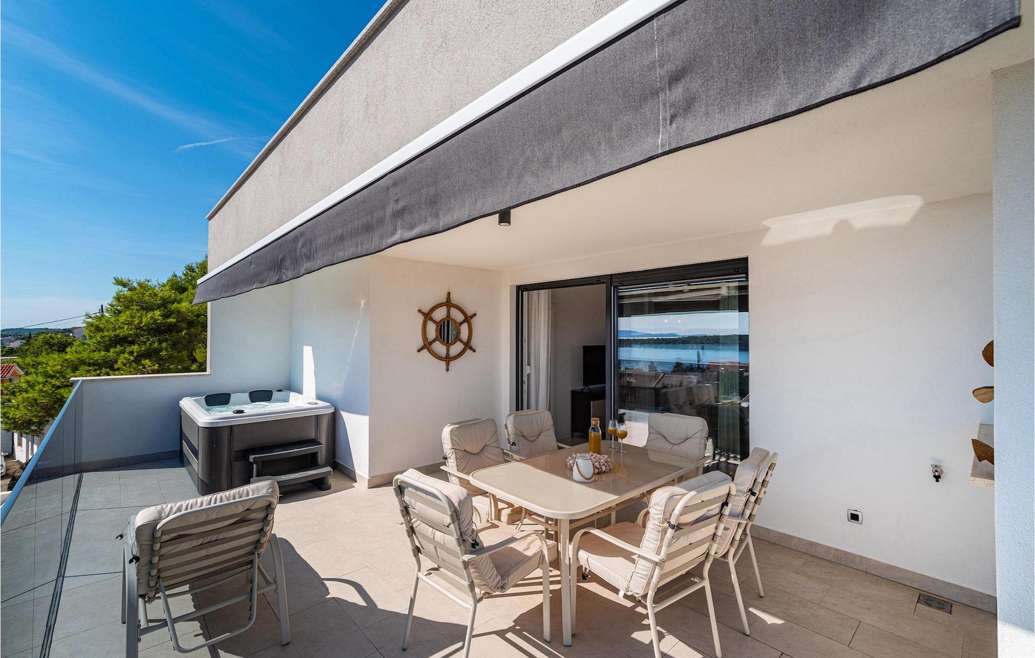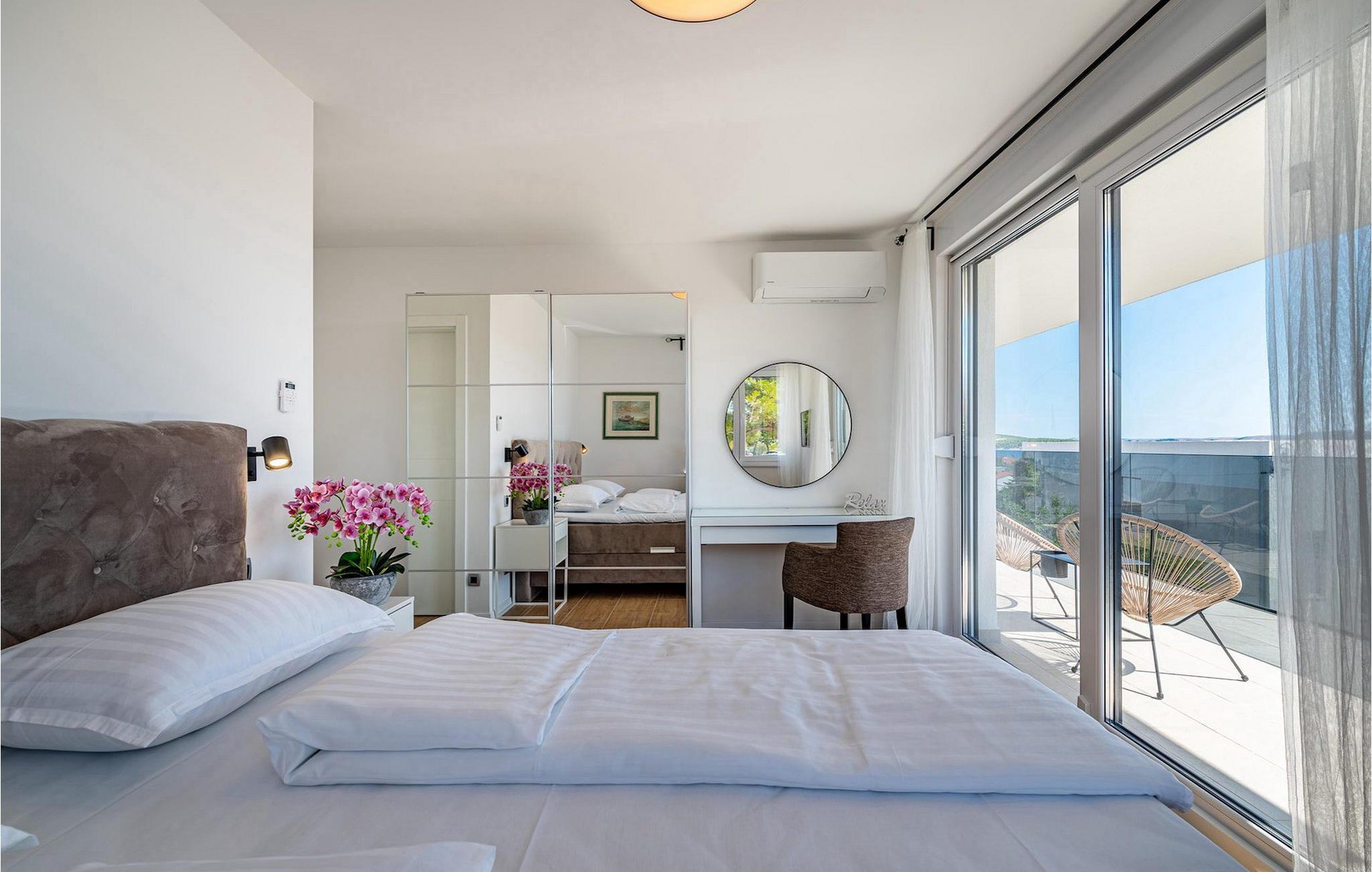 For dem, der kan lide at have ekstra privatliv, har villaen også en penthouse, som er perfekt til en mindre familie. Der er en ekstra stue, et ekstra køkken og spiseplads samt yderligere 2 soveværelser. Et af soveværelserne har en dobbeltseng og det andet har to enkeltsenge. Men dette er ikke nogen almindelig penthouse, da det også byder på en fantastisk udsigt over omgivelserne og den nærliggende strand fra din egen jacuzzi. Vent ikke for længe og bestil dit perfekte feriehus!Villa Bura Rab ligger på øen Rab. Denne ø, og øens "hovedstad", også kaldet Rab, har en historie, der kan spores fra den førromerske æra til i dag. Hovedstaden blev bosat af illyrere i 350 f.Kr. I 10 f.Kr. erklærede den romerske kejser Octavian Augustus byen Rab for en kommune og dermed uafhængig. I dag er øen Rab også kendt som "den glade Rab" - Felix Arba. Mens du slentrer gennem byen, kan du stadig mærke fortidens ånd. Du kan beundre smukke paladser fra gotikken og renæssancen, eller udforske de glatte middelaldergader og stræder, som er fulde af liv. Felix Arba er ikke det eneste navn, Rab stolt bærer - der er også kaldenavnet "smaragdøen", og det med god grund. Rab er en af de mest skovklædte og grønneste øer i Adriaterhavet. På mere end 100 km vandre- og cykelstier kan du opdage dens alsidige flora og fauna samt nyde den fantastiske panoramaudsigt. En anden ting, Rab er berømt for, er dens hvide sten, som blev brugt til at bygge huse, gader, stræder osv. Mens du opholder dig på øen, skal du også sørge for at prøve "Rapska torta" - en unik kage på en unik ø!