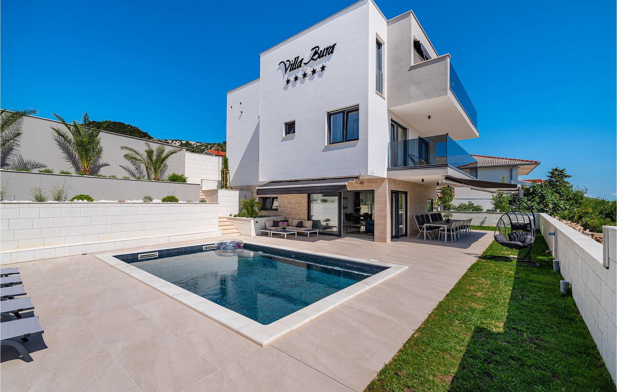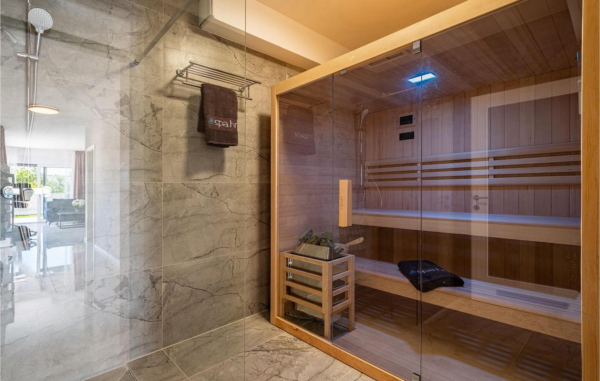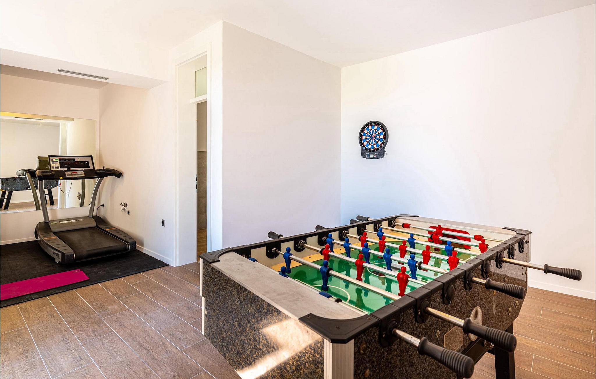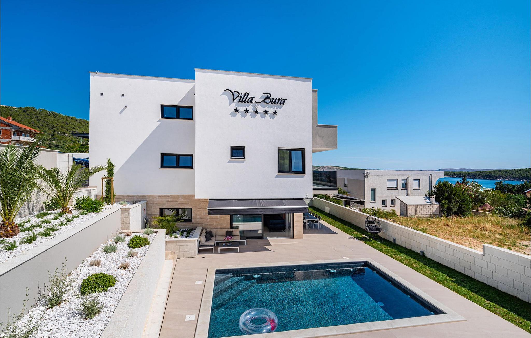 Villa Bura Rab er en fantastisk, moderne villa på den smukke Kvarner-ø Rab. Denne moderne, nye ejendom blev bygget for at gøre alle dine ferieønsker til virkelighed! Villaen har i alt 3 etager, hvilket giver mere end nok plads til 14 gæster, hvilket er villaens maksimale kapacitet. I stueetagen er der en rummelig stue i forbindelse med det fuldt udstyrede køkken samt til spisepladsen. I stueetagen er der desuden soveværelse med eget badeværelse, samt opholdsstue/privat fitnessrum. Her kan du enten træne eller, hvis det ikke er din idé om en ferie, tilbringe lidt afslappende tid på at spille bordfodbold. Stueetagen har også en særlig forkælelse - en privat sauna med en ekstra bruser
