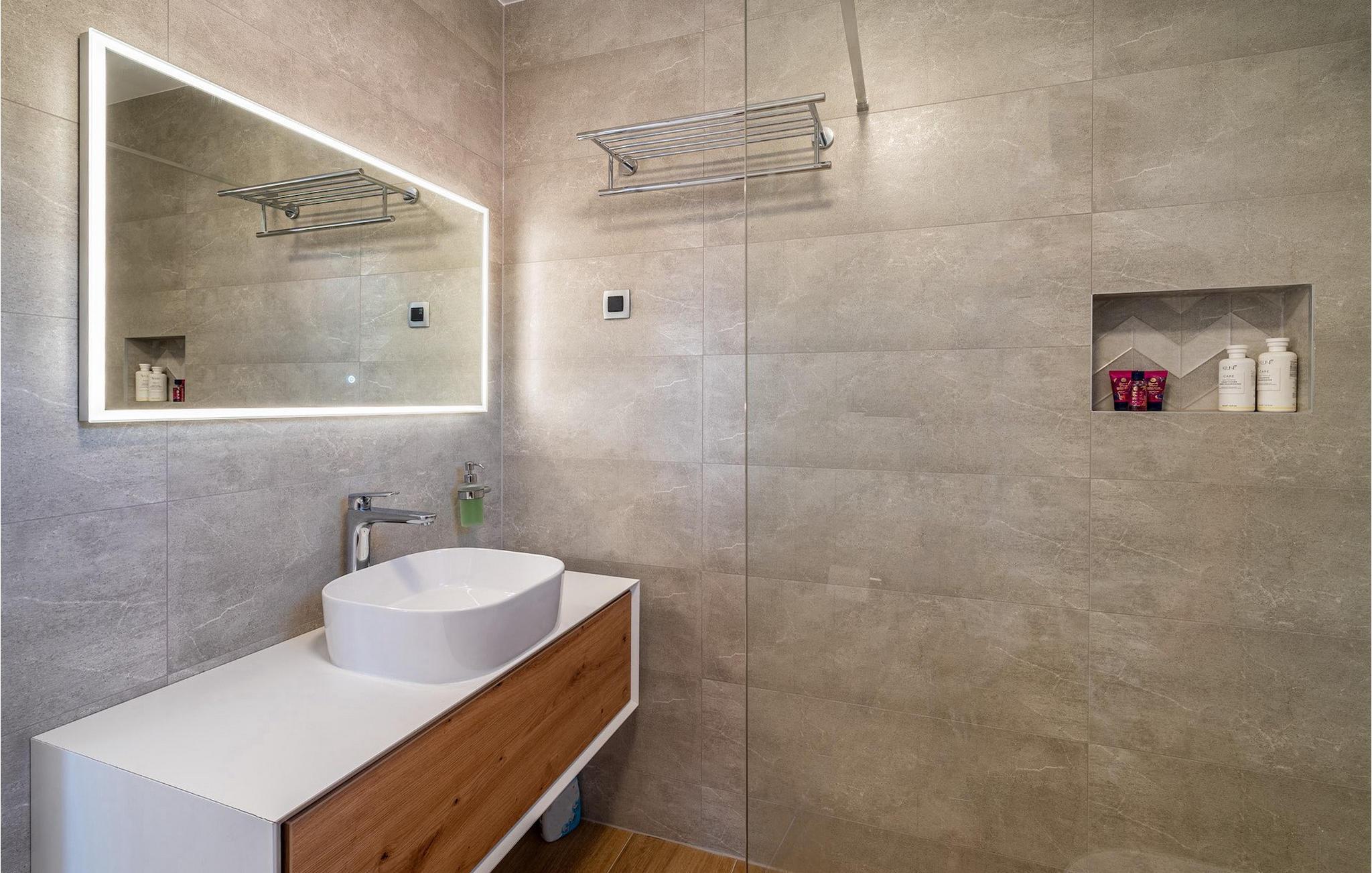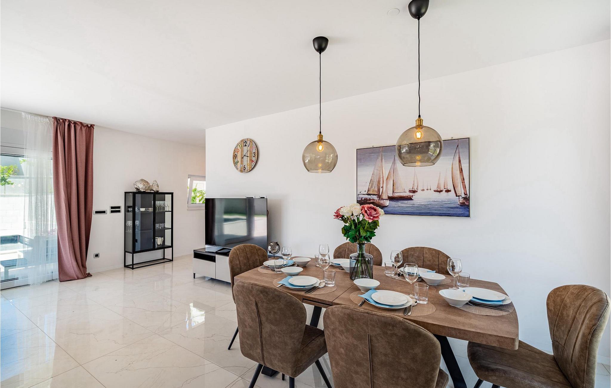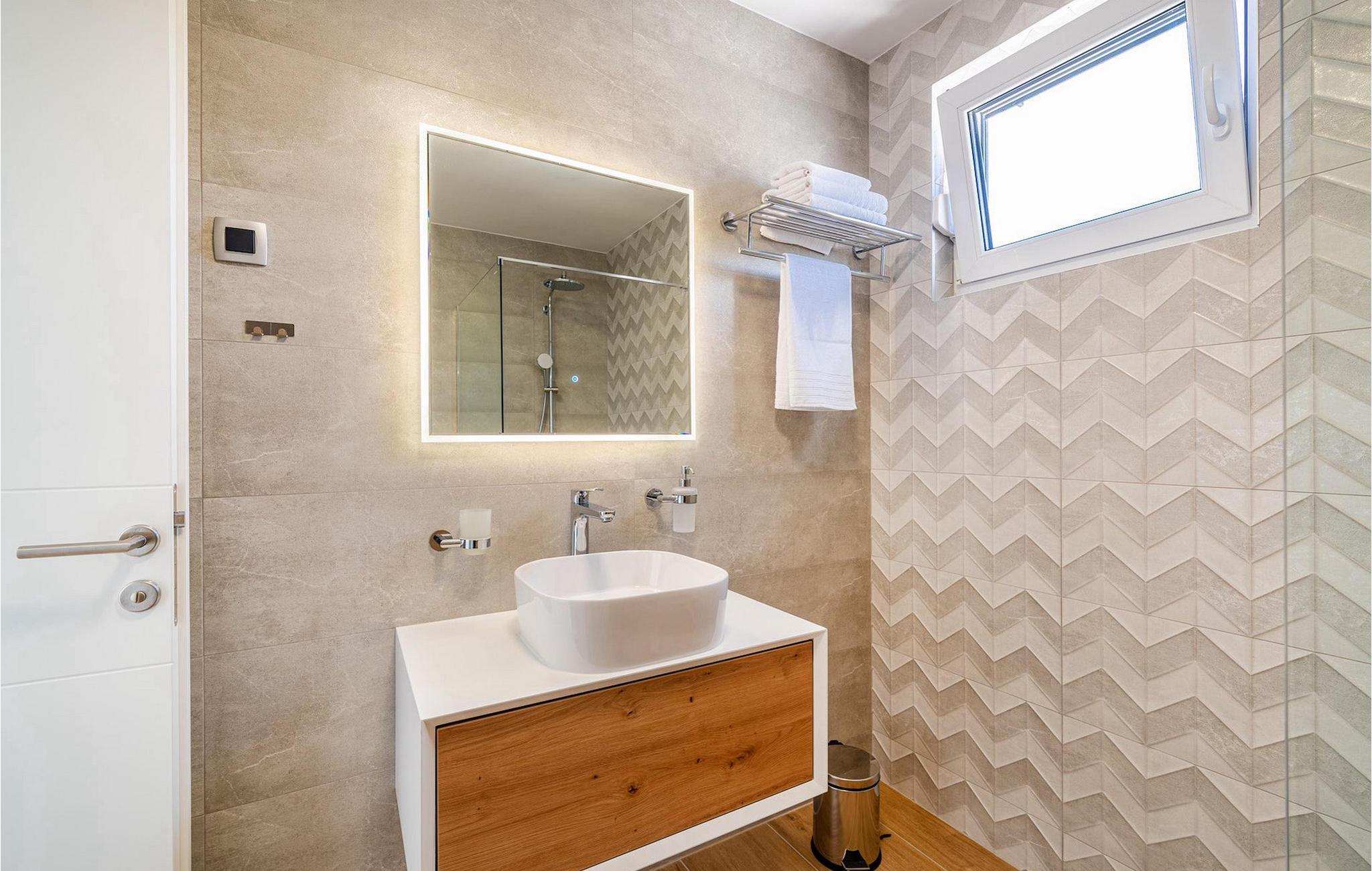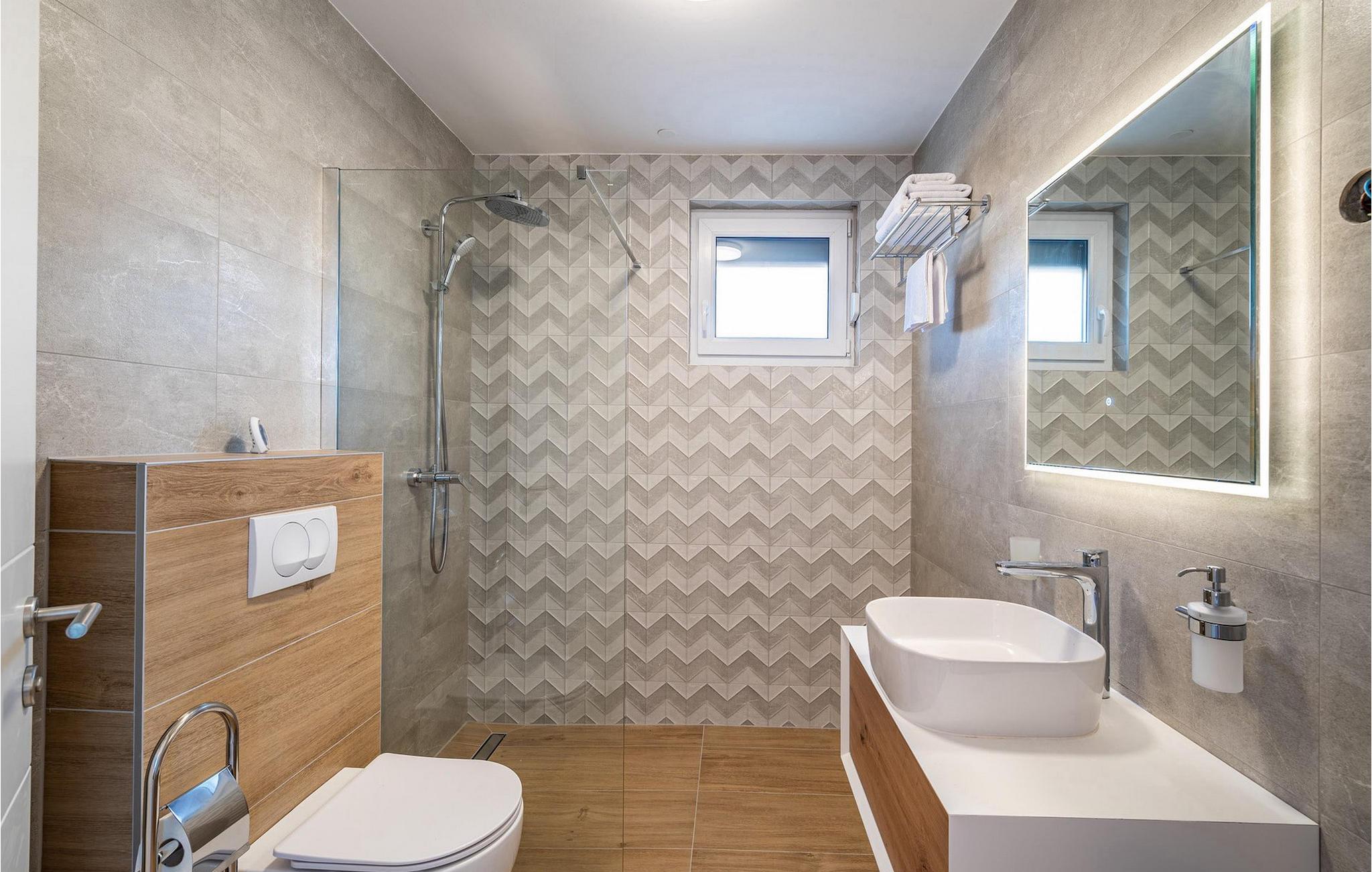Villa Bura Rab er en fantastisk, moderne villa på den smukke Kvarner-ø Rab. Denne moderne, nye ejendom blev bygget for at gøre alle dine ferieønsker til virkelighed! Villaen har i alt 3 etager, hvilket giver mere end nok plads til 14 gæster, hvilket er villaens maksimale kapacitet. I stueetagen er der en rummelig stue i forbindelse med det fuldt udstyrede køkken samt til spisepladsen. I stueetagen er der desuden soveværelse med eget badeværelse, samt opholdsstue/privat fitnessrum. Her kan du enten træne eller, hvis det ikke er din idé om en ferie, tilbringe lidt afslappende tid på at spille bordfodbold. Stueetagen har også en særlig forkælelse - en privat sauna med en ekstra bruser