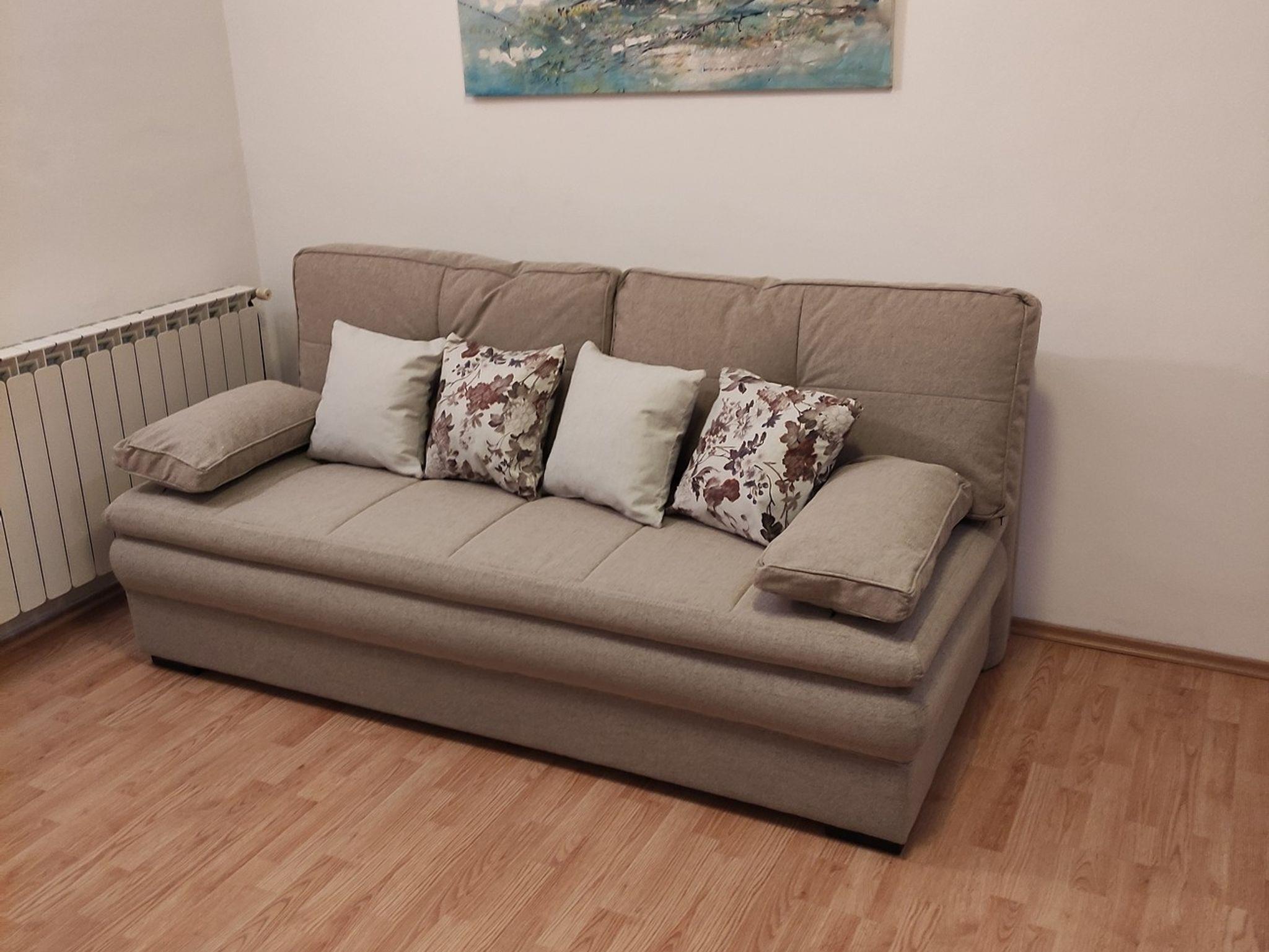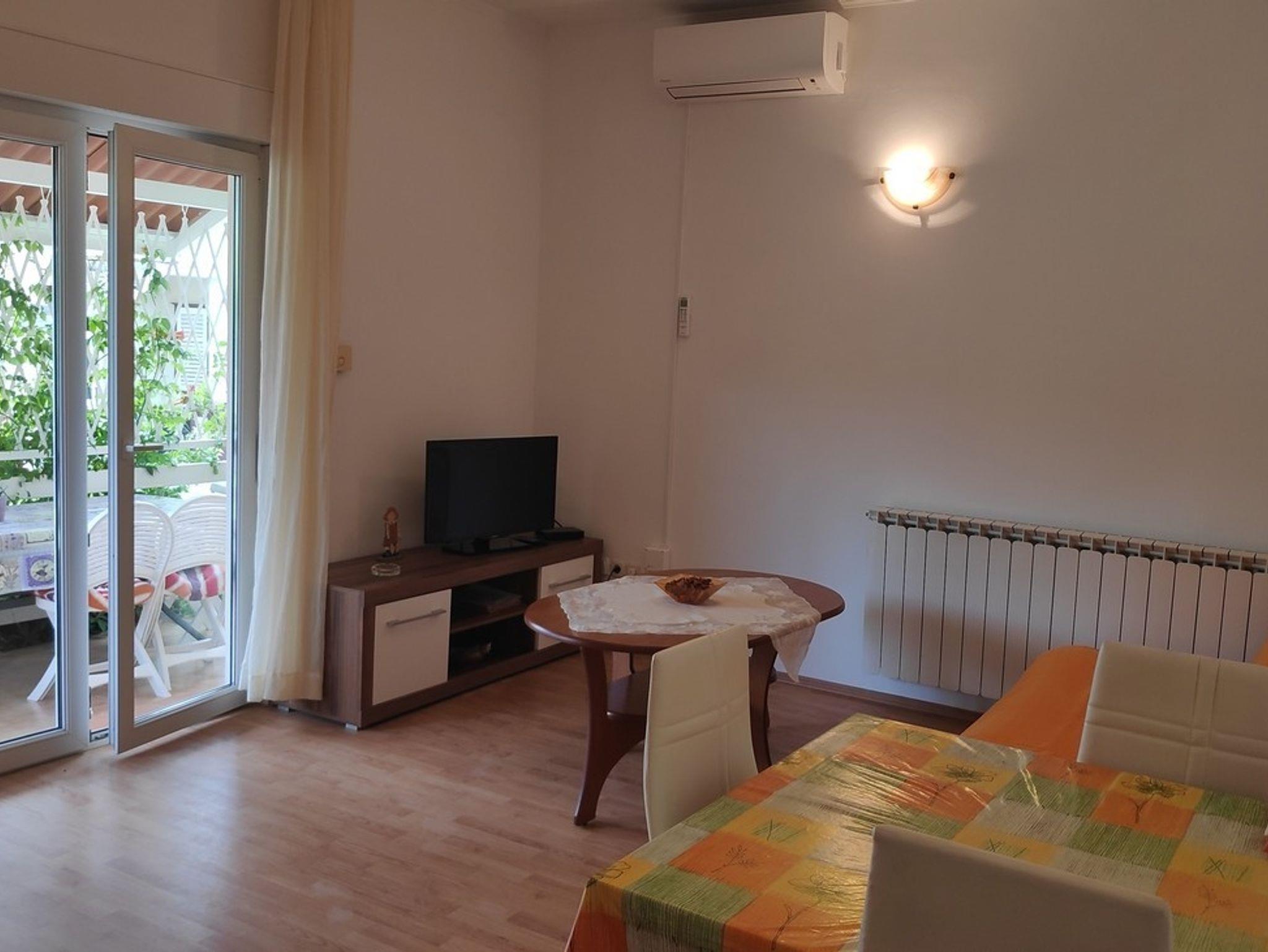 Ferienwohnung bietet Platz für 4 Gäste. Die Betten sind in Schlafzimmern, die es 1 gibt, und in Wohnzimmer, innerhalb einer Gesamtfläche von 35m2, angeordnet. Die Gäste haben eine eigene Terrasse zur Verfügung, auf der sie in warmen Sommernächten genießen können. Es ist erlaubt, Speisen auf dem Gemeinschafts-Grill vorzubereiten. In der Unterkunftseinheit besteht die Möglichkeit des Mitbringens von Haustieren gegen Aufpreis. IM PREIS INBEGRIFFEN: Kurtaxe, Endreinigung, Klimatisierung, Parkplatz, Internet, Fahrrad, Bügeleisen, Bügelbrett, Föhn. VERBINDLICHE ZUSÄTZLICHE KOSTEN: Aufzahlung für Kurzaufenthalte (prozentualer Zuschlag pro Nächtigungsanzahl: 30% - 1, 20% - 2, 10% - 3). UNVERBINDLICHE ZUSÄTZLICHE KOSTEN: Wäschewaschen (2,00 € Waschen), Bootsanlegeplatz (10,00 € pro Nacht), Haustiere (8,00 € pro Nacht). Die Verfügbarkeit zusätzlicher Dienstleistungen in Ihrem reservierten Termin und die Preise derselben (falls nicht aufgeführt) müssen im Voraus überprüft werden. Zusätzliche Dienstleistungen die in der Zahlungsaufforderung nicht aufgeführt sind werden direkt beim Vermieter bezahlt, angenommen der Gast nutzt auch diese. Ermäßigung auf den Grundpreis: Gratistag 21=19 (bei einem Aufenthalt von 21 Tagen oder mehr erhalten Sie 2 Gratistage für den Aufenthalt bis 31.12.26).