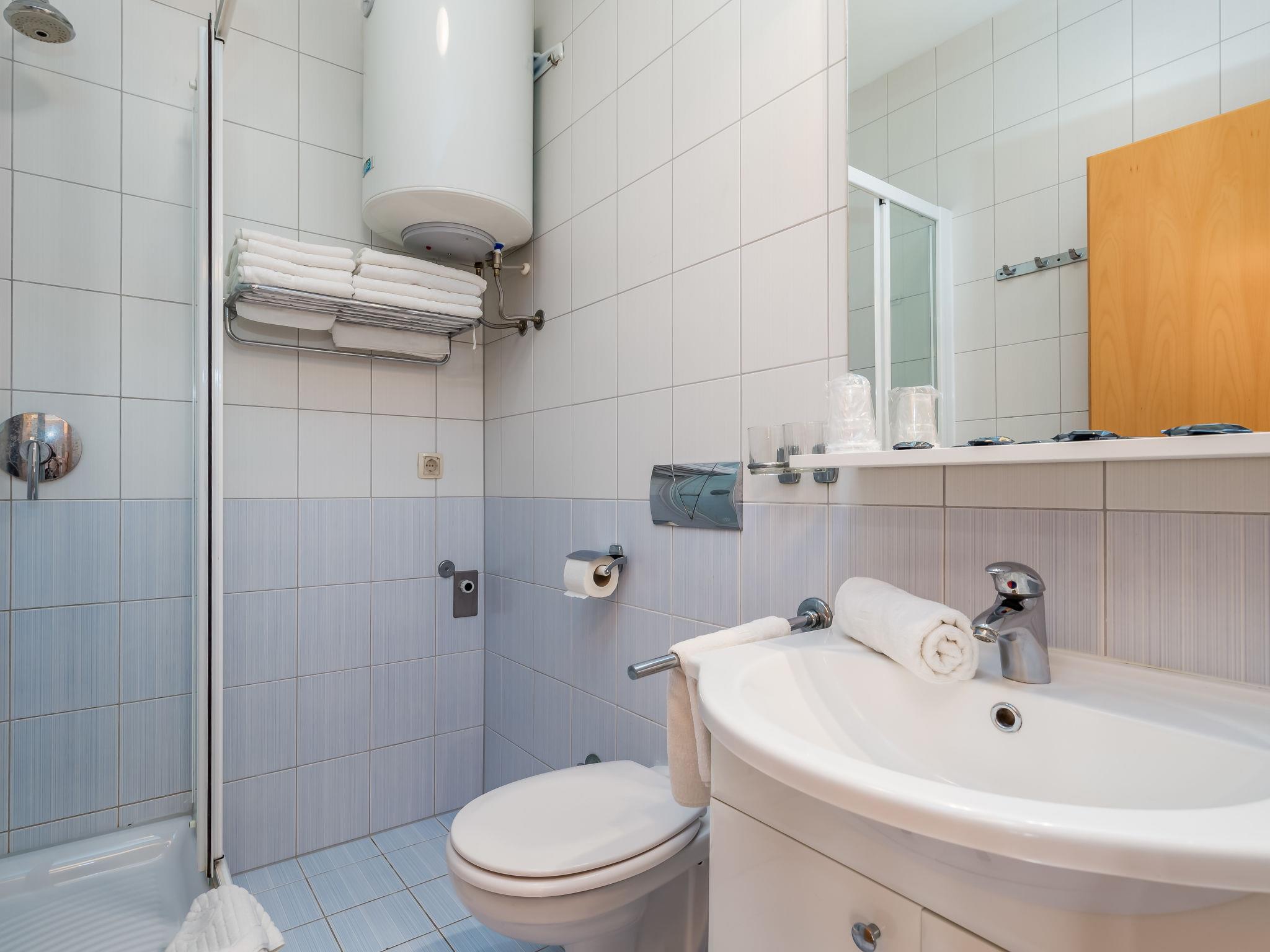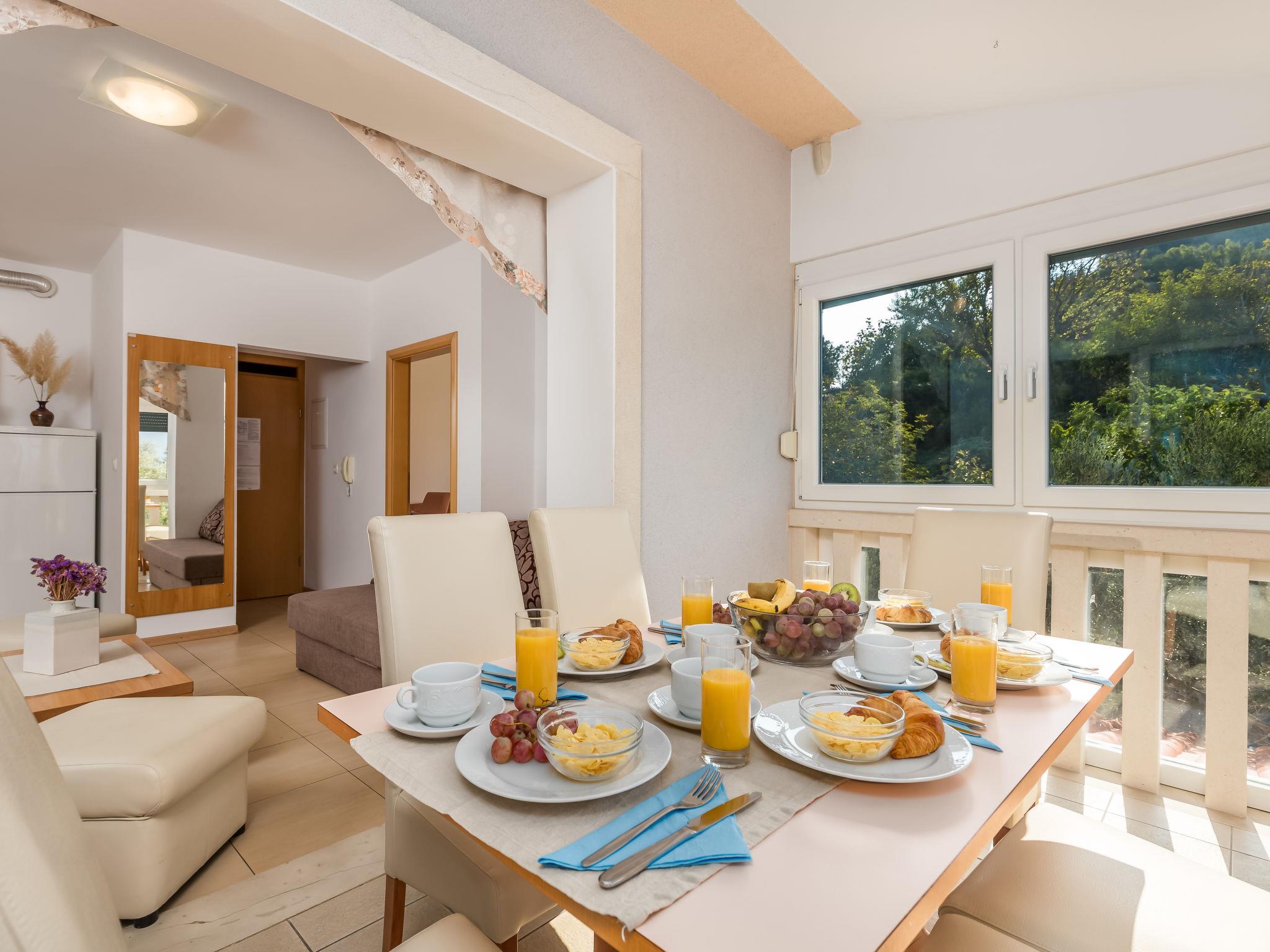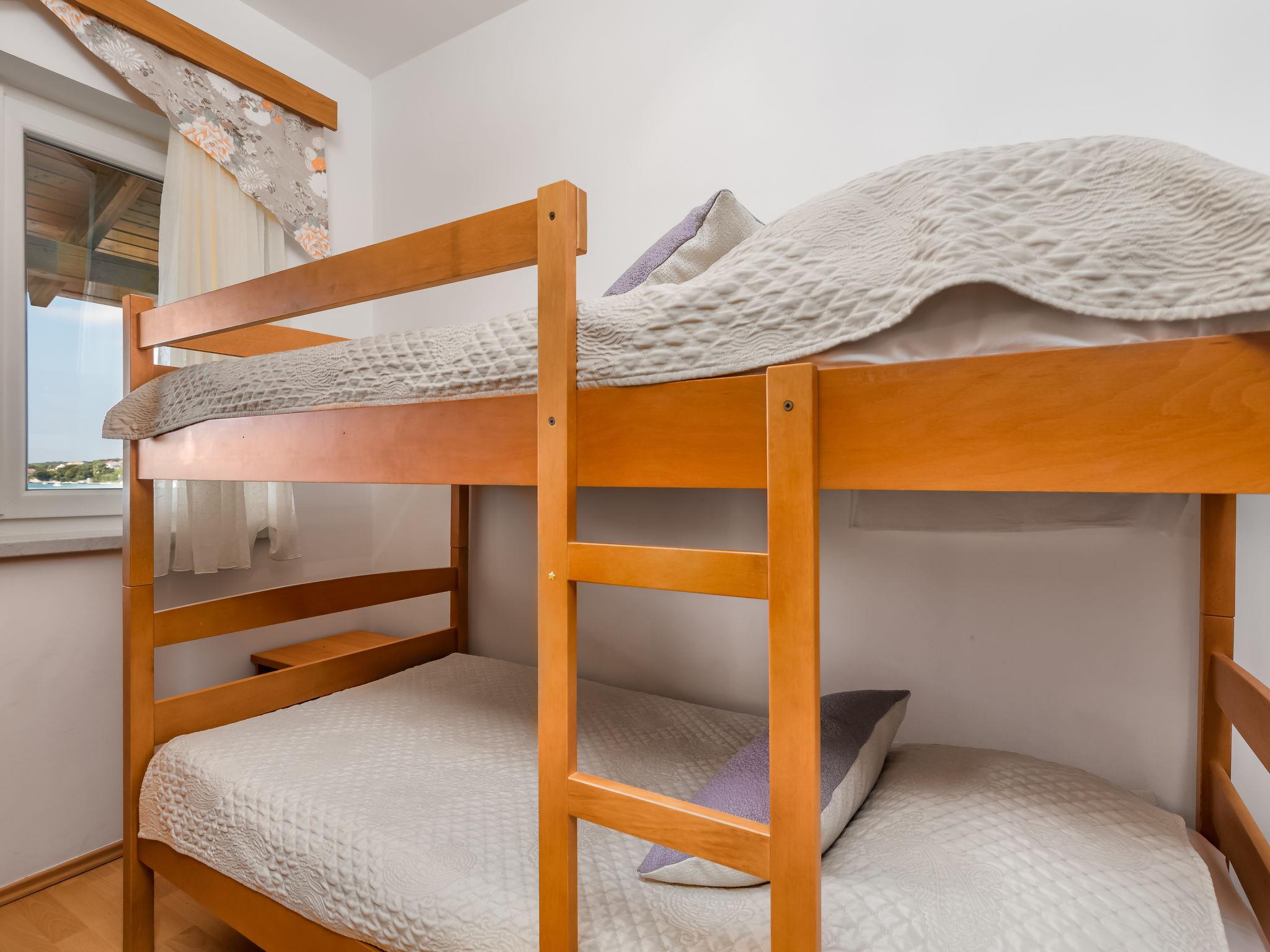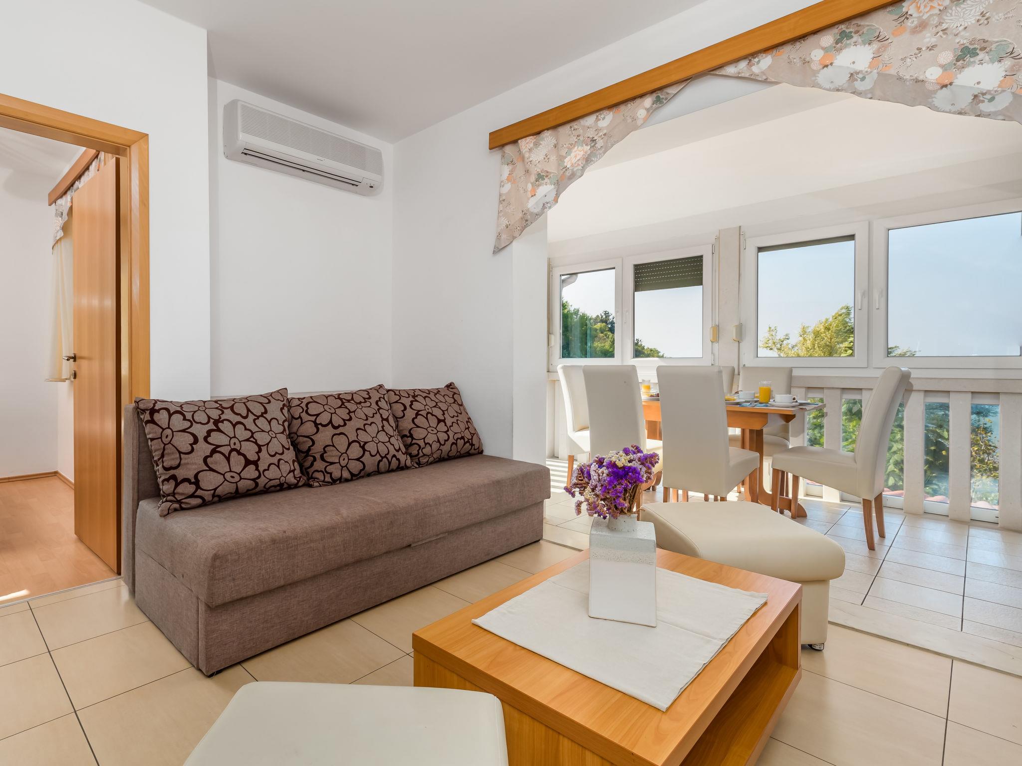 "Mare 5", 3-room apartment 50 m2 on 1st floor. Beautiful and modern furnishings: living/dining room 25 m2 with 1 double sofabed, satellite TV and air conditioning. Exit to the loggia. 1 room with 1 double bed (160 cm, length 200 cm). 1 room with 1 x 2 bunk beds. Open kitchen (4 hot plates, microwave, freezer). Shower/WC. Marvellous view of the sea. Facilities: safe. Internet (WiFi, free). Parking.
