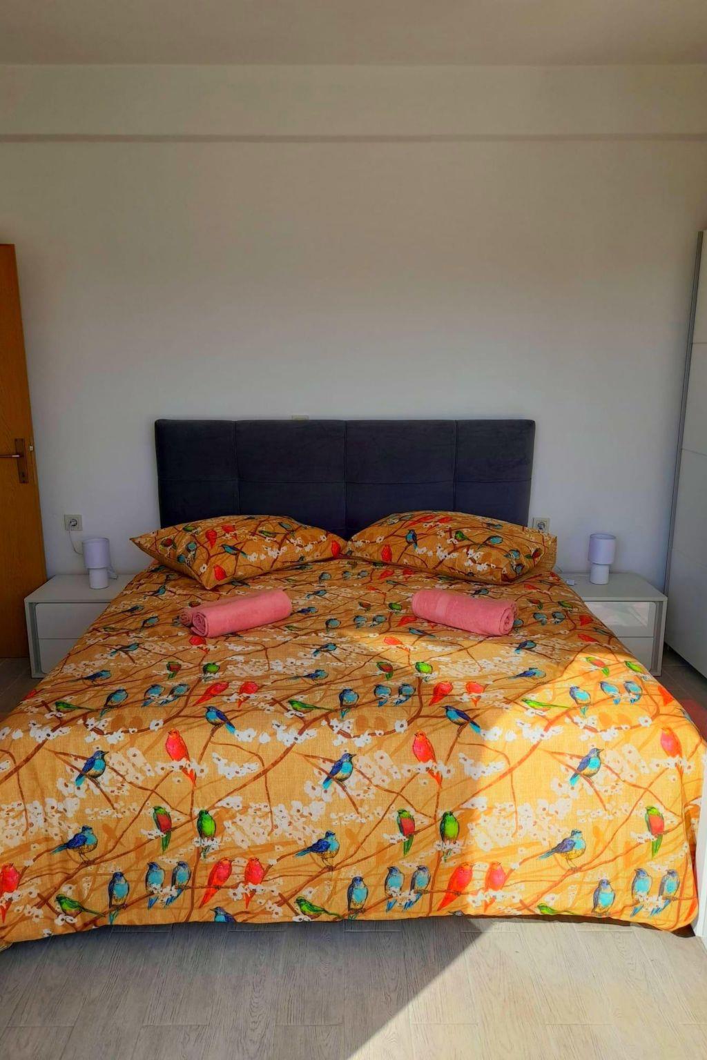 Step inside to find a spacious 100 m² living area that is fully furnished to cater to all your needs. It features efficient air conditioning in the main living space, ensuring your comfort during warmer days. The living room is cozy, complete with a flat-screen satellite TV and a double sofa bed that comfortably accommodates two guests. Each of the two bedrooms is fitted with a welcoming double bed, ensuring a restful sleep after a day of adventure. Additionally, the house includes two well-appointed bathrooms with showers, streamlining your daily routines.