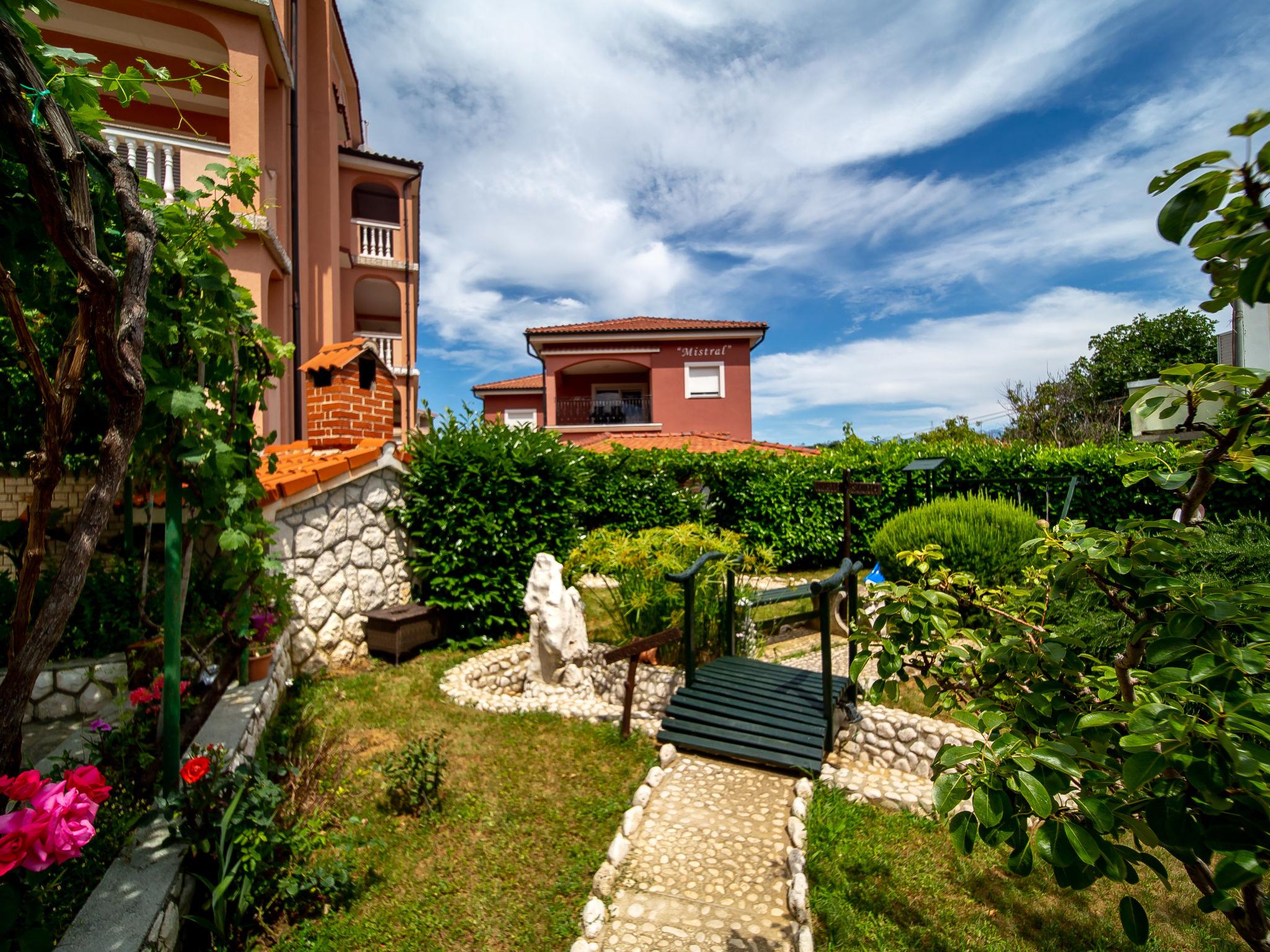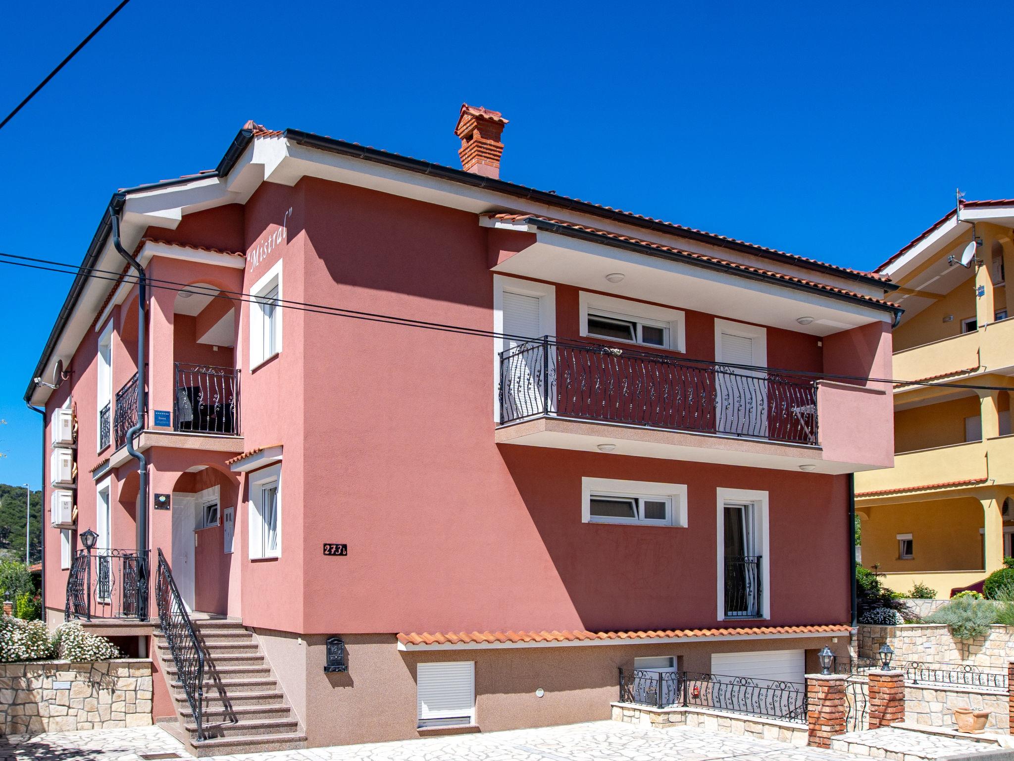 Apartment house "Mistral". 300 m from the centre of Lopar, 13 km from the centre of Rab, 350 m from the sea, 350 m from the beach. For shared use: property 586 m2, garden 20 m2 flowers and trees. Terrace (70 m2), garden furniture, barbecue. In the house: internet access, washing machine (extra), tumble dryer (for shared use, extra). Breakfast on request (extra). Parking at the house on the premises. Shop 350 m, supermarket 250 m, restaurant 100 m, café, bus stop 150 m, ferry 1.5 km, sandy beach 350 m. Please note: private mooring (extra) on request.