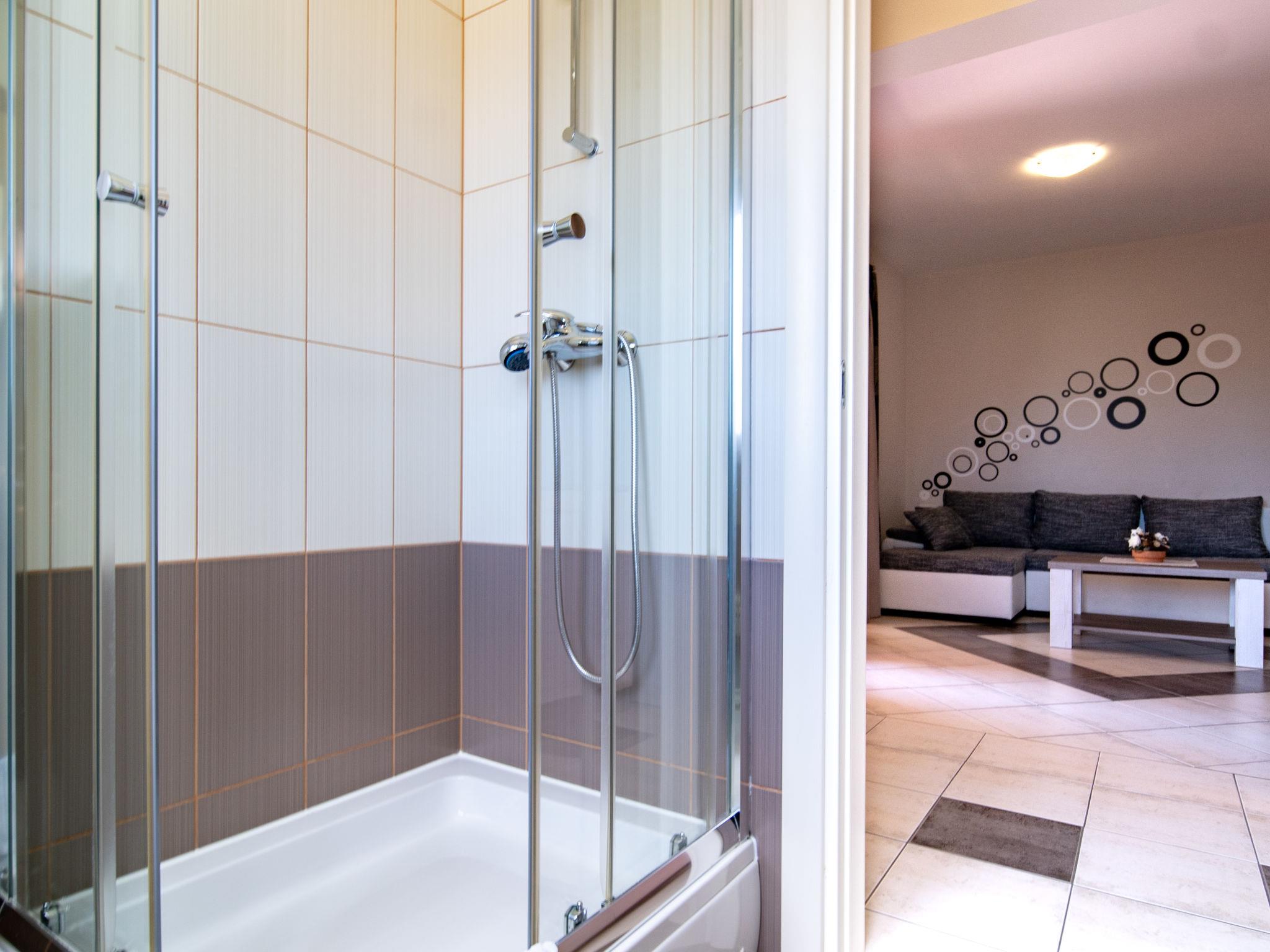 2-room apartment 50 m2 on 1st floor. Living/dining room with satellite TV and air conditioning. Exit to the terrace. 1 room with 1 double bed (2 x 90 cm, length 200 cm). Exit to the terrace. Open kitchen (2 hot plates, oven, dishwasher, 2 gas rings, toaster, kettle, microwave, freezer, electric coffee machine). Shower/WC. No heating option. Terrace 16 m2, roofed. Terrace furniture. Facilities: safe, hair dryer. Internet (WiFi, free). Please note: non-smoking house. Maximum 1 pet/ dog allowed.