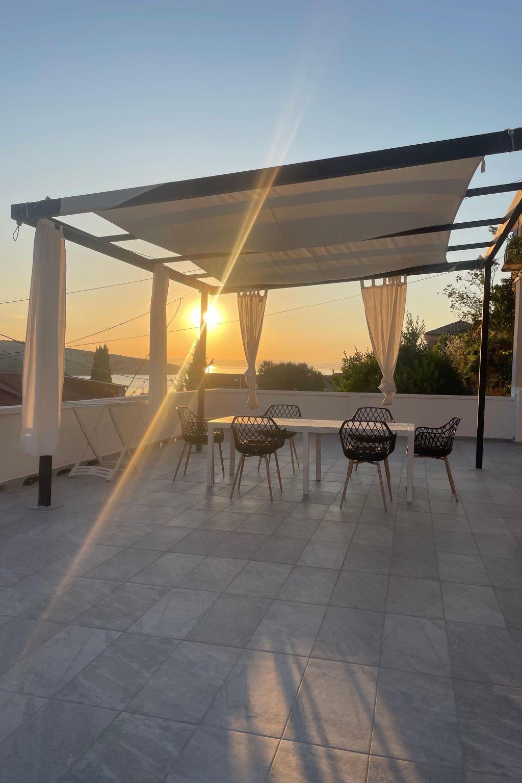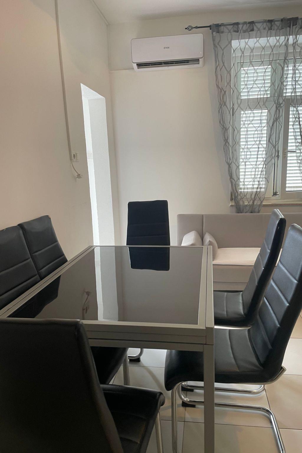 The grund floor is about 80m in size and comprises of the following rooms.A living room with a fully-eguipped kitchen, comfortable couch, a flatscreen TV and two doble rooms with the possibility of additional beds. There is also a large bathroom with a shower and separate toilet.Apartment has a large terrace (80m) with sea view and garden where you and your children can enjoy. Apartment has no air conditionig but it is pleasantly cool in summer because of its thick walls.