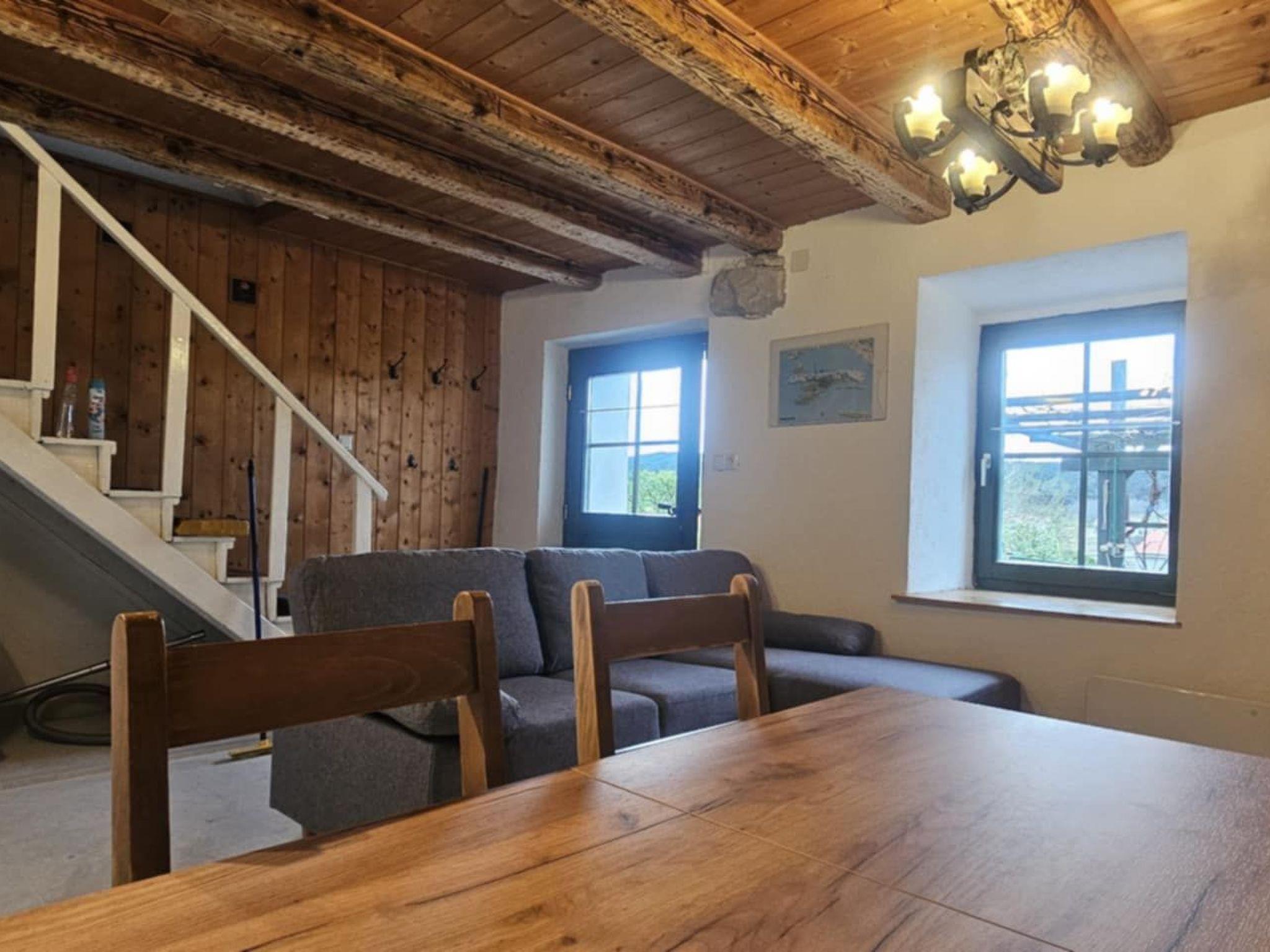 The spacious holiday house occupies the left half of a former farmhouse from the year 1880, which was renovated in 1999 and converted into two holiday houses next to each other. It is equipped with modern amenities for a comfortable stay. The living space of 70m² spread over two floors provides a light living and dining room with an integrated, open kitchen, two bedrooms and a modern daylight bathroom. The living room on the ground floor provides a comfortable sofa and two matching armchairs, satellite TV and a wooden dining table with four chairs. The kitchen next to it is equipped with a two-zone electric hob, a mini oven, a fridge with a freezer compartment, kettle, toaster and coffee machine. The bathroom with light tiles is fitted with a walk-in shower cubicle, a washbasin with a cupboard underneath and a wall cupboard with a mirror, as well as a toilet. Wide wooden stairs lead to the upper floor with the two bedrooms, each with a double bed (180 x200cm). Plenty of bed linen and towels are provided. Your pet is also welcome.