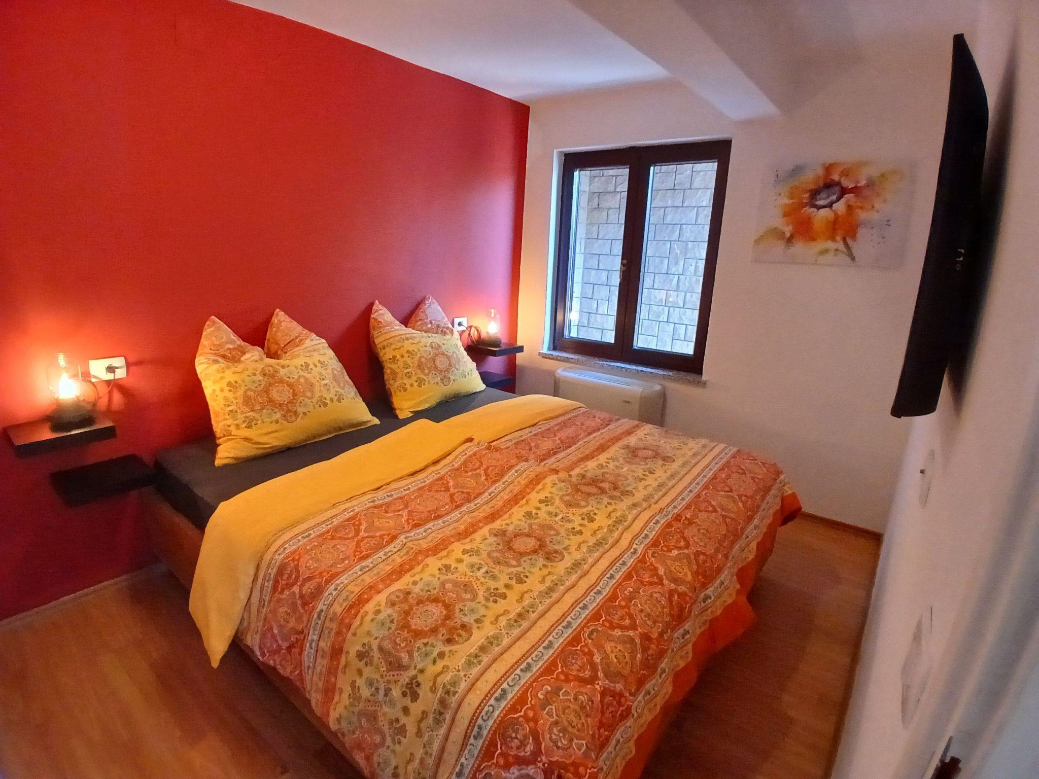 This 50 square metre air-conditioned flat for 4 people is located on the second floor of our RED House Rabac. It has 2 bedrooms, each with 1 Smart TV, an open-plan kitchen/living room with dining area and 1 bathroom. The first bedroom has a double bed (140x200cm) and a view of the balcony, the second bedroom has a king-size bed (180x200cm). The kitchen is equipped with a hob, oven, dishwasher, fridge-freezer and plenty of cooking utensils. For coffee lovers there is a filter coffee machine and an espresso maker.