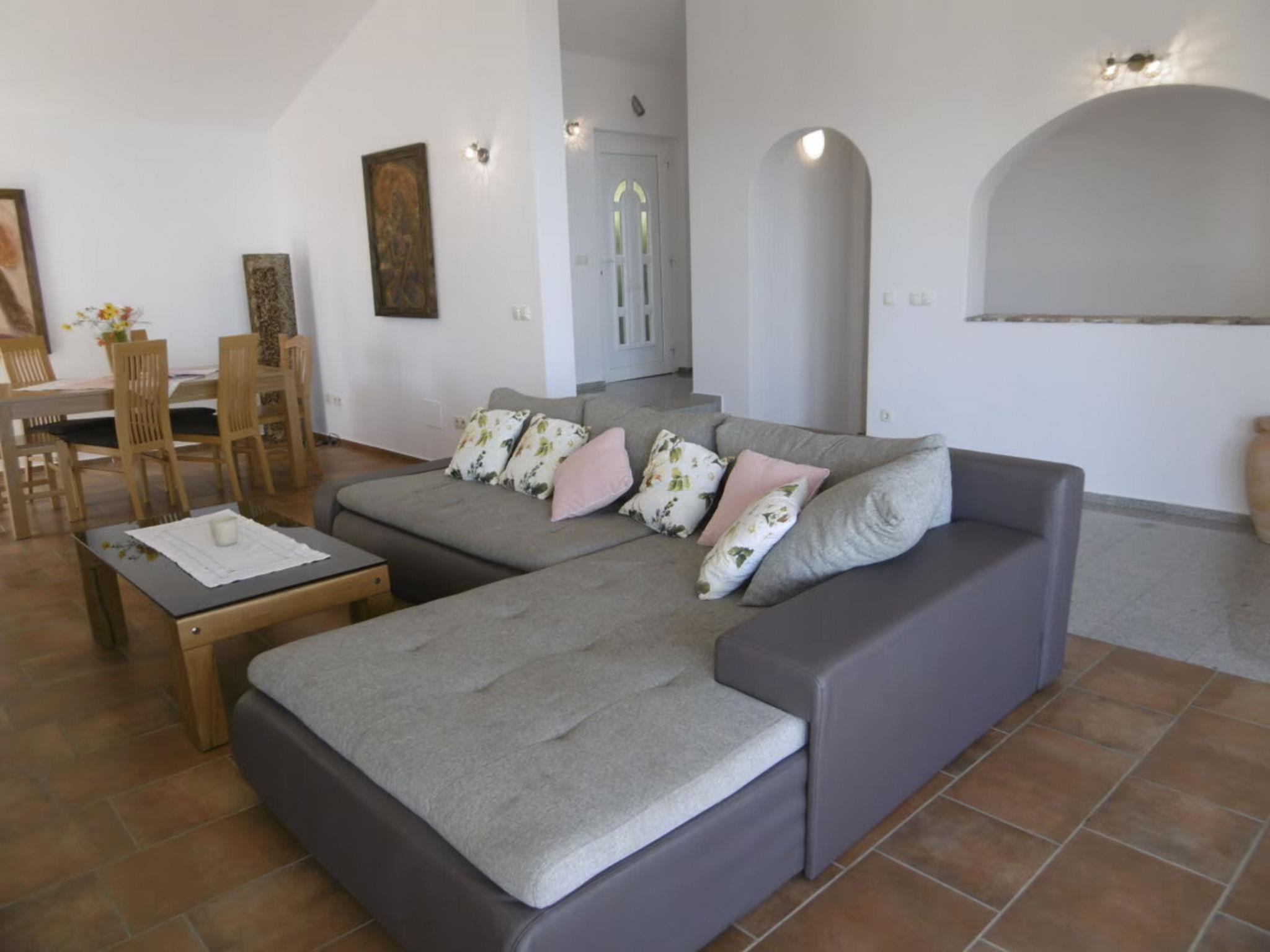 The villa has 2 floors and 3 terraces, all built in natural stone.