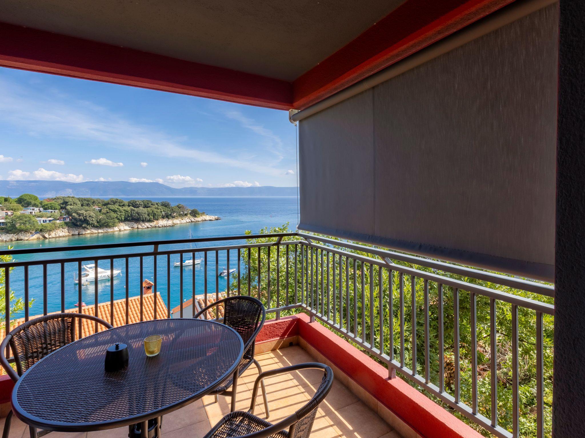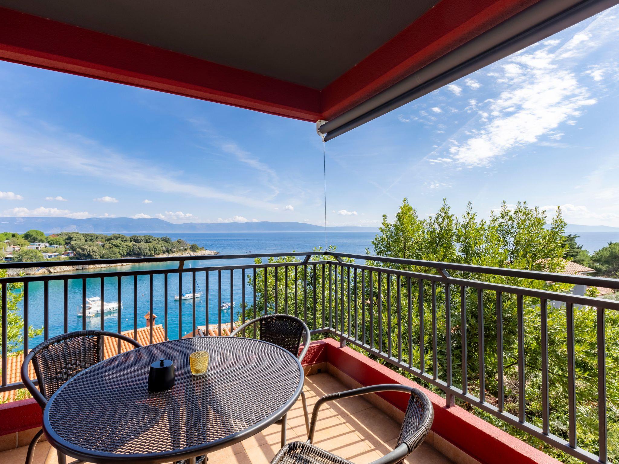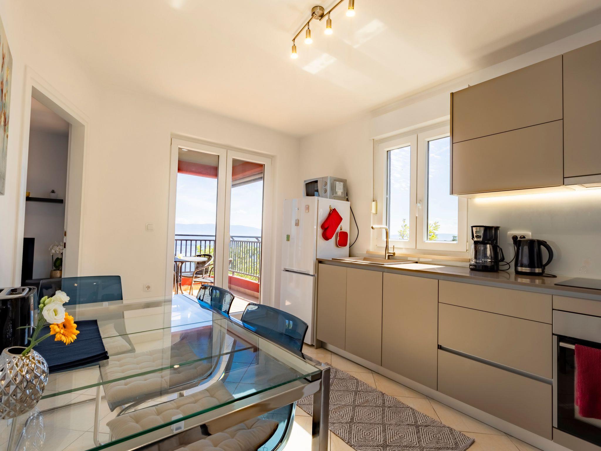 The open and modern kitchen is equipped with plenty of kitchen utensils, induction hob, oven, dishwasher, microwave and a fridge-freezer. For coffee lovers, there is a choice between a filter coffee machine and an espresso maker. There is a Smart TV in the living room. The balcony is accessible from both the kitchen and the living room. Here you can sit for hours and enjoy the marvellous view of the sea and the island of Cres. A sunshade provides the necessary shade on hot days as well as additional privacy.