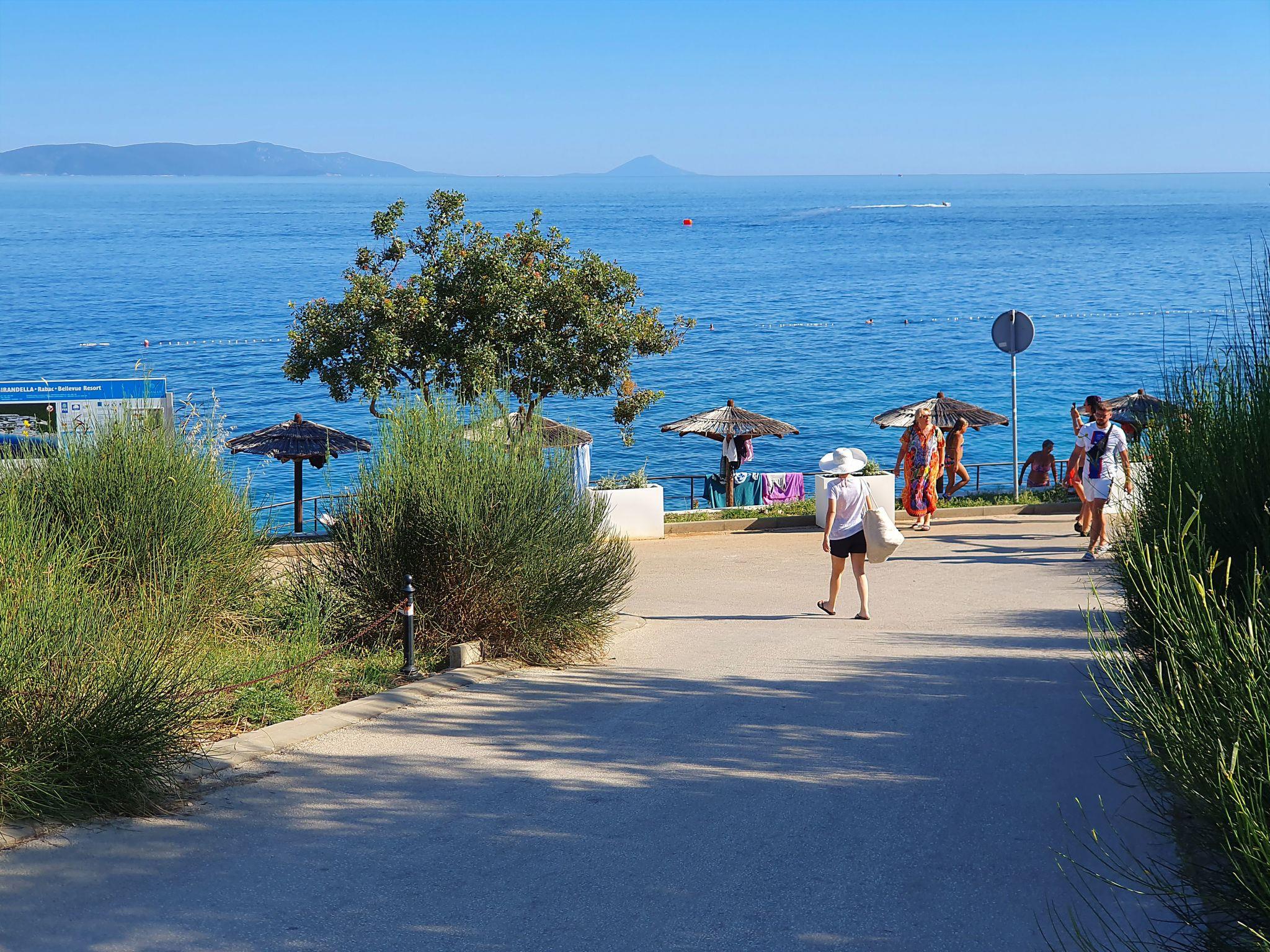The apartment's location is a treasure trove of activities and scenery. Just a 400m walk away from the apartment, you can dip your toes in the azure waters of the beach or engage in various water sports activities available just 500m away. For dog owners, a friendly dog beach is located within 1000m, providing fun for your pet too. Everyday necessities can be easily acquired from the grocery store only 300m away, and for a taste of local life, the nearest town center is also only a short 400m stroll.