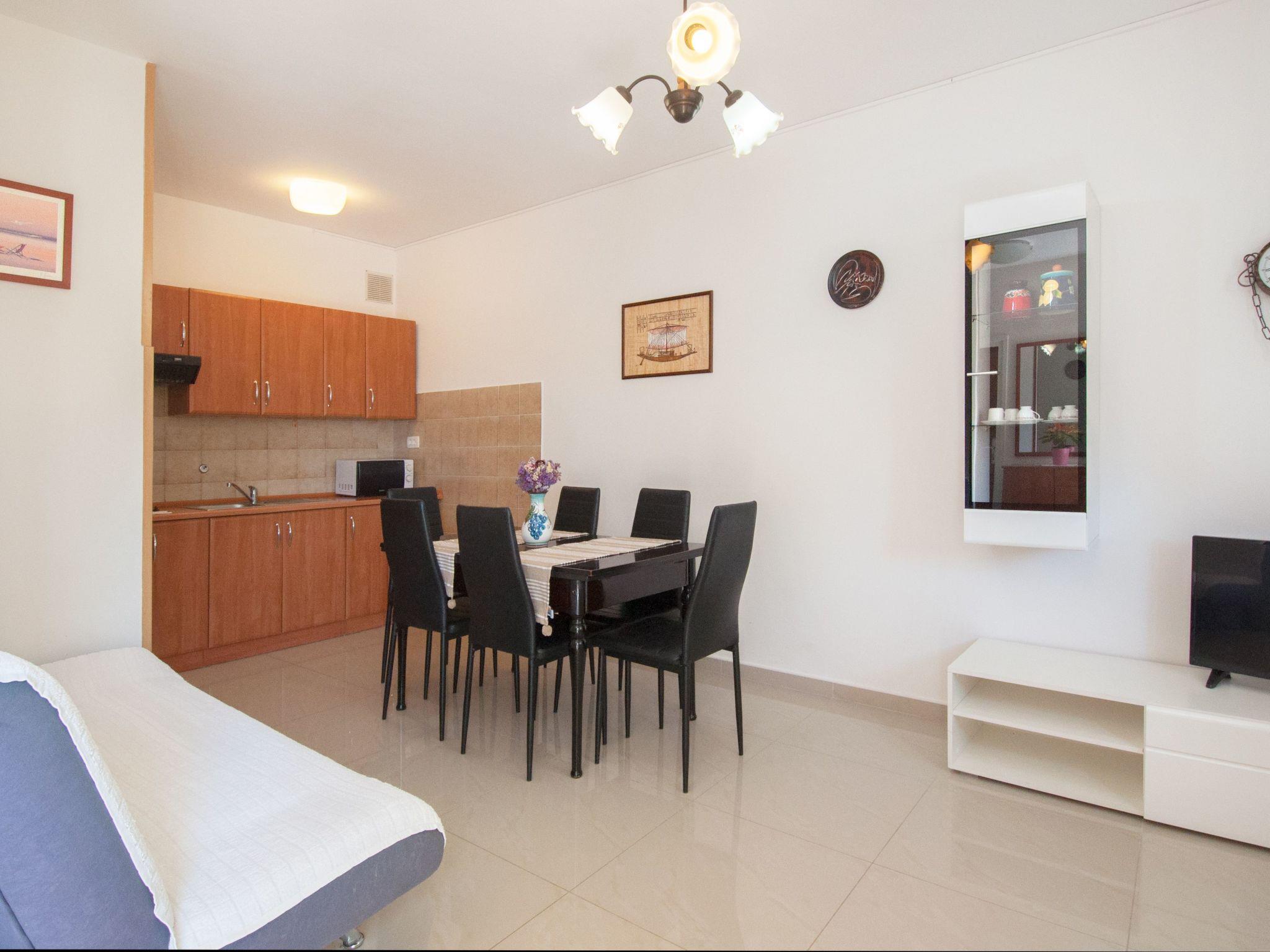 The interior of this apartment is well-equipped to meet all your needs during your stay. It features two cozy bedrooms for a good night's sleep and one bathroom equipped with a bathtub and a shower, ensuring comfort for all guests. The inclusion of a washing machine for your sole use adds to the convenience, ensuring you feel at home. The apartment also offers partial air conditioning to keep you cool during those warm Istrian days.