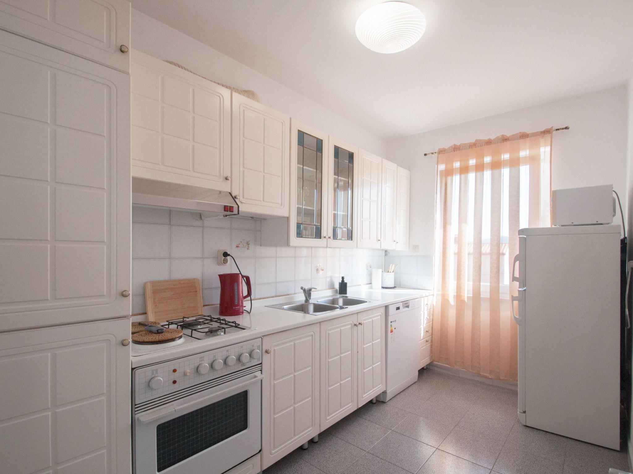 The apartment's location is just as appealing, positioned only 1,000m from both the beach and the crystal-clear sea, offering easy access to a day of sun and fun. Additionally, water sports enthusiasts will find plenty to keep them entertained, with facilities located similarly 1,000m away. For those looking to explore local culture and do some shopping, the nearest town center and grocery store are conveniently situated within a short walking distance, making it easy to immerse oneself in the local lifestyle.