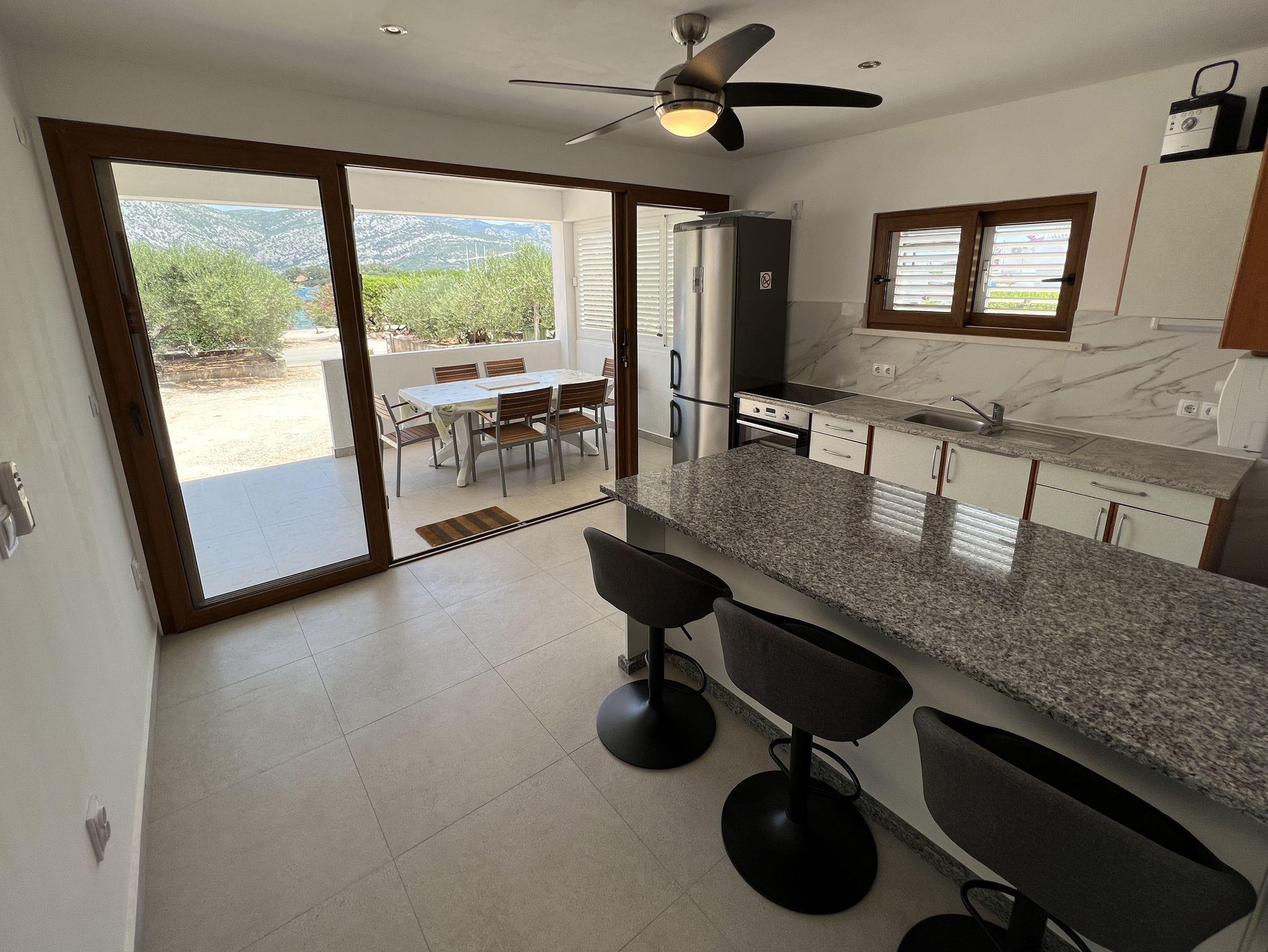 Ferienwohnung bietet Platz für 4 Gäste. Die Betten sind in Schlafzimmern, die es 2 gibt, innerhalb einer Gesamtfläche von 39m2, angeordnet. Die Gäste haben eine eigene Terrasse zur Verfügung, auf der sie in warmen Sommernächten genießen können. Das Apartment bietet Meerblick. Es ist erlaubt, Speisen auf dem Gemeinschafts-Grill vorzubereiten. IM PREIS INBEGRIFFEN: Kurtaxe, Endreinigung, Klimatisierung, Parkplatz, Internet, Bootsanlegeplatz, Kinderbett, Bügeleisen, Bügelbrett, Föhn, Sonnenschirm, Liegestühle. Die Verfügbarkeit zusätzlicher Dienstleistungen in Ihrem reservierten Termin und die Preise derselben (falls nicht aufgeführt) müssen im Voraus überprüft werden. Zusätzliche Dienstleistungen die in der Zahlungsaufforderung nicht aufgeführt sind werden direkt beim Vermieter bezahlt, angenommen der Gast nutzt auch diese.
