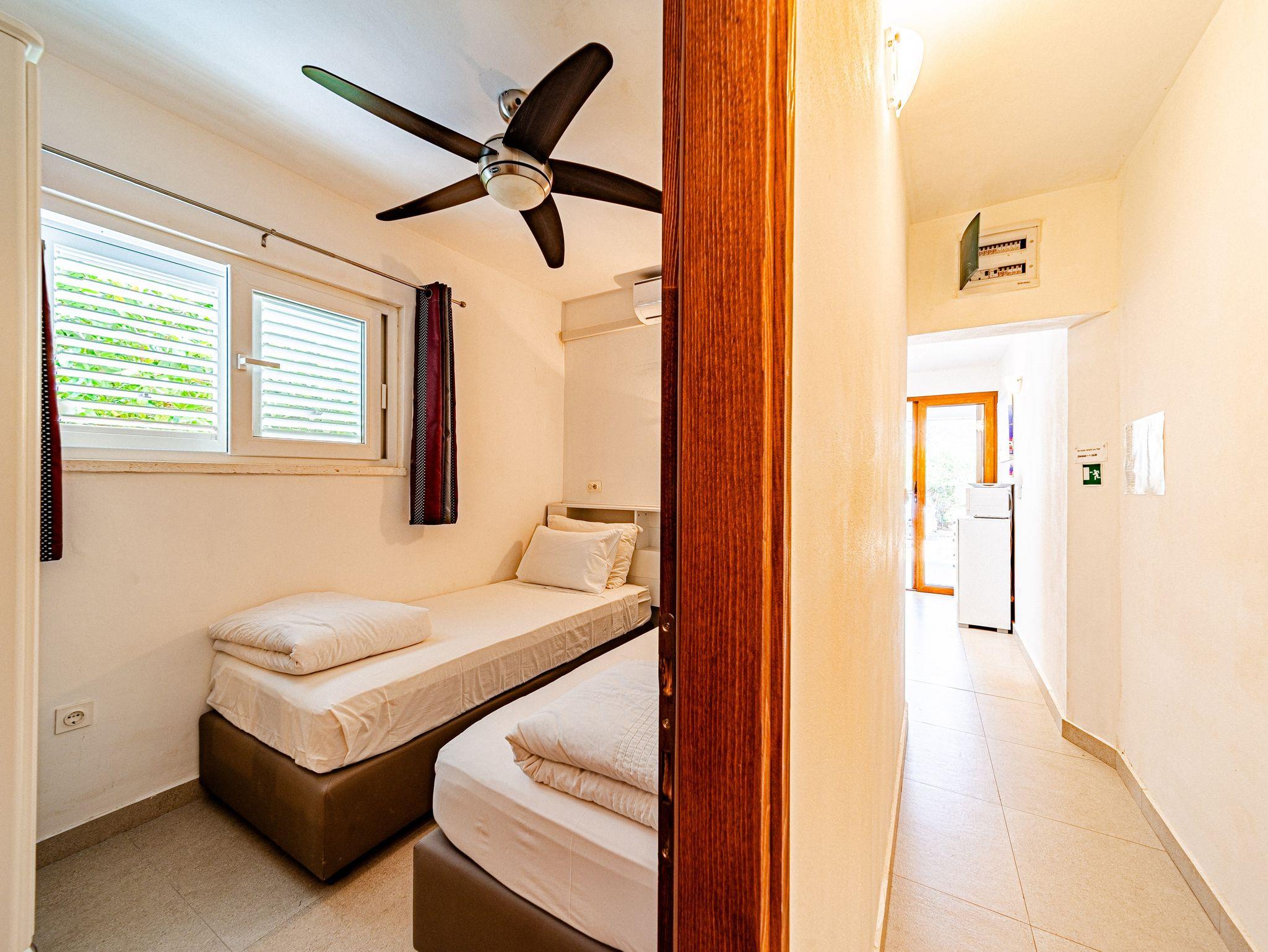 Ferienwohnung bietet Platz für 4 Gäste. Die Betten sind in Schlafzimmern, die es 2 gibt, innerhalb einer Gesamtfläche von 39m2, angeordnet. Die Gäste haben eine eigene Terrasse zur Verfügung, auf der sie in warmen Sommernächten genießen können. Es ist erlaubt, Speisen auf dem Gemeinschafts-Grill vorzubereiten. IM PREIS INBEGRIFFEN: Kurtaxe, Endreinigung, Klimatisierung, Parkplatz, Internet, Bootsanlegeplatz, Kinderbett, Bügeleisen, Bügelbrett, Föhn, Sonnenschirm, Liegestühle. Die Verfügbarkeit zusätzlicher Dienstleistungen in Ihrem reservierten Termin und die Preise derselben (falls nicht aufgeführt) müssen im Voraus überprüft werden. Zusätzliche Dienstleistungen die in der Zahlungsaufforderung nicht aufgeführt sind werden direkt beim Vermieter bezahlt, angenommen der Gast nutzt auch diese.