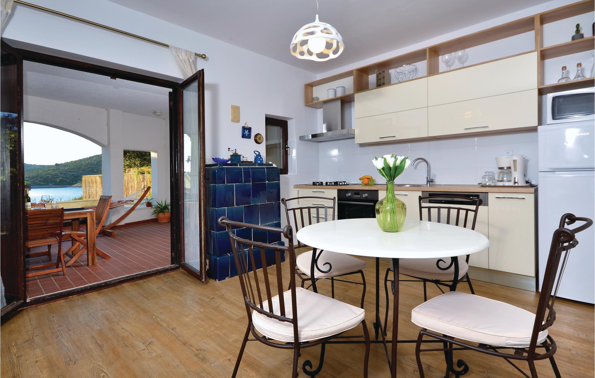 Dette interessante feriehus ligger i den lille landsby Kanica, kun få meter fra havet. Det består af tre godt indrettede lejligheder på tre etager, kun forbundet af ydertrapper. Den laveste loftshøjde øverst er ca. 150 cm. Til huset hører flere terrasser med herlig udsigt til havet og bugten. Afslapning kan I finde i husets pool og ved den nære betonstrand. Hvis I kan få jer selv til at forlade bugtens himmelske fred, så kan I tage til centrum af Rogoznica, hvor I kan opdage mange kulinariske lækkerier, caféer og forskellige seværdigheder.