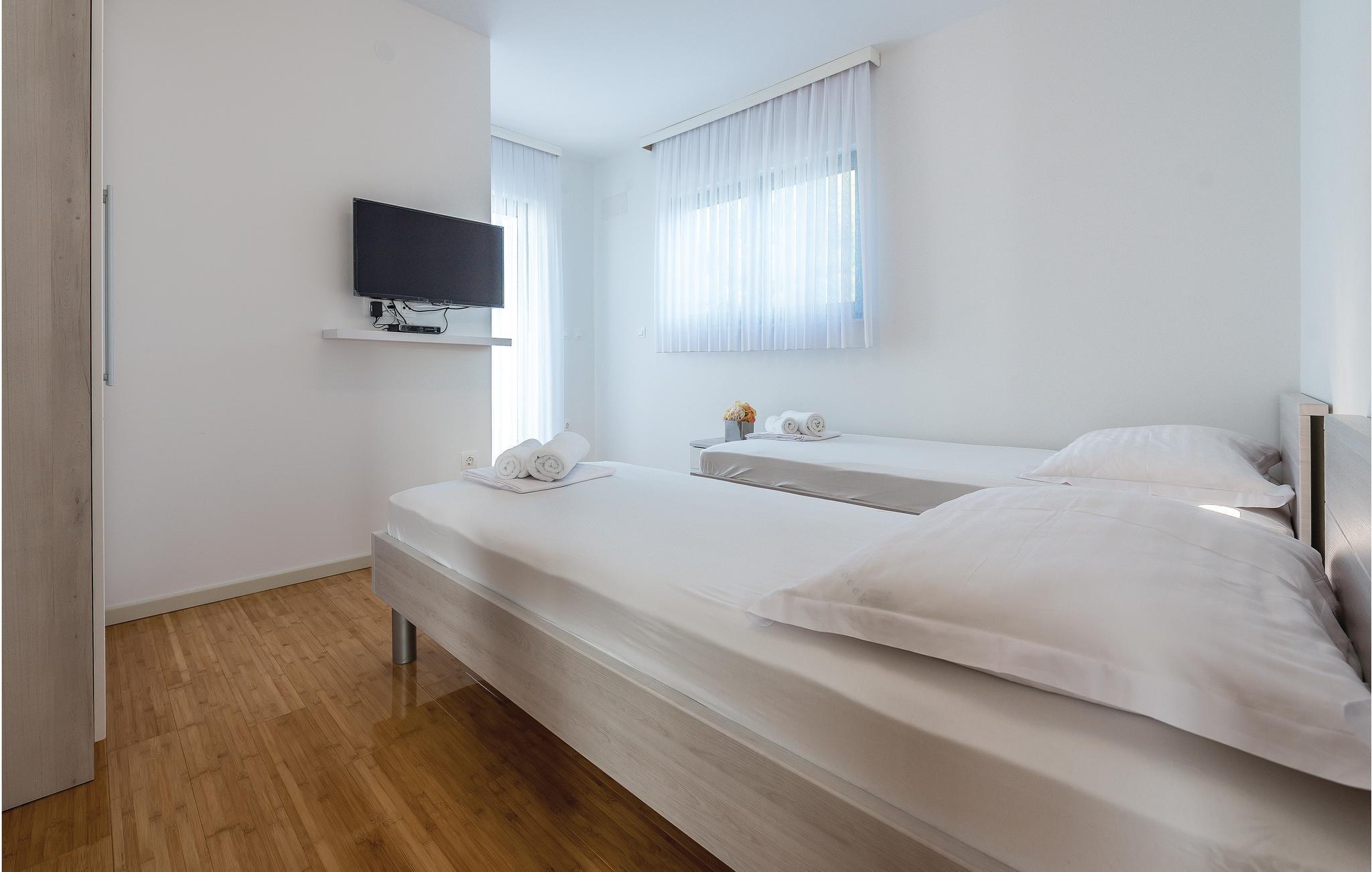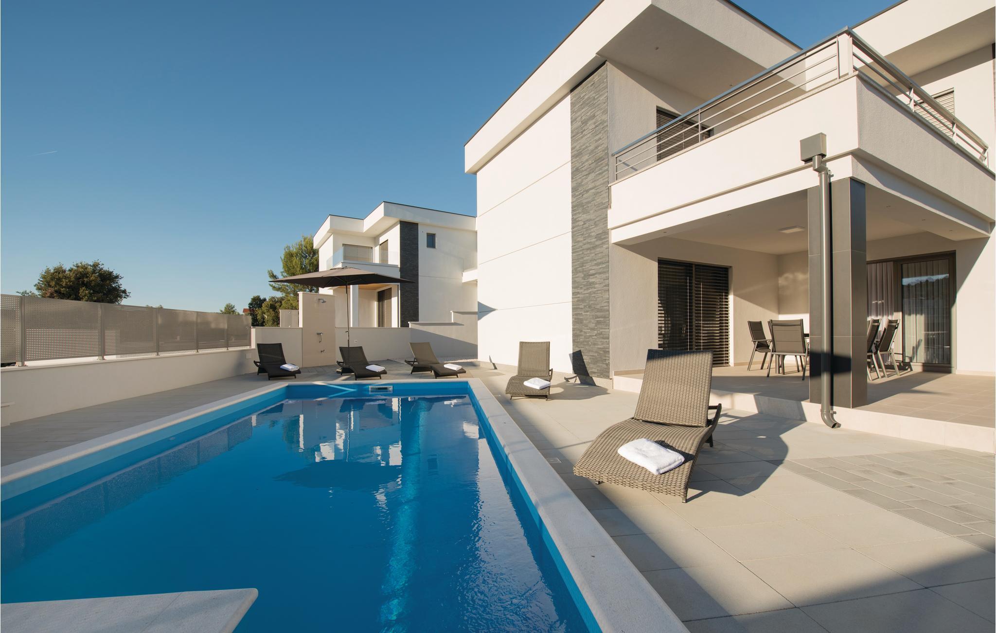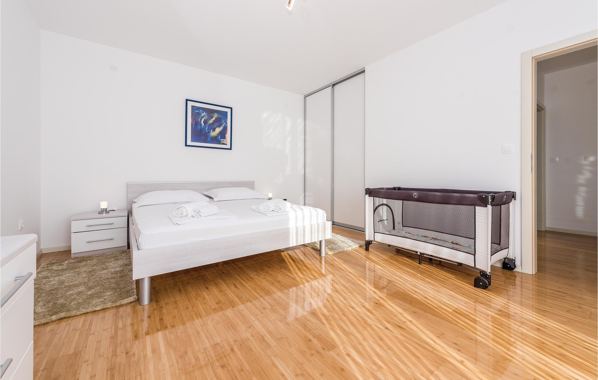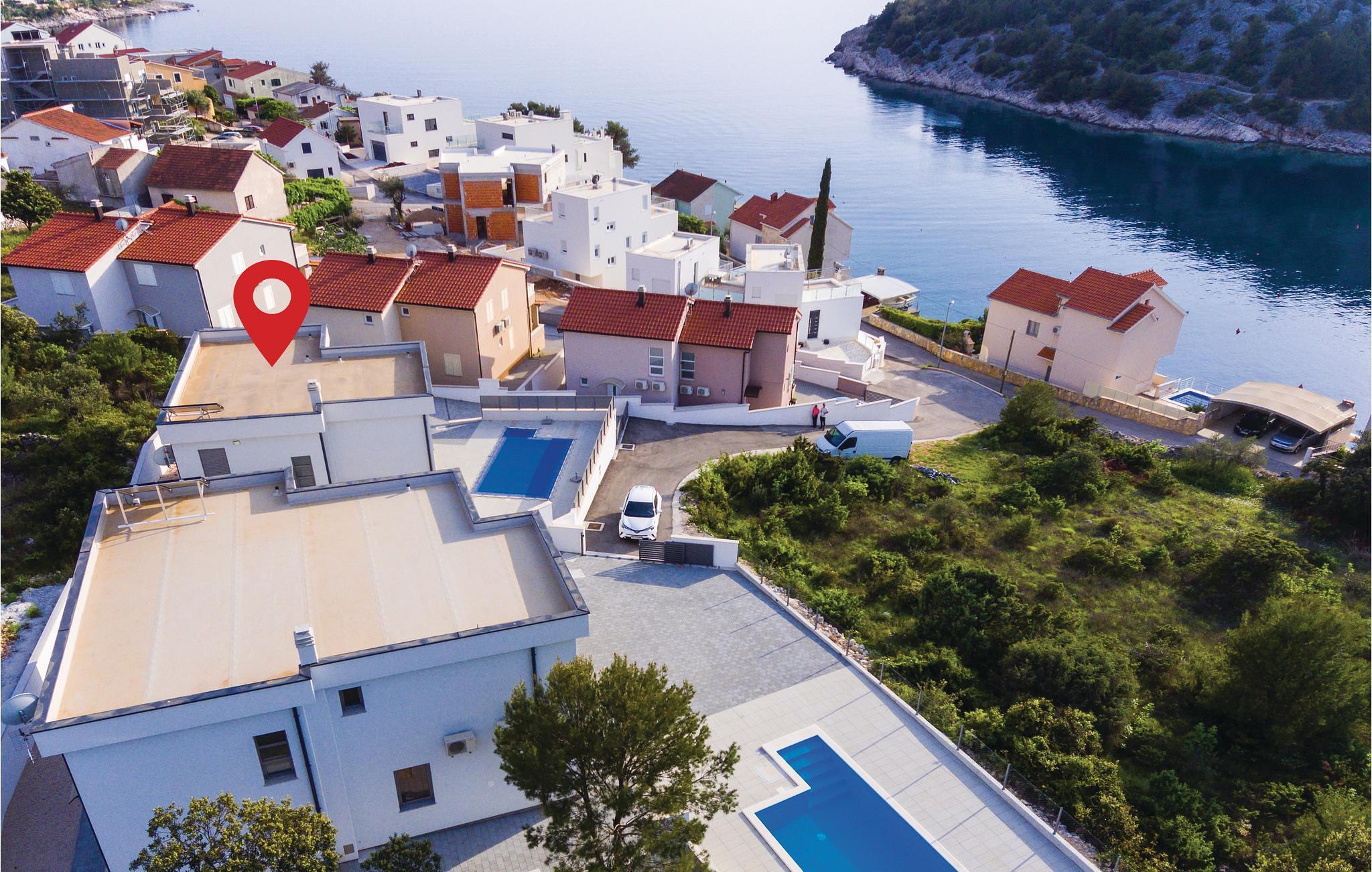 I den lille landsby Stivašnica ligger dette skønne og praktisk indrettede feriehus med pool. Det breder sig over to etager. I stueetagen ligger den rummelige opholdsstue med køkken, mens der i overetagen ligger to soveværelser. På varme sommerdage kan I se frem til at nyde det forfriskende vand i poolen og i aftenstunden kan I tilberede jeres måltider under åben himmel ved grillen. Stedet er omgivet af små fredelige bugter, hvor I ligeledes kan bade i det skønne klare vand. Det er et lille eventyr I sig selv at finde det bedste sted at bade. Som oplagte udflugtsmål kan de gamle middelalderbyer Šibenik, Trogir og Split anbefales.
