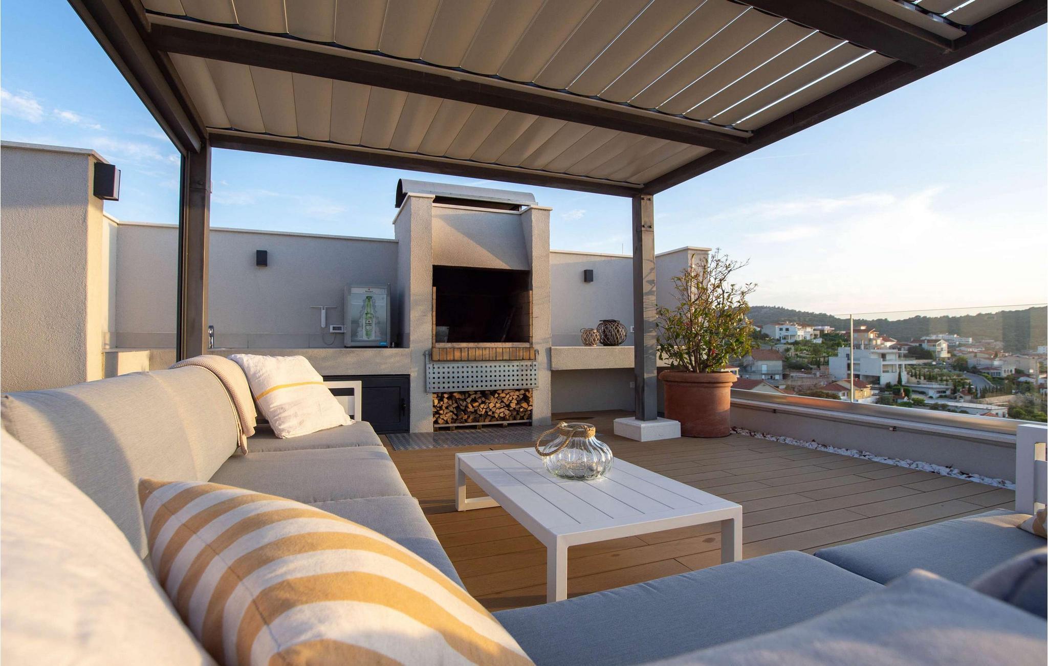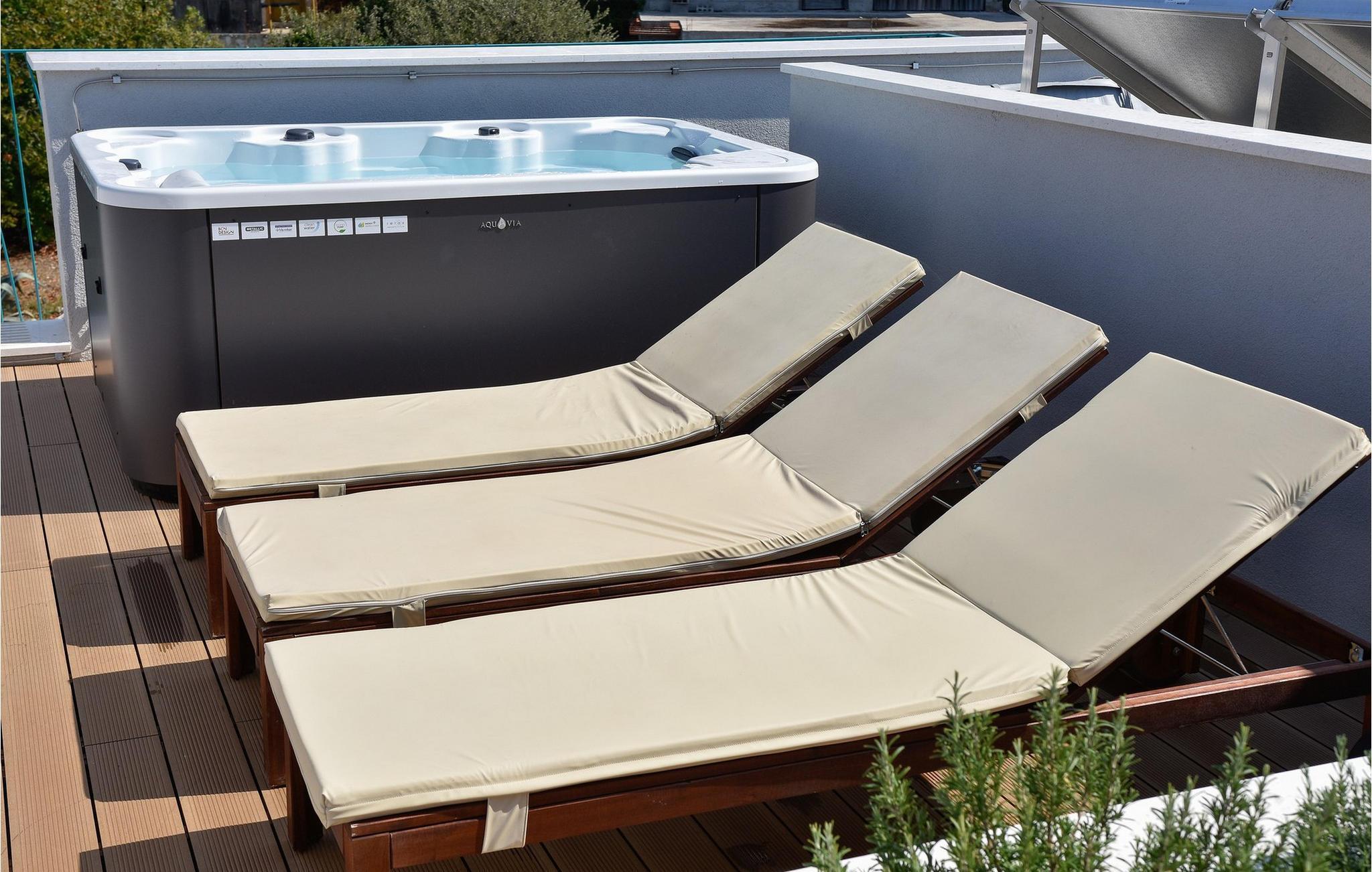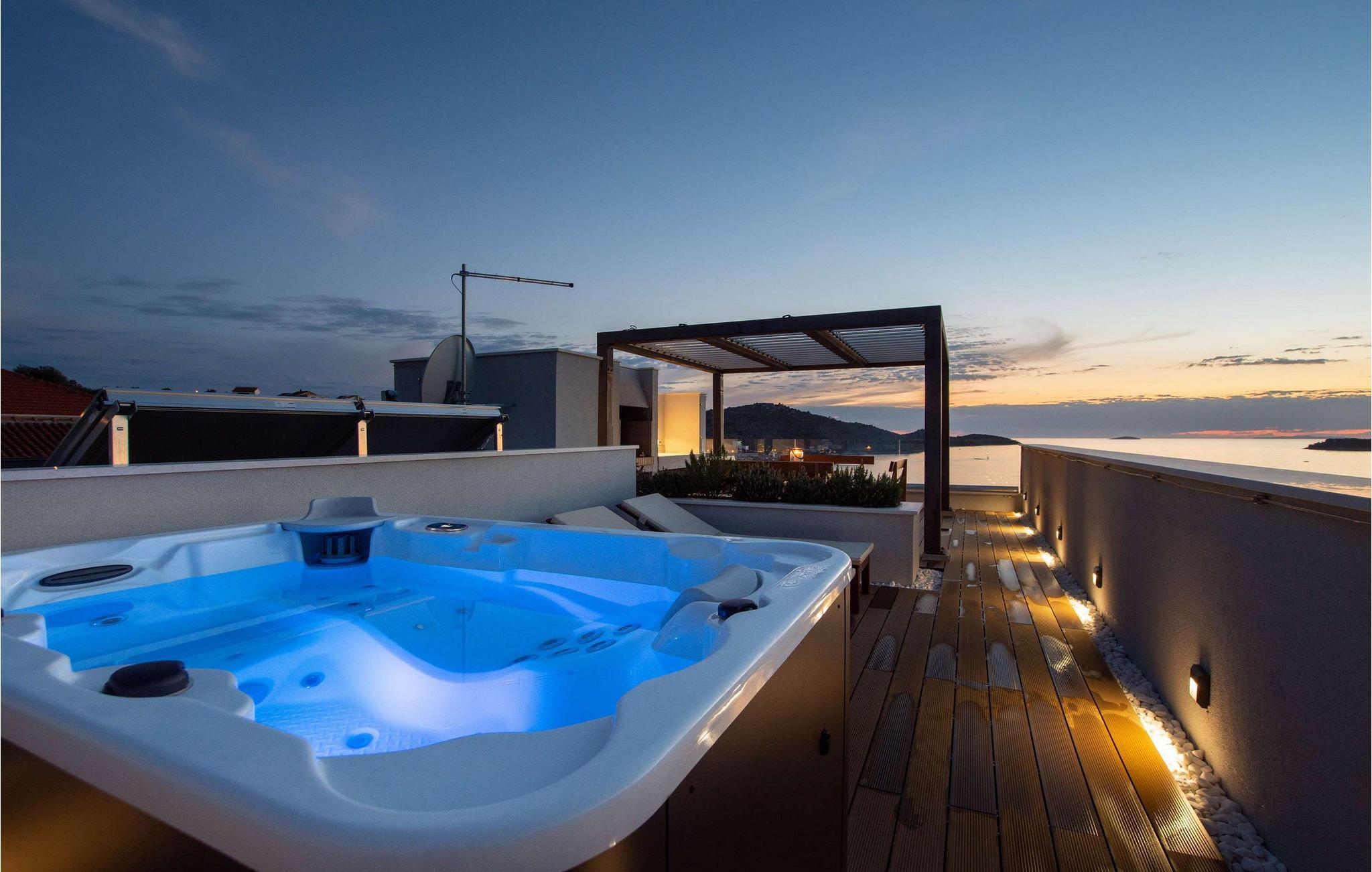 Lad jer fortrylle af denne drømmeagtige villa, der er noget særligt med en betagende udsigt over Adriaterhavet og øerne foran kysten. Velkommen til Villa Tempera i Ražanj. Den moderne arkitektur med rene linjer og stilfuldt interiør skaber en luksuriøs, men afslappet atmosfære. Udforsk de mange etager. Det fuldt udstyrede køkken med tilhørende spiseplads tilbyder rigelig plads til hyggelige aftener, mens den luftige stue lægger op til hyggestunder. Udfordr jer selv med et spil billard eller dart i aktivitetsrummet eller slap af i saunaen på den komfortable soveværelsesetage. Et særligt højdepunkt er den rummelige tagterrasse med spabad - perfekt til at nyde solnedgangen over havet. I haven finder I en opvarmet pool omgivet af liggestole samt et grillområde til jeres kulinariske lækkerier. Omgivelserne omkring Ražanj byder på talrige muligheder for afslapning og udforskning. Kun få meter væk finder I maleriske klippestrande med små stenstrande, der lægger op til at svømme og slappe af. Selve byen er omgivet af duftende fyrreskove, ideel til gåture og cykelture. For en varieret dagstur tilbyder de historiske byer Šibenik, Split og Primošten imponerende seværdigheder og førsteklasses restauranter. Vandsportsentusiaster og aktive feriegæster vil også finde masser at nyde i regionen, uanset om det er sejlads, dykning eller udforskning af kysten med båd. Bemærk venligst: Ejendommen accepterer ikke polterabender eller ungdomsgrupper under 30 år. Bookinger fra sådanne grupper vil blive afvist, selv ved ankomst eller under opholdet, uden refusion.