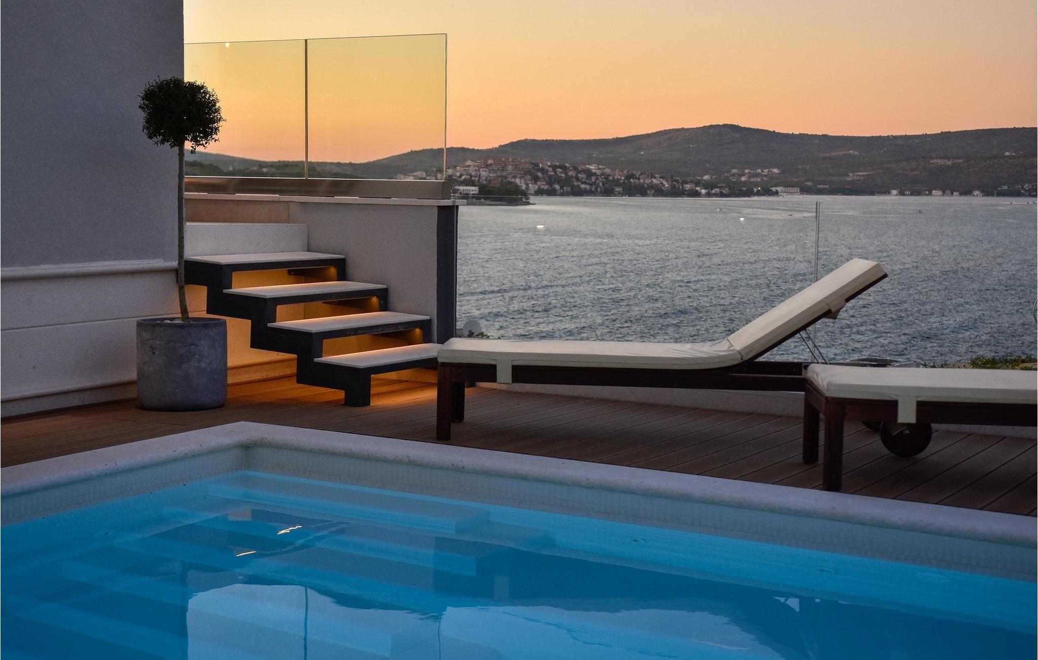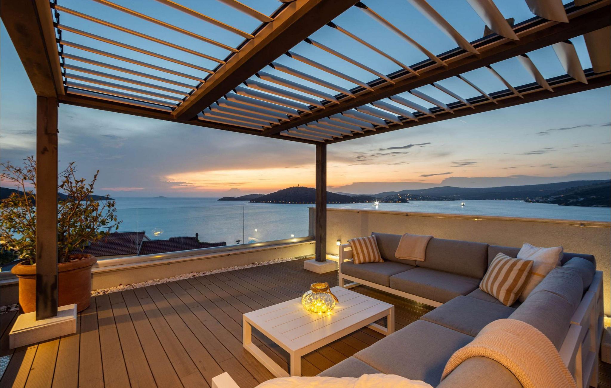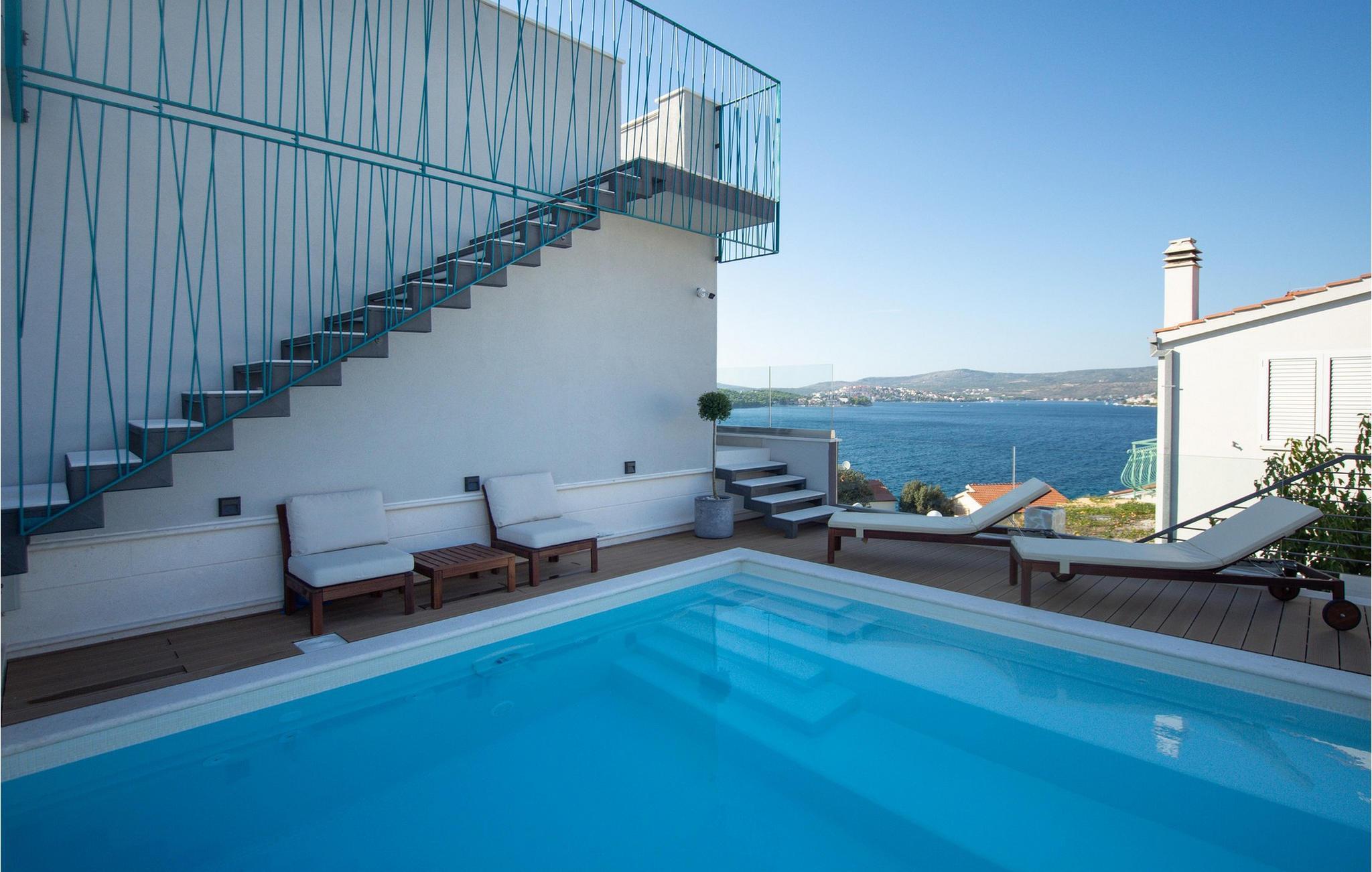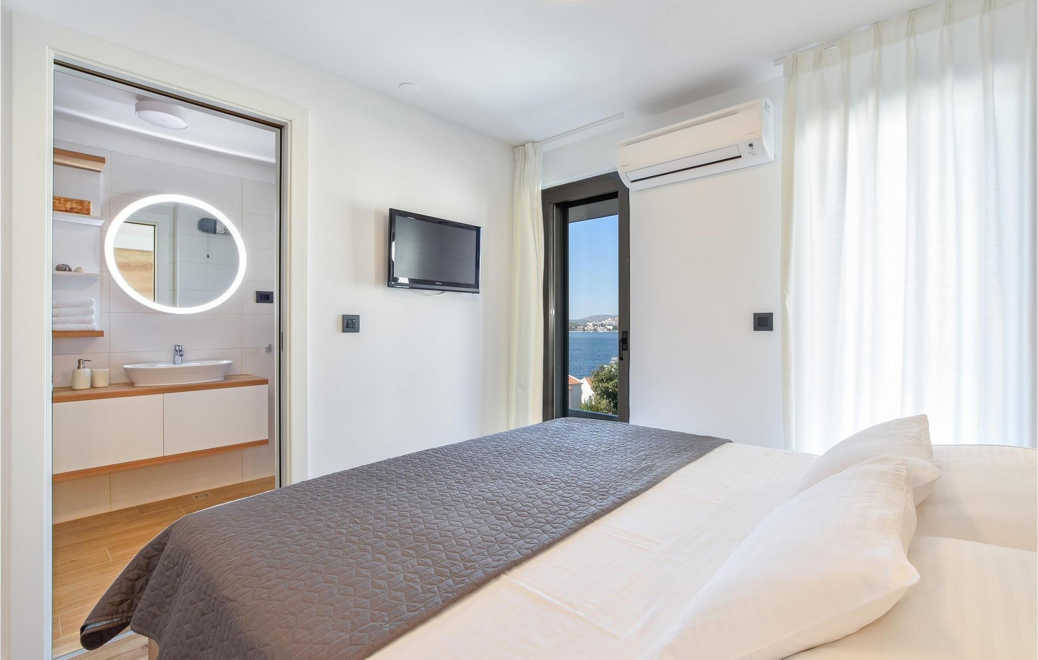 Lad jer fortrylle af denne drømmeagtige villa, der er noget særligt med en betagende udsigt over Adriaterhavet og øerne foran kysten. Velkommen til Villa Tempera i Ražanj. Den moderne arkitektur med rene linjer og stilfuldt interiør skaber en luksuriøs, men afslappet atmosfære. Udforsk de mange etager. Det fuldt udstyrede køkken med tilhørende spiseplads tilbyder rigelig plads til hyggelige aftener, mens den luftige stue lægger op til hyggestunder. Udfordr jer selv med et spil billard eller dart i aktivitetsrummet eller slap af i saunaen på den komfortable soveværelsesetage. Et særligt højdepunkt er den rummelige tagterrasse med spabad - perfekt til at nyde solnedgangen over havet. I haven finder I en opvarmet pool omgivet af liggestole samt et grillområde til jeres kulinariske lækkerier. Omgivelserne omkring Ražanj byder på talrige muligheder for afslapning og udforskning. Kun få meter væk finder I maleriske klippestrande med små stenstrande, der lægger op til at svømme og slappe af. Selve byen er omgivet af duftende fyrreskove, ideel til gåture og cykelture. For en varieret dagstur tilbyder de historiske byer Šibenik, Split og Primošten imponerende seværdigheder og førsteklasses restauranter. Vandsportsentusiaster og aktive feriegæster vil også finde masser at nyde i regionen, uanset om det er sejlads, dykning eller udforskning af kysten med båd. Bemærk venligst: Ejendommen accepterer ikke polterabender eller ungdomsgrupper under 30 år. Bookinger fra sådanne grupper vil blive afvist, selv ved ankomst eller under opholdet, uden refusion.