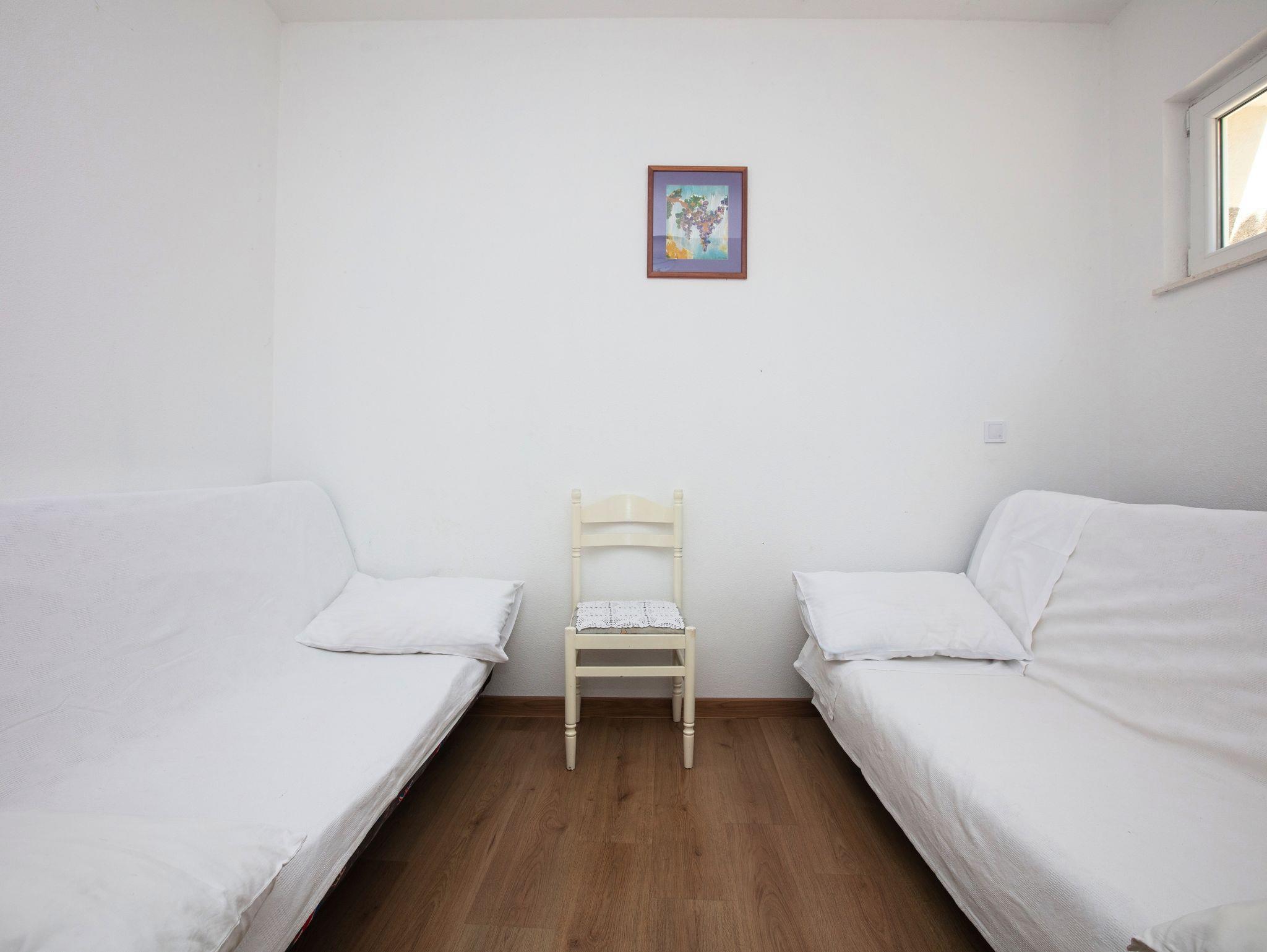 Ferienwohnung bietet Platz für 8 Gäste. Die Betten sind in Schlafzimmern, die es 3 gibt, und in Wohnzimmer, innerhalb einer Gesamtfläche von 63m2, angeordnet. Die Gäste haben eine eigene Terrasse zur Verfügung, auf der sie in warmen Sommernächten genießen können. Das Apartment bietet Meerblick. Es ist erlaubt, Speisen auf dem Gemeinschafts-Grill vorzubereiten. In der Unterkunftseinheit besteht die Möglichkeit des Mitbringens von Haustieren gegen Aufpreis. Unterkunftseinheit hat Räume, die von dem Rest der Einheit abgetrennt werden. IM PREIS INBEGRIFFEN: Kurtaxe, Endreinigung, Klimatisierung, Parkplatz, Internet, Wäschewaschen, Bootsanlegeplatz, Bügeleisen, Bügelbrett, Föhn, tragbarer Grill. VERBINDLICHE ZUSÄTZLICHE KOSTEN: Aufzahlung für Kurzaufenthalte (prozentualer Zuschlag pro Nächtigungsanzahl: 30% - 1, 20% - 2, 10% - 3). UNVERBINDLICHE ZUSÄTZLICHE KOSTEN: Haustiere (5,00 € pro Nacht). Die Verfügbarkeit zusätzlicher Dienstleistungen in Ihrem reservierten Termin und die Preise derselben (falls nicht aufgeführt) müssen im Voraus überprüft werden. Zusätzliche Dienstleistungen die in der Zahlungsaufforderung nicht aufgeführt sind werden direkt beim Vermieter bezahlt, angenommen der Gast nutzt auch diese. Ermäßigung auf den Grundpreis: Gratistag 14=13 (bei einem Aufenthalt von 14 Tagen oder mehr erhalten Sie einen Gratistag für den Aufenthalt bis 31.12.26).