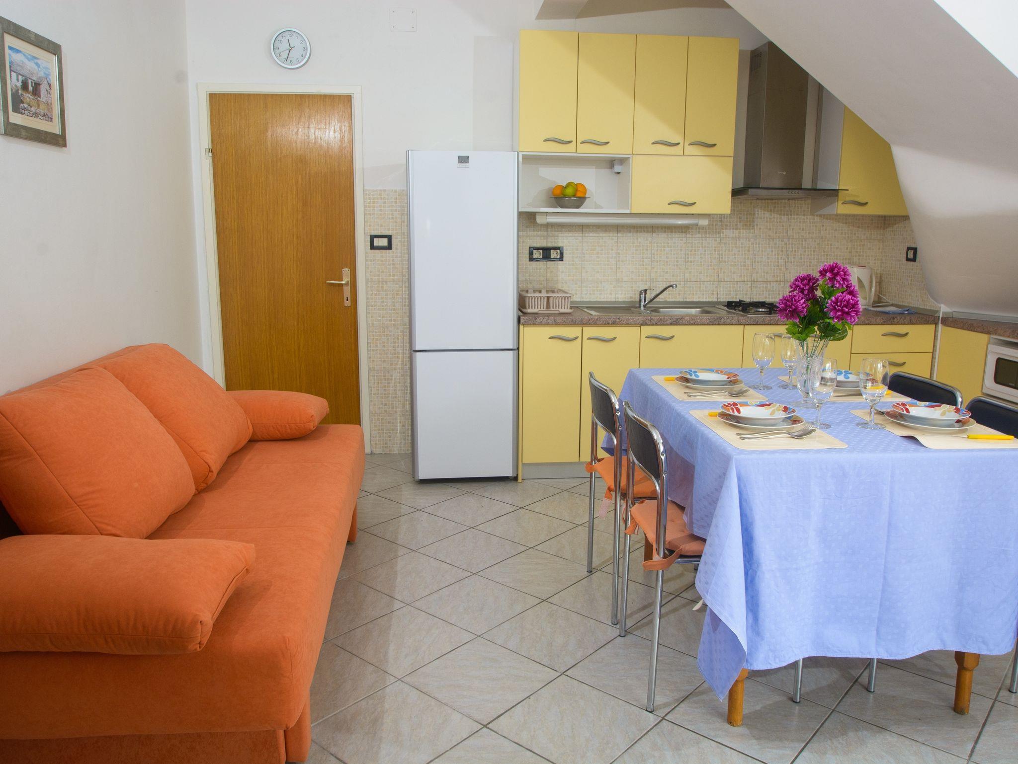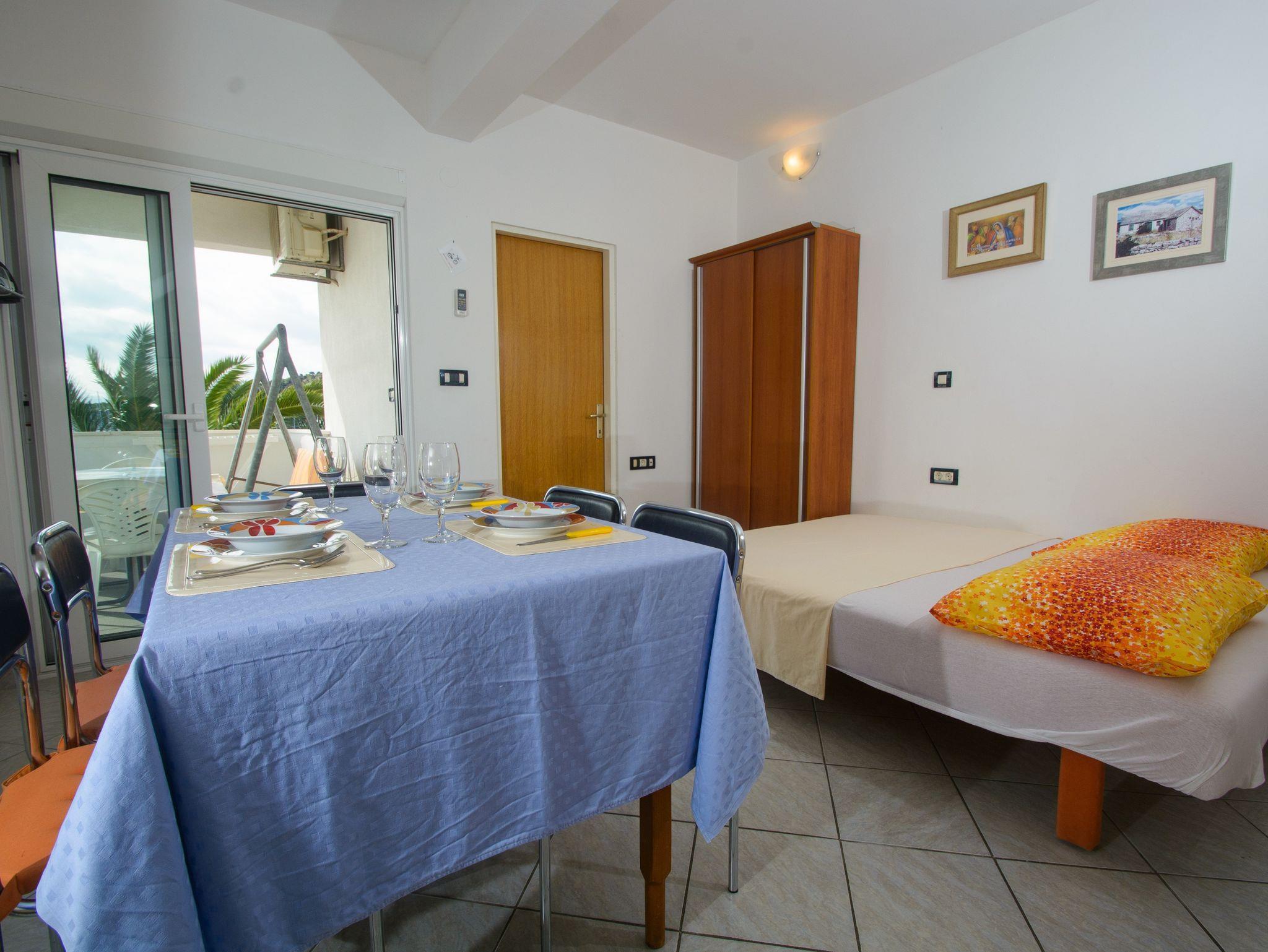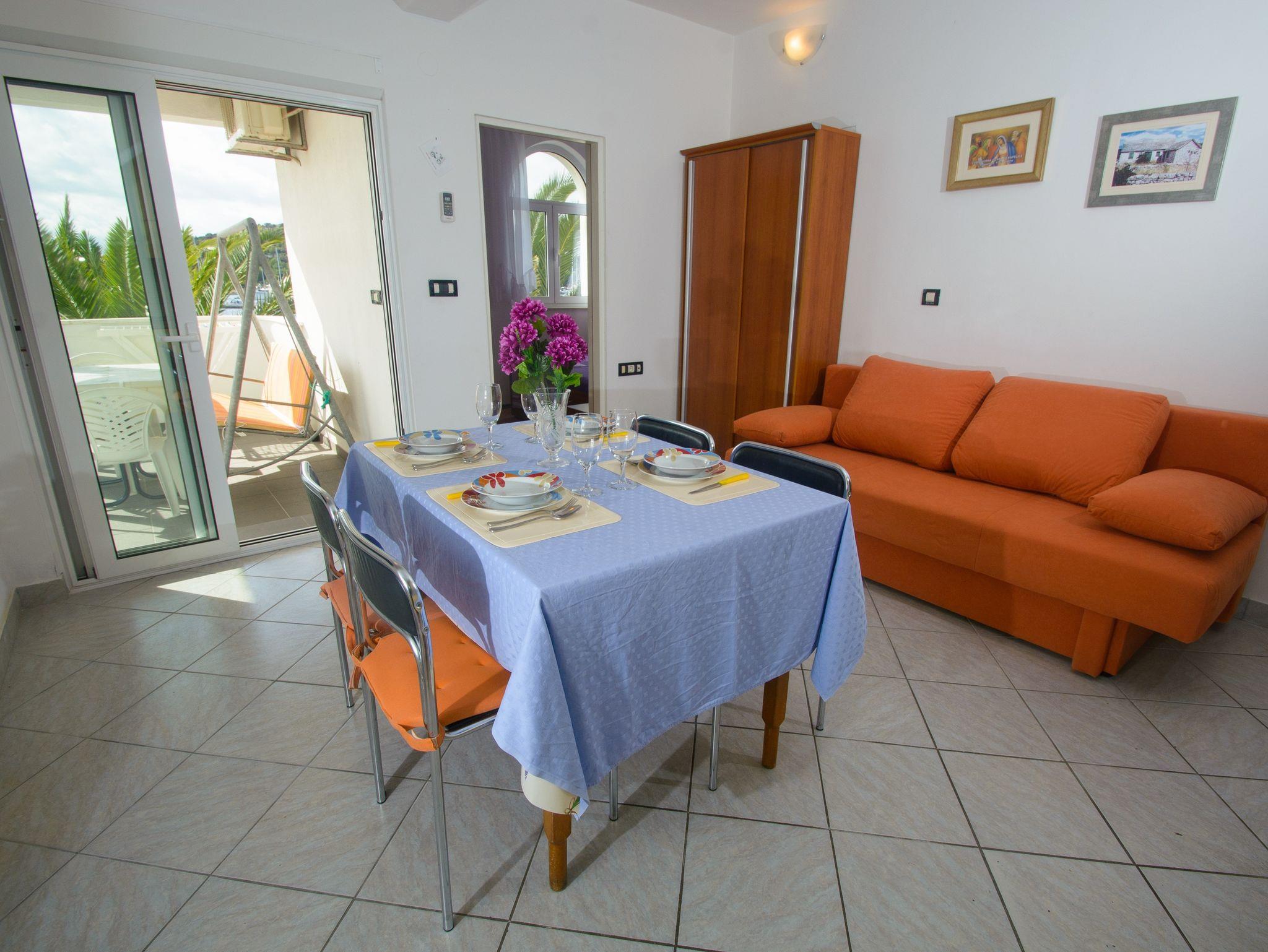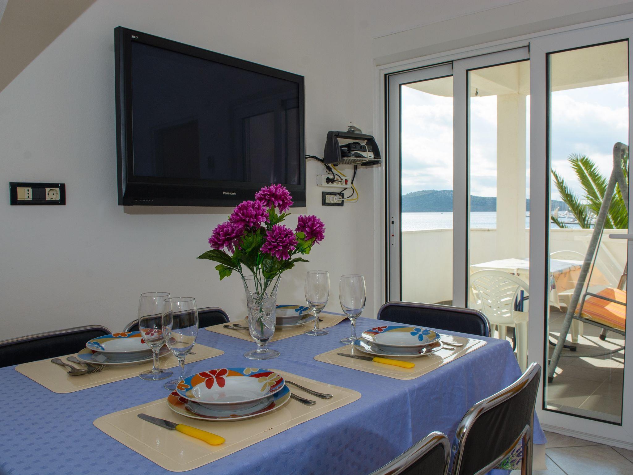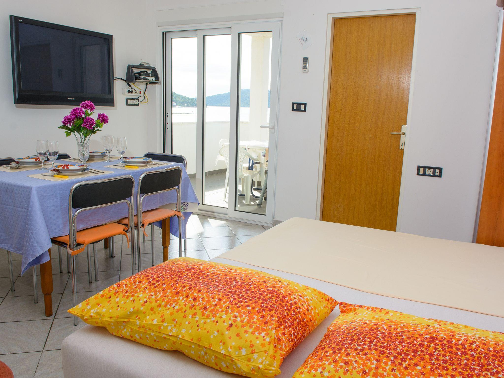 Ferienwohnung bietet Platz für 4 Gäste. Die Betten sind in Schlafzimmern, die es 1 gibt, und in Esszimmer, innerhalb einer Gesamtfläche von 34m2, angeordnet. Die Gäste haben eine eigene Terrasse zur Verfügung, auf der sie in warmen Sommernächten genießen können. Das Apartment bietet Meerblick. IM PREIS INBEGRIFFEN: Kurtaxe, Endreinigung, Klimatisierung, Parkplatz, Internet, Kinderbett, Zusatzbett, Bügeleisen, Föhn. VERBINDLICHE ZUSÄTZLICHE KOSTEN: Aufzahlung für Kurzaufenthalte (prozentualer Zuschlag pro Nächtigungsanzahl: 30% - 1, 20% - 2, 10% - 3). UNVERBINDLICHE ZUSÄTZLICHE KOSTEN: Bootsanlegeplatz (20,00 € pro Nacht). Die Verfügbarkeit zusätzlicher Dienstleistungen in Ihrem reservierten Termin und die Preise derselben (falls nicht aufgeführt) müssen im Voraus überprüft werden. Zusätzliche Dienstleistungen die in der Zahlungsaufforderung nicht aufgeführt sind werden direkt beim Vermieter bezahlt, angenommen der Gast nutzt auch diese.