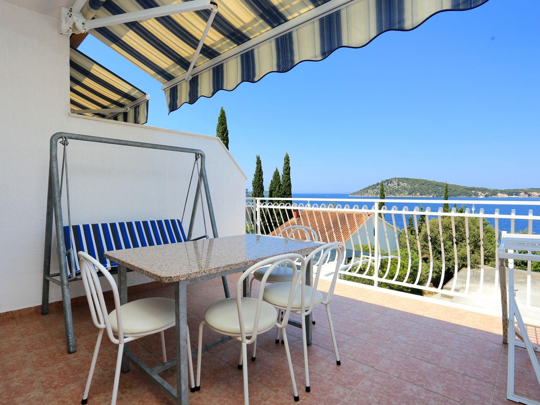 Ferienwohnung bietet Platz für 4 Gäste. Die Betten sind in Schlafzimmern, die es 1 gibt, und in Wohnzimmer, innerhalb einer Gesamtfläche von 34m2, angeordnet. Die Gäste haben eine eigene Terrasse zur Verfügung, auf der sie in warmen Sommernächten genießen können. Das Apartment bietet Meerblick. Es ist erlaubt, Speisen auf dem Gemeinschafts-Grill vorzubereiten. IM PREIS INBEGRIFFEN: Kurtaxe, Endreinigung, Parkplatz, Internet, Bootsanlegeplatz. VERBINDLICHE ZUSÄTZLICHE KOSTEN: Aufzahlung für Kurzaufenthalte (prozentualer Zuschlag pro Nächtigungsanzahl: 30% - 1, 20% - 2, 10% - 3). UNVERBINDLICHE ZUSÄTZLICHE KOSTEN: Klimatisierung (10,00 € pro Nacht), Wäschewaschen (5,00 € Waschen). Die Verfügbarkeit zusätzlicher Dienstleistungen in Ihrem reservierten Termin und die Preise derselben (falls nicht aufgeführt) müssen im Voraus überprüft werden. Zusätzliche Dienstleistungen die in der Zahlungsaufforderung nicht aufgeführt sind werden direkt beim Vermieter bezahlt, angenommen der Gast nutzt auch diese.