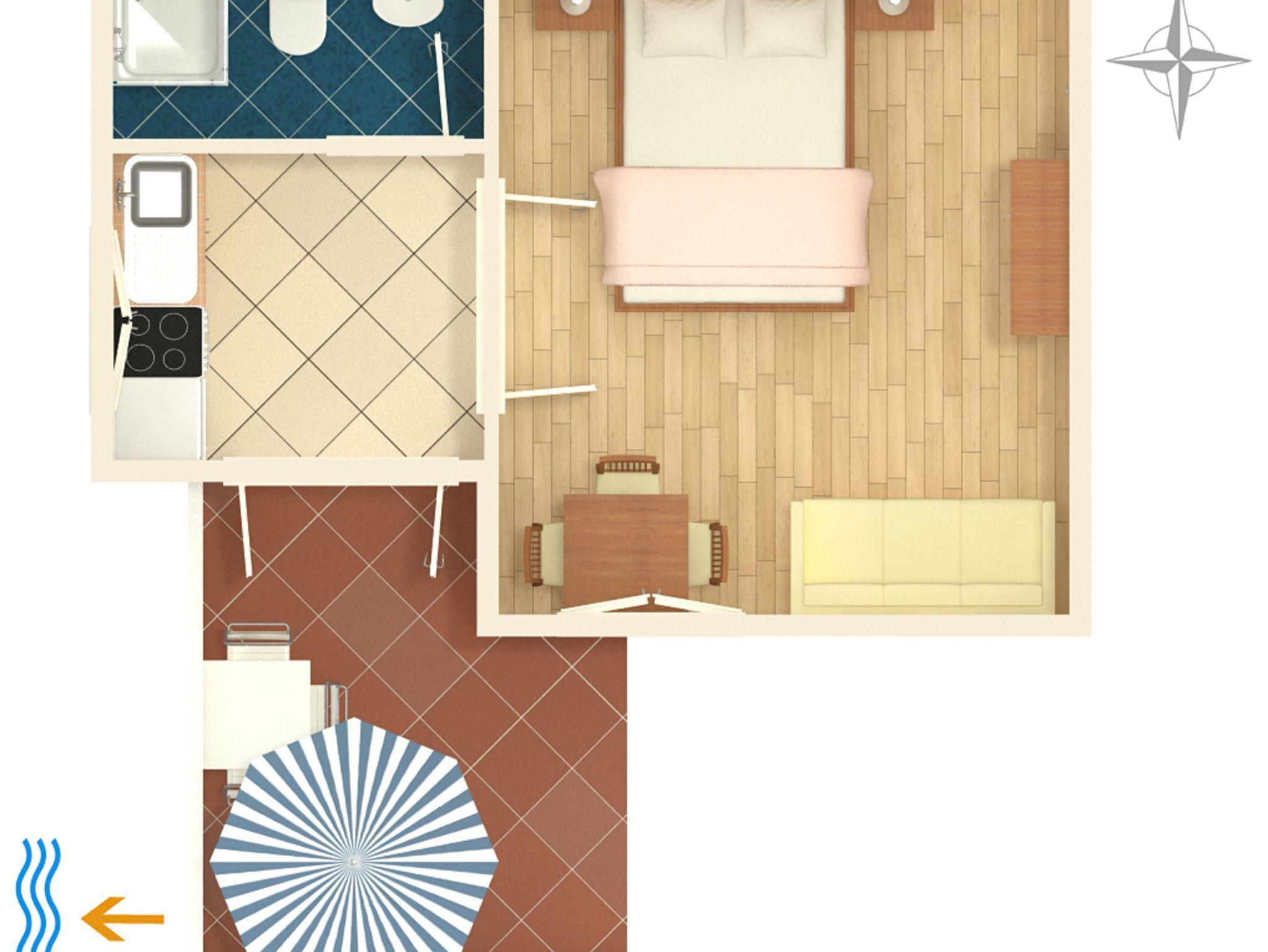 Ferienwohnung bietet Platz für 3 Gäste. Die Betten sind in Schlafzimmern, die es 1 gibt, innerhalb einer Gesamtfläche von 23m2, angeordnet. Die Gäste haben eine eigene Terrasse zur Verfügung, auf der sie in warmen Sommernächten genießen können. Es ist erlaubt, Speisen auf dem Gemeinschafts-Grill vorzubereiten. IM PREIS INBEGRIFFEN: Kurtaxe, Endreinigung, Klimatisierung, Parkplatz, Internet, Bügeleisen, Föhn. VERBINDLICHE ZUSÄTZLICHE KOSTEN: Aufzahlung für Kurzaufenthalte (prozentualer Zuschlag pro Nächtigungsanzahl: 30% - 1, 20% - 2, 10% - 3). Die Verfügbarkeit zusätzlicher Dienstleistungen in Ihrem reservierten Termin und die Preise derselben (falls nicht aufgeführt) müssen im Voraus überprüft werden. Zusätzliche Dienstleistungen die in der Zahlungsaufforderung nicht aufgeführt sind werden direkt beim Vermieter bezahlt, angenommen der Gast nutzt auch diese.